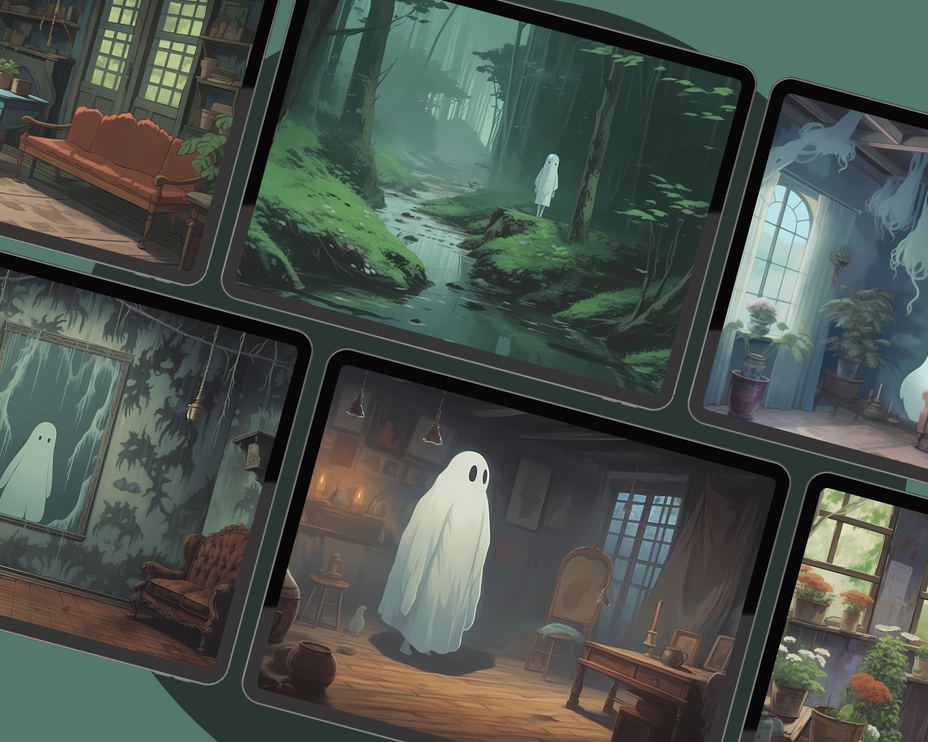 Bring a touch of coziness to your devices with this set of 12 Studio Ghibli-inspired wallpapers! Featuring beautiful spooky ghosts these high-res JPG files will fit perfectly on your phone or computer/tablet screens.