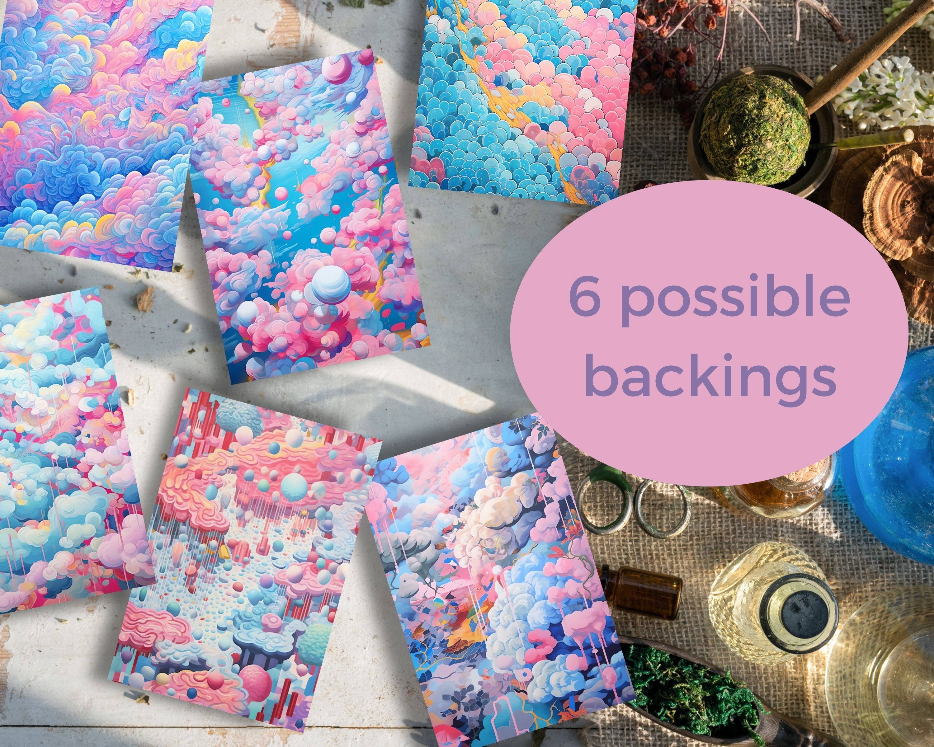 These artworks were created using digital painting techniques and AI generation