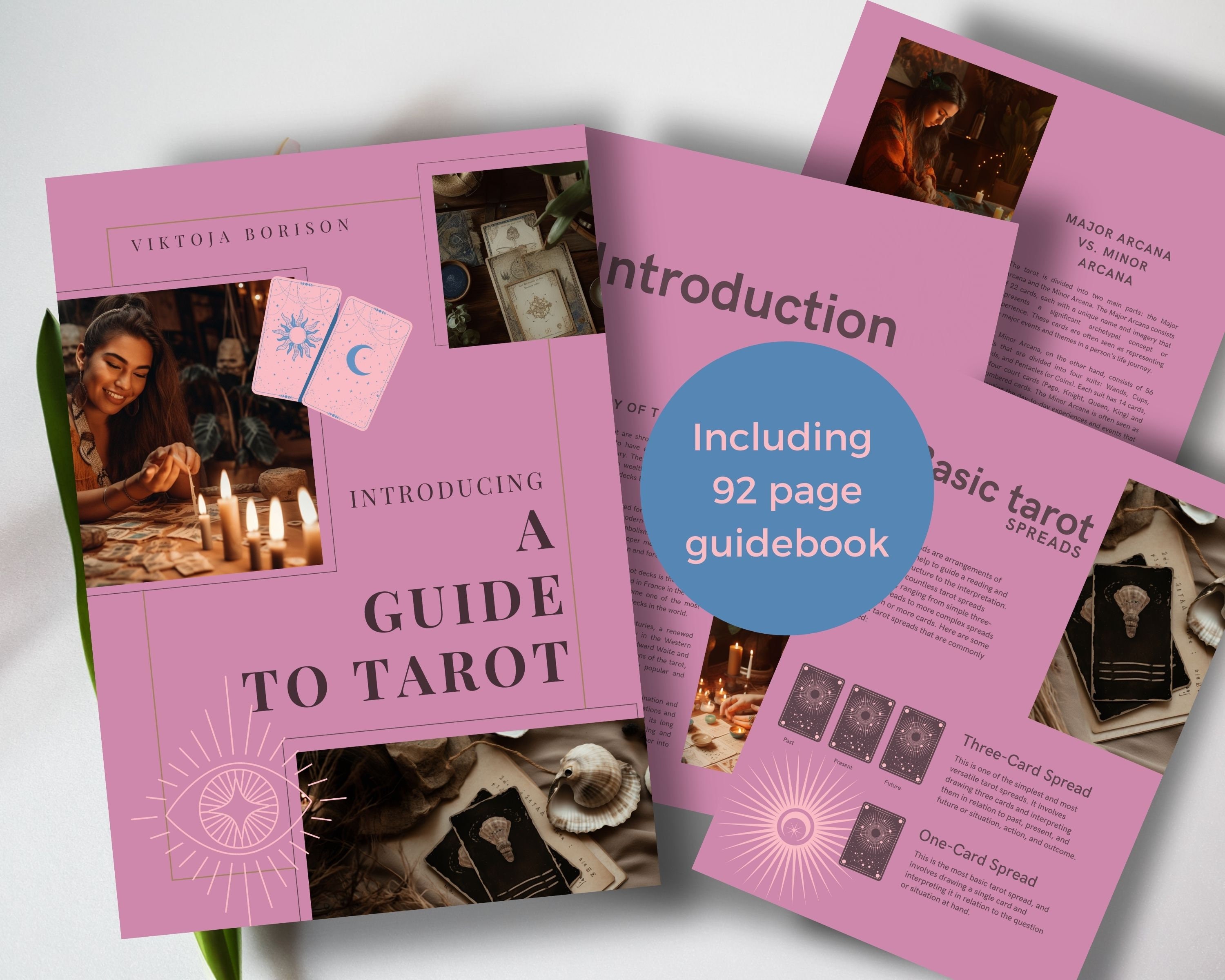 In addition to the tarot deck, you'll receive a comprehensive 92-page guidebook, complete with an introduction to tarot, the history of tarot, types of tarot decks, basic tarot spreads, and more. The guidebook also includes card meanings and interpretations for both the Major and Minor Arcana, as well as advanced tarot techniques such as using reversals.