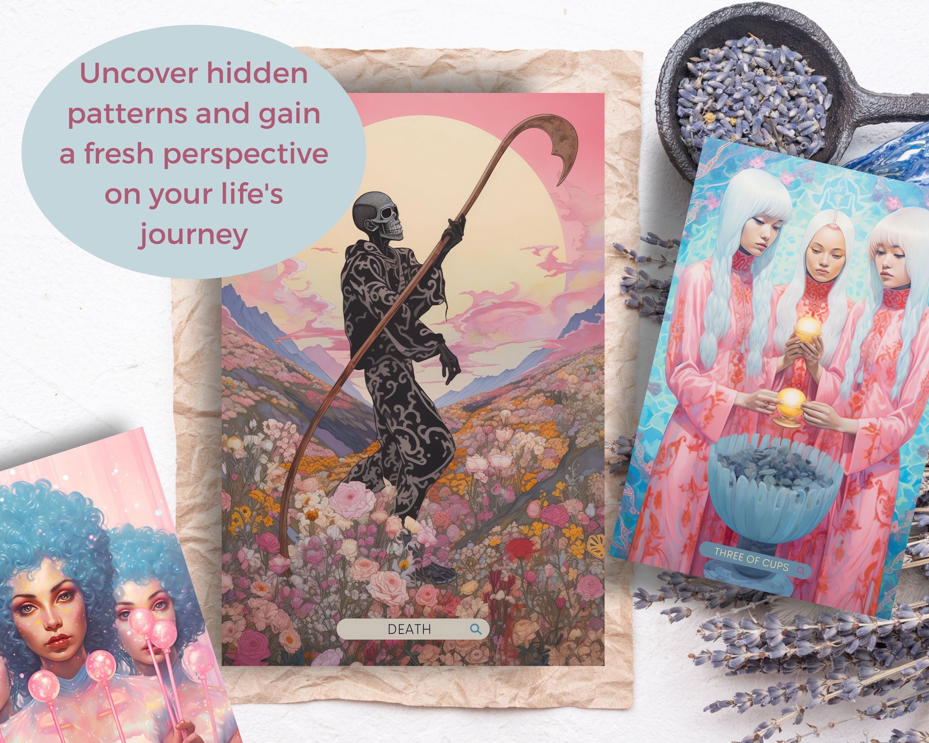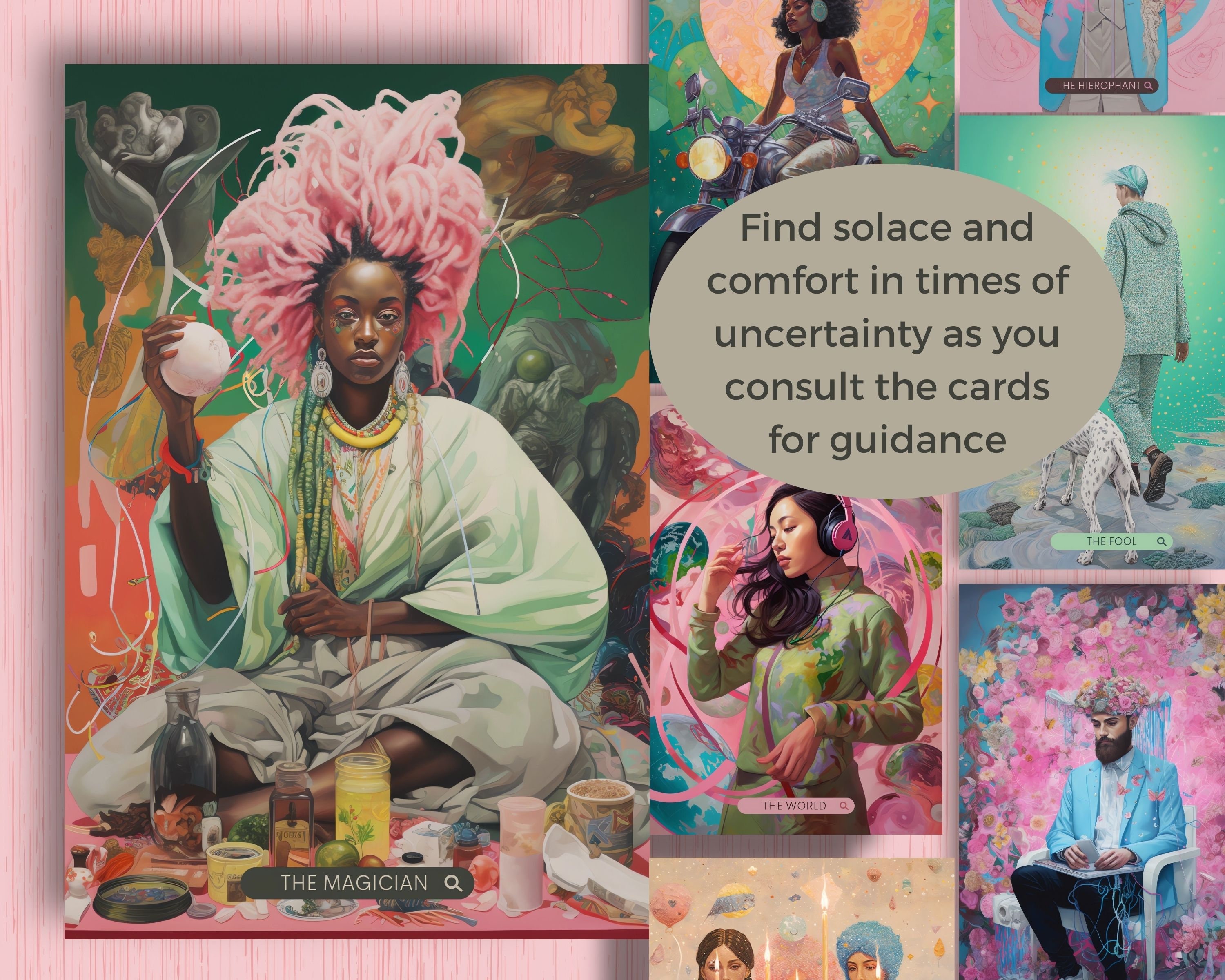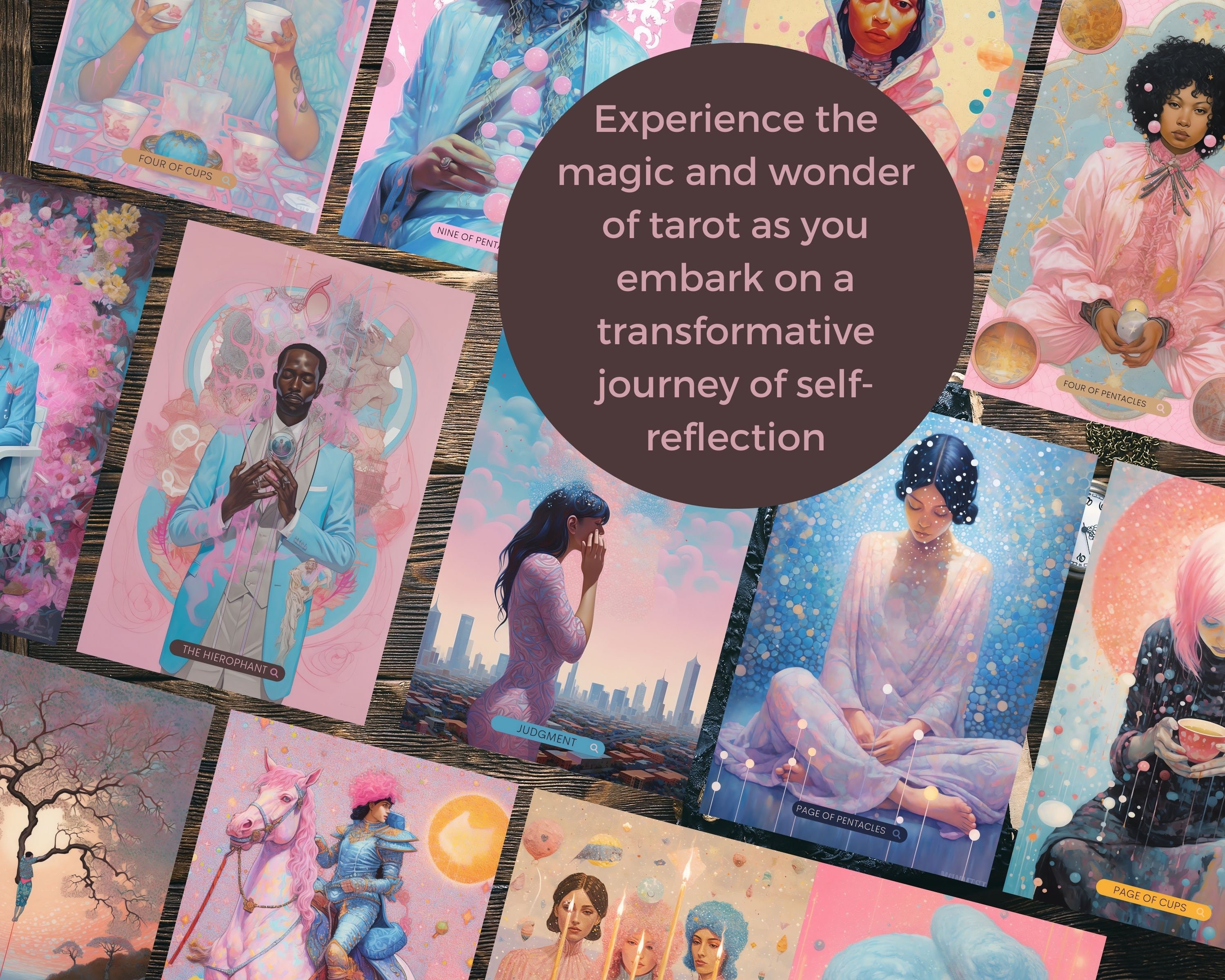 This exquisite set features 78 modern artworks, each beautifully crafted to captivate your imagination and illuminate the hidden realms of your psyche.