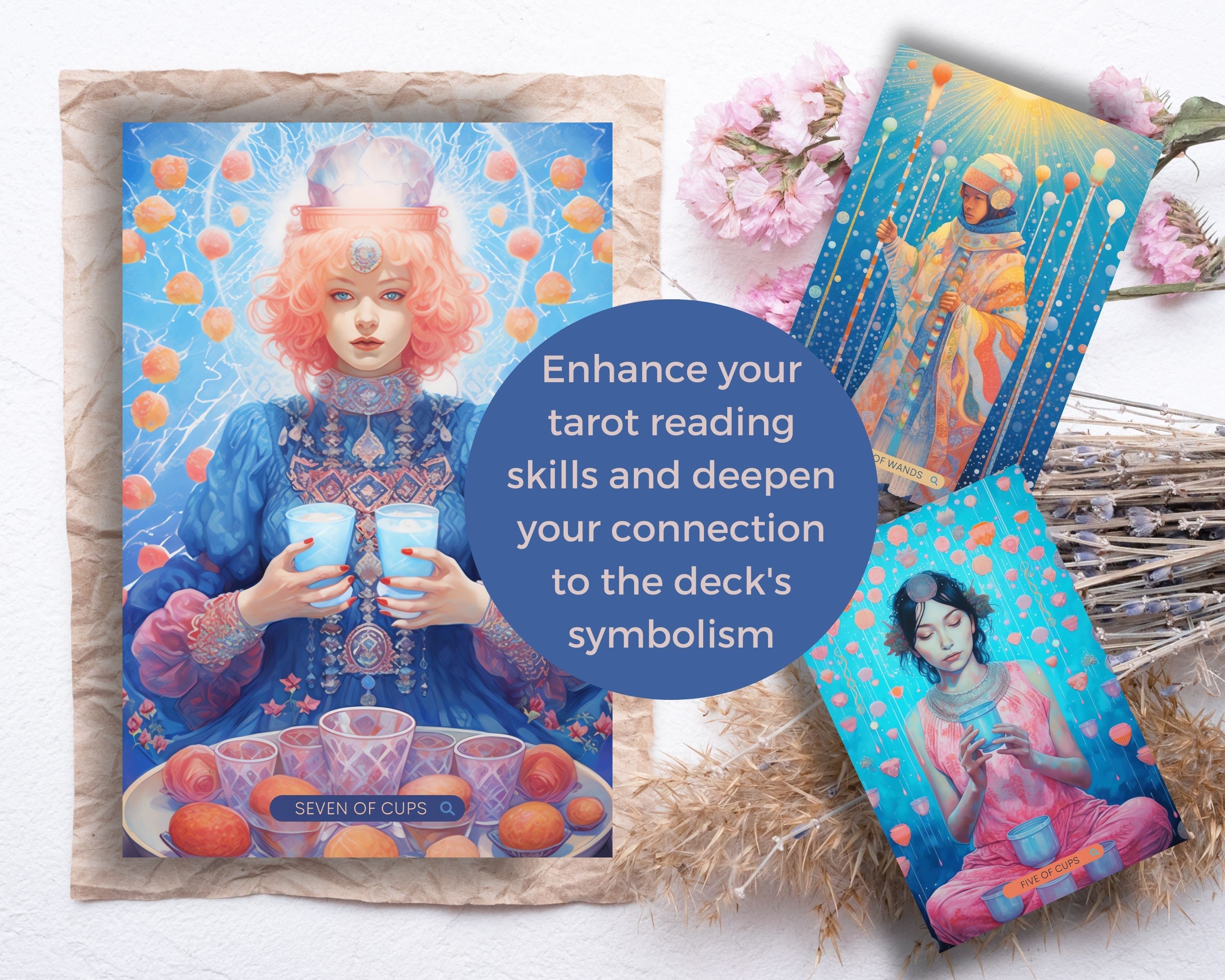 Unlock the mysteries of the universe and embark on a transformative journey of self-discovery with our full tarot deck and guide book.