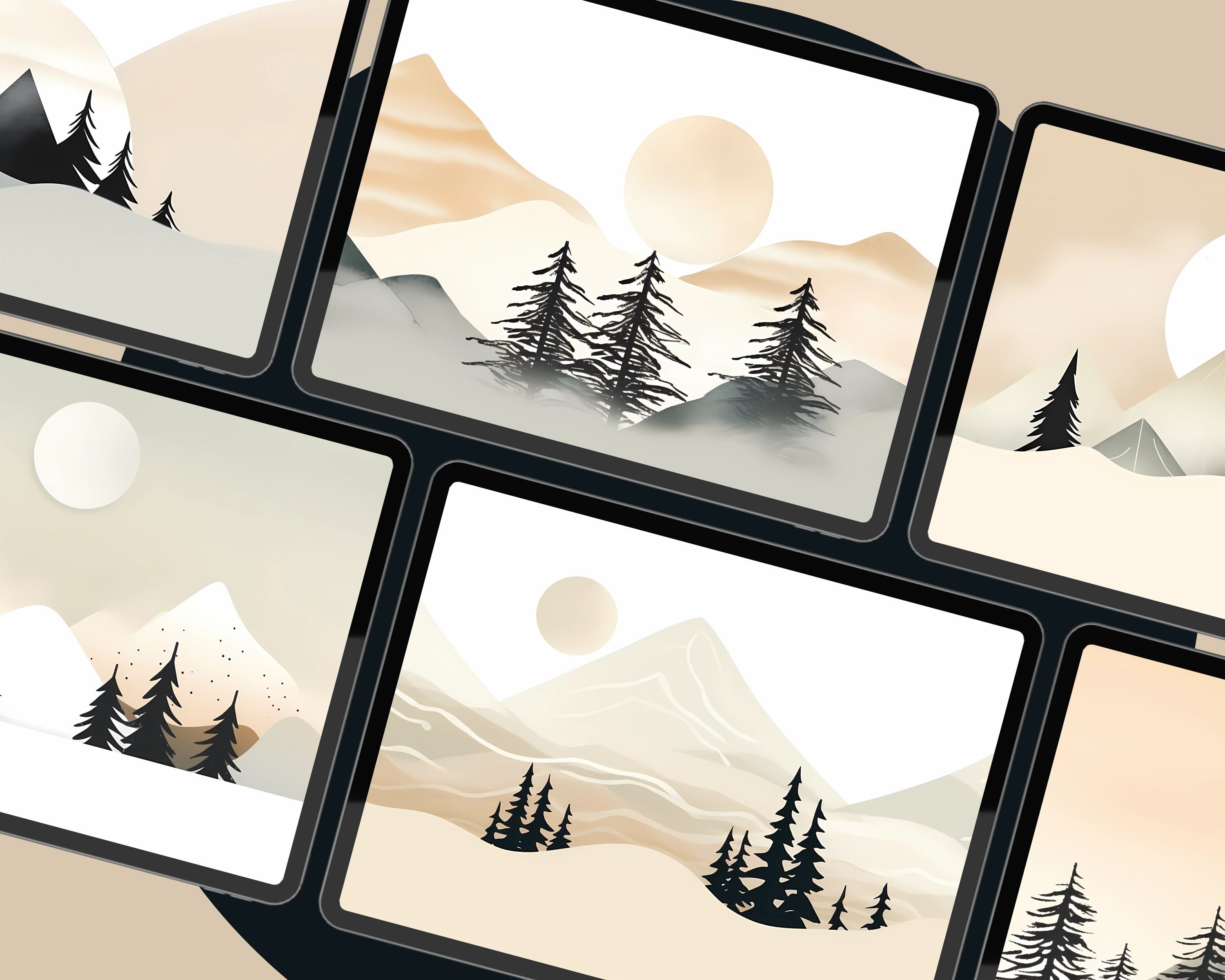 Bring a touch of style to your devices with this set of 12 neutrals pine landscape wallpapers! Featuring stunning landscapes, these high-res JPG files will fit perfectly on your phone or computer/tablet screens.