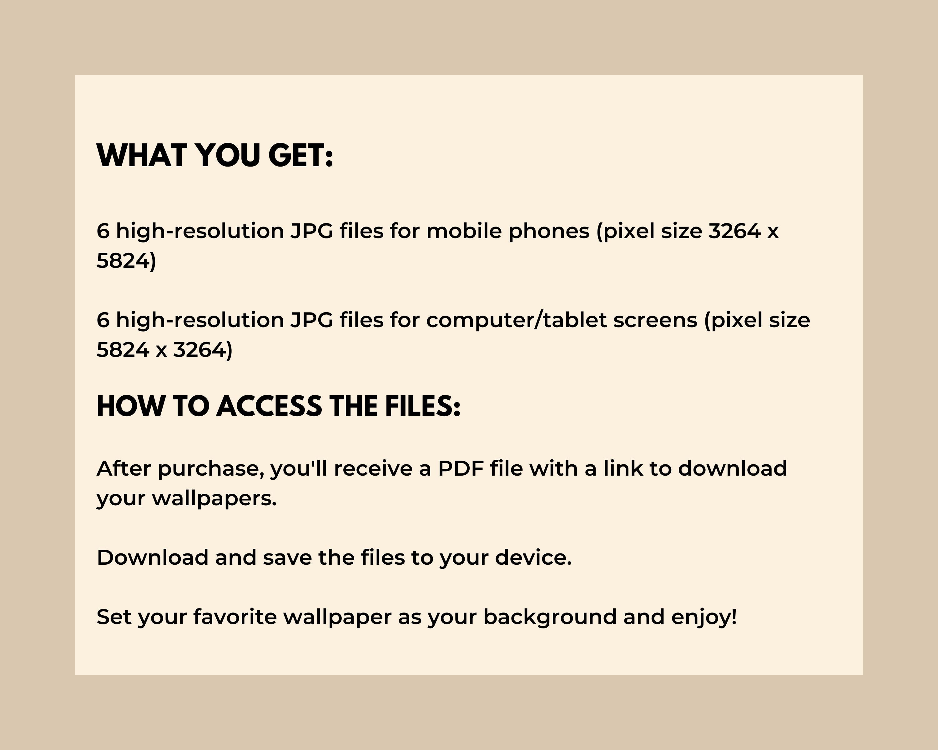After purchase, you'll receive a PDF file with a link to download your wallpapers.