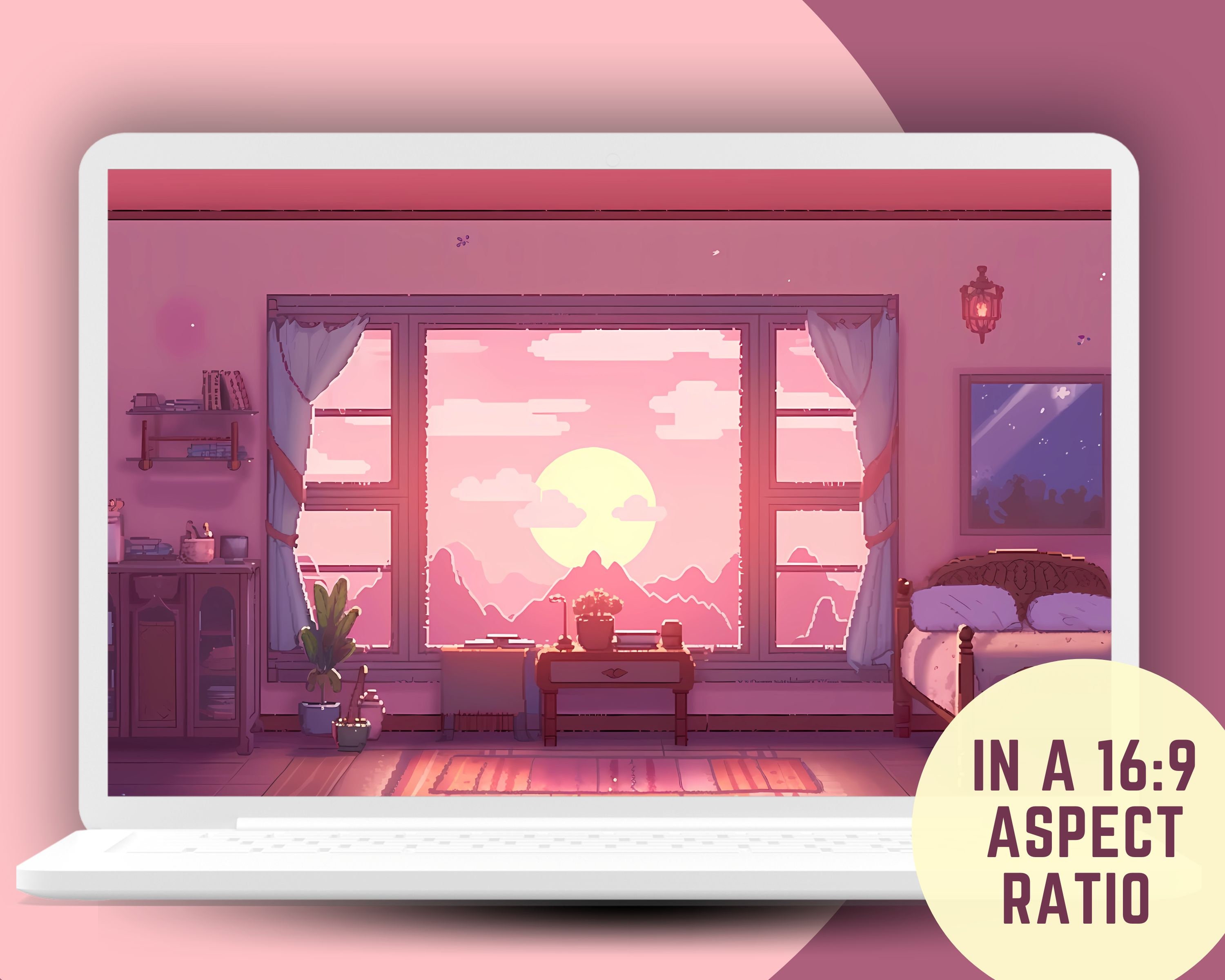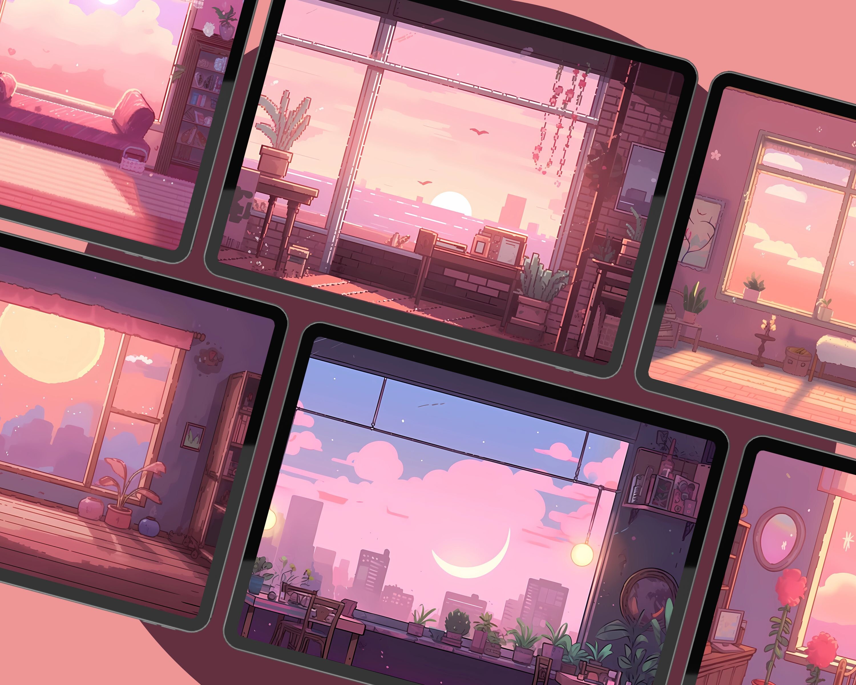 Bring a touch of magic to your devices with this set of 12 Cozy game pink room wallpapers! Featuring cute pink images from a room with a view, these high-res JPG files will fit perfectly on your phone or computer/tablet screens.