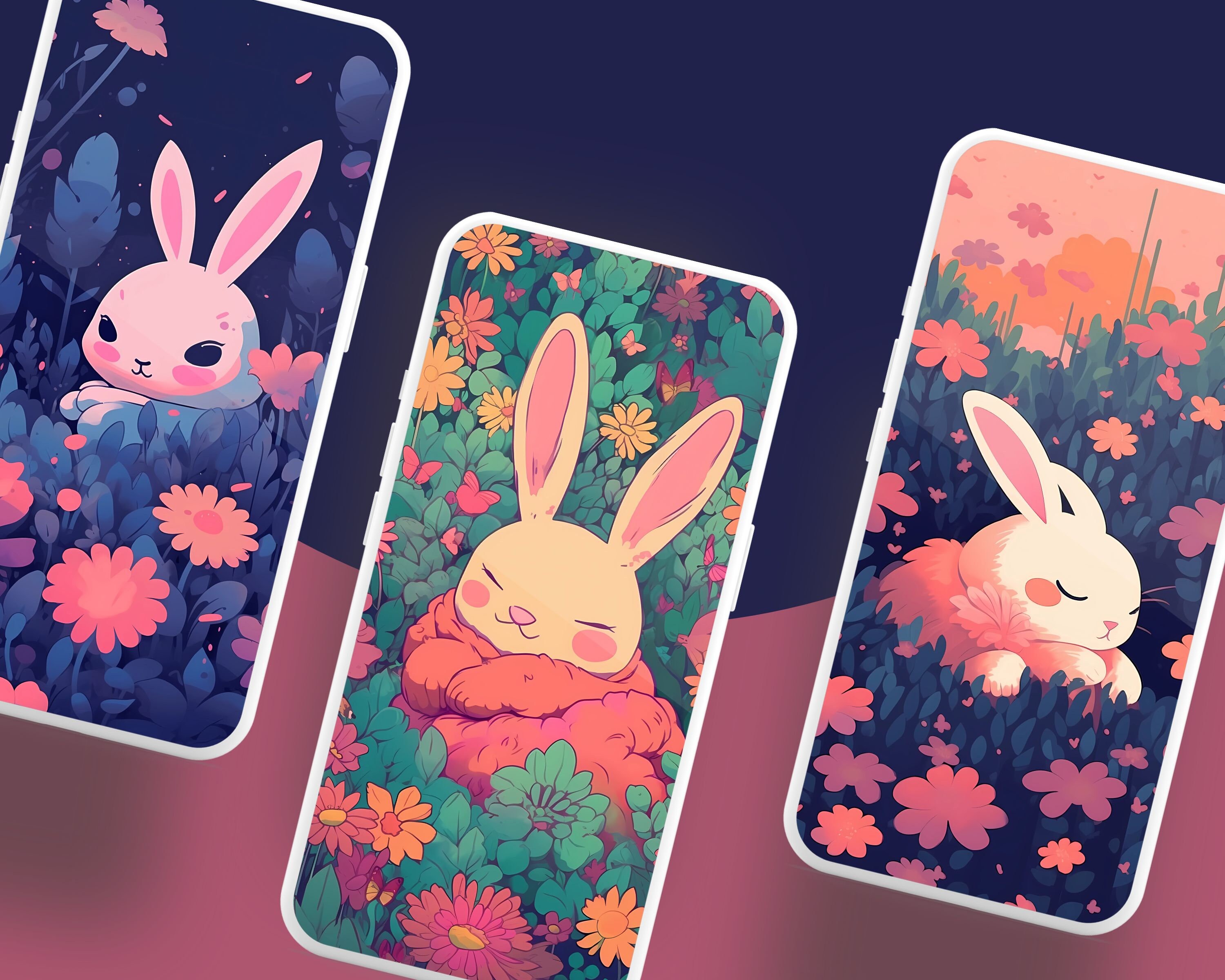 Bring a touch of coziness to your devices with this set of 12 kawaii wallpapers! Featuring beautiful cute bunnies in cozy settings these high-res JPG files will fit perfectly on your phone or computer/tablet screens.