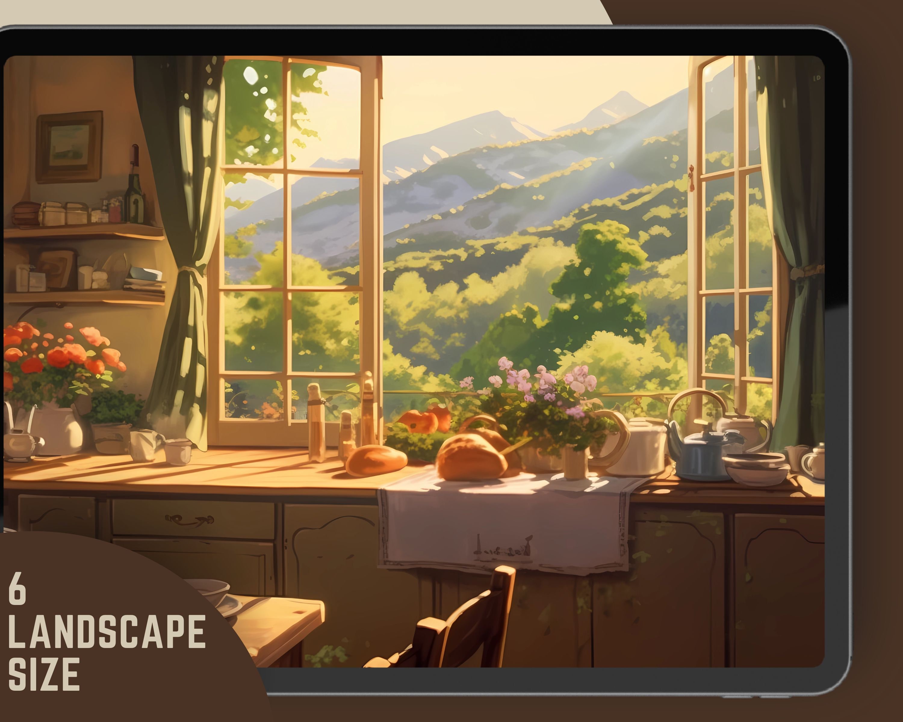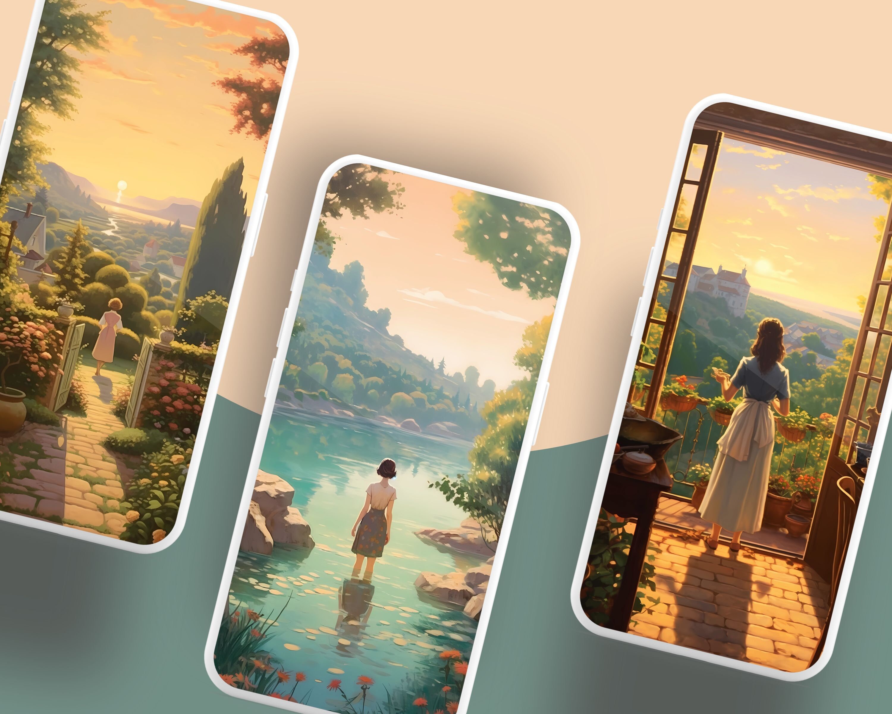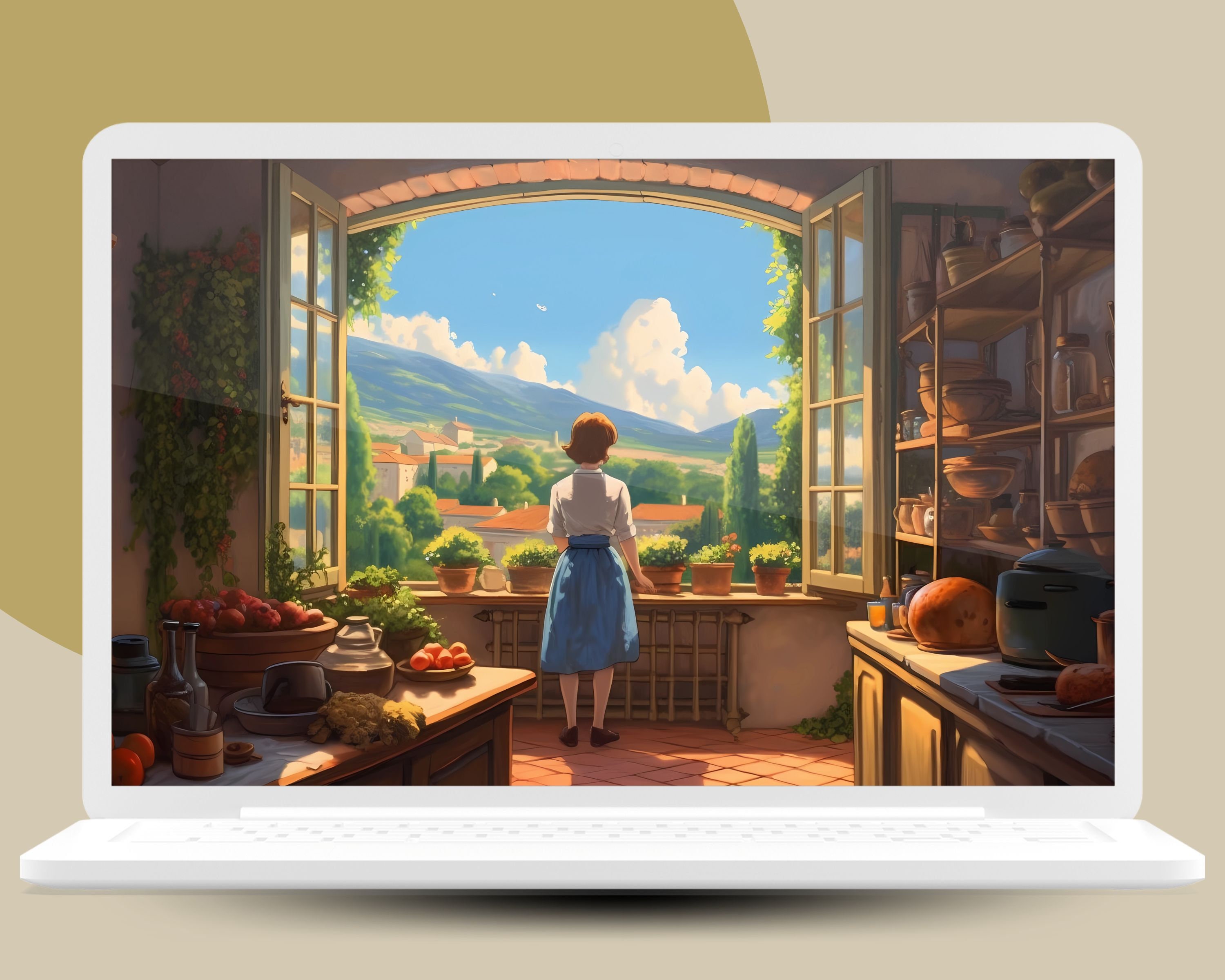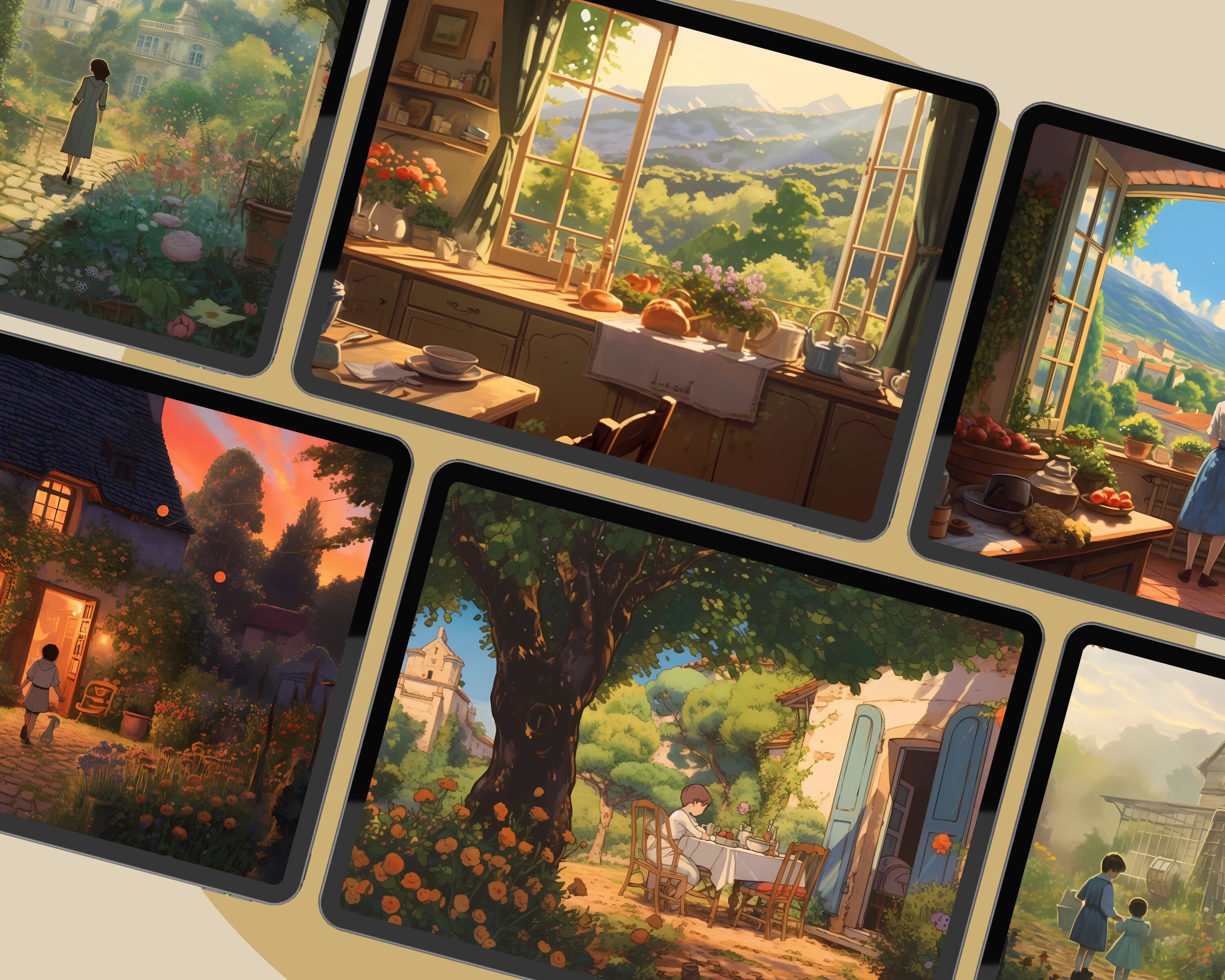 Bring a touch of magic to your devices with this set of 12 french country Studio Ghibli-inspired wallpapers! Featuring cosy interriors and stunning french country landscapes, these high-res JPG files will fit perfectly on your phone or computer/tablet screens.
