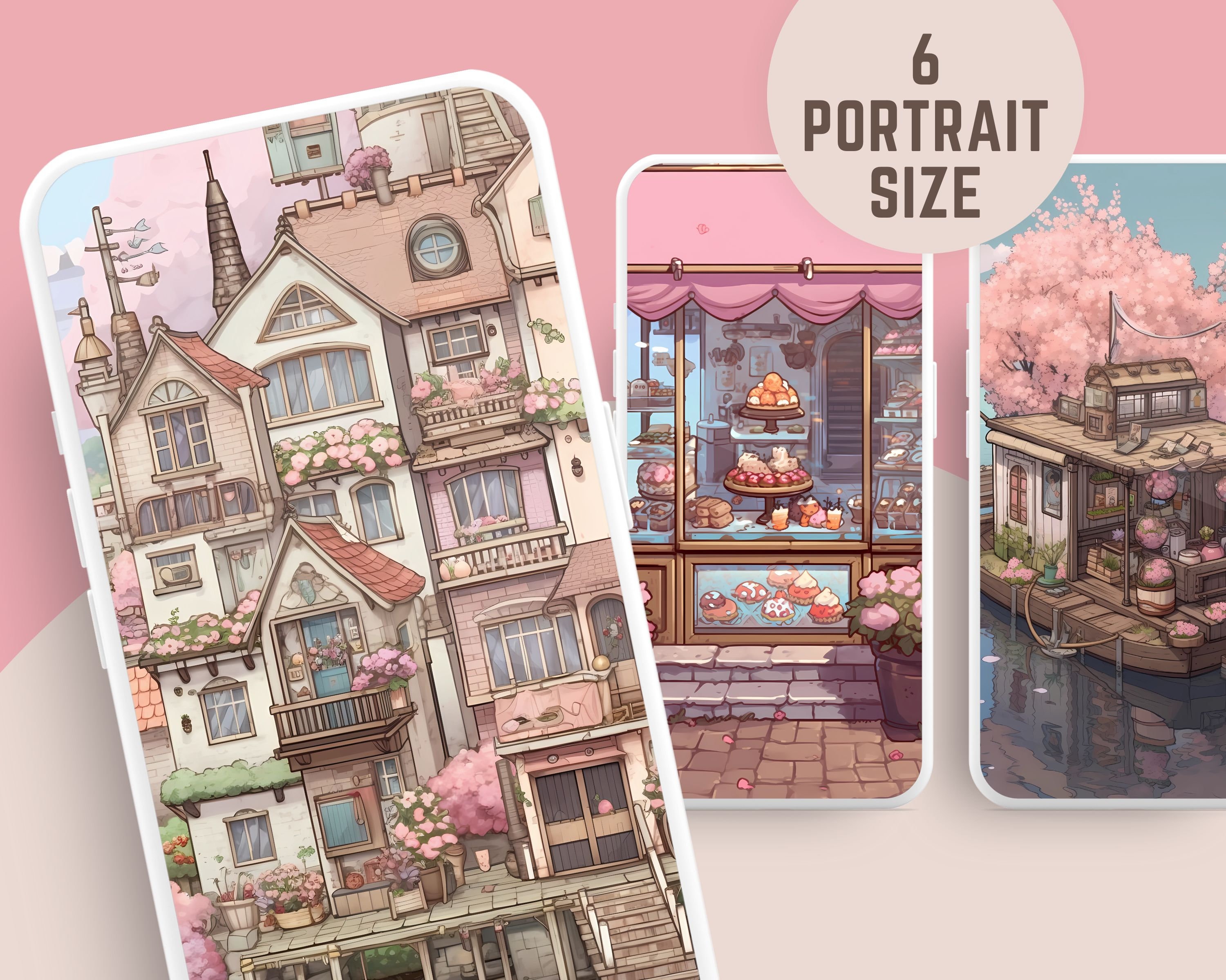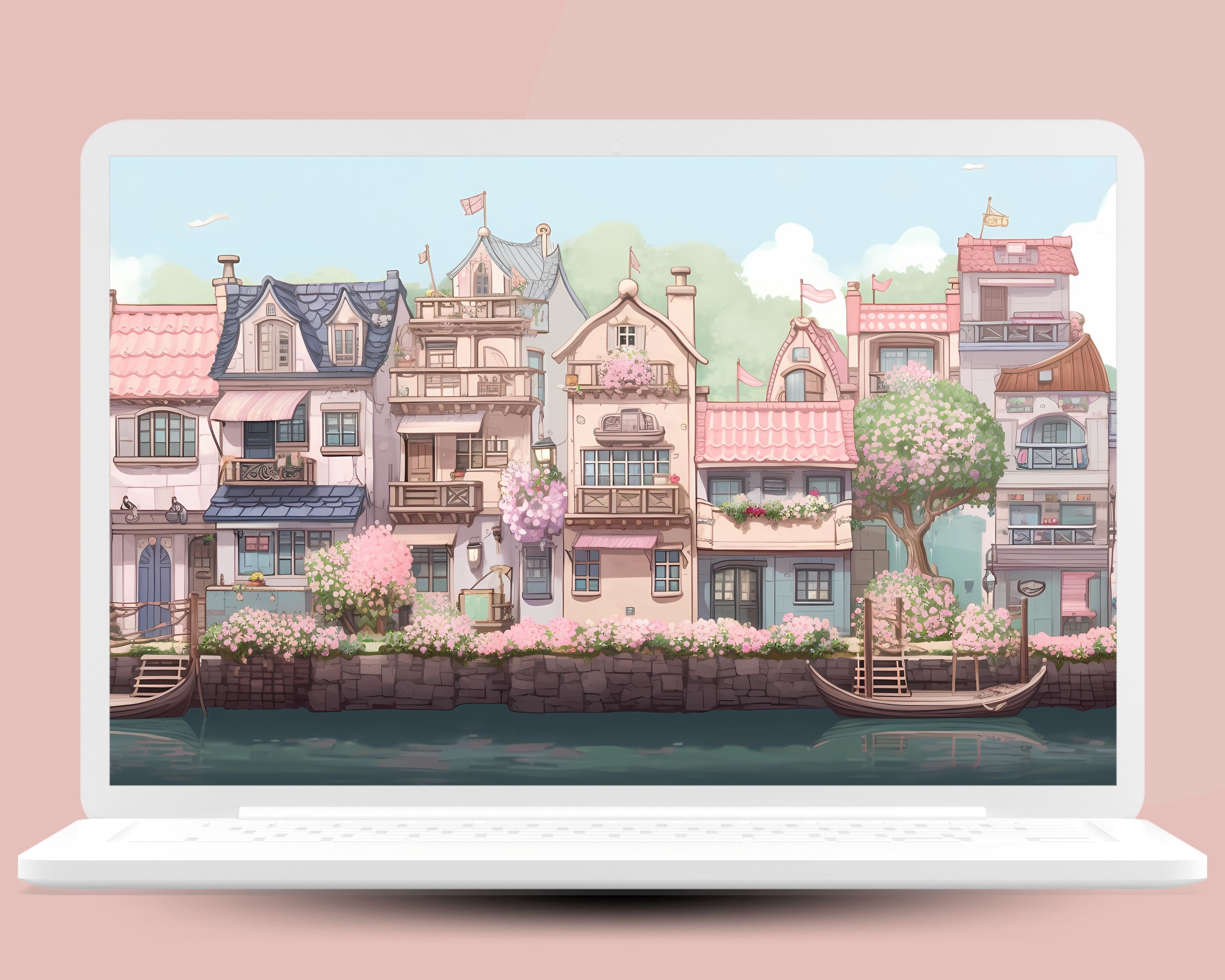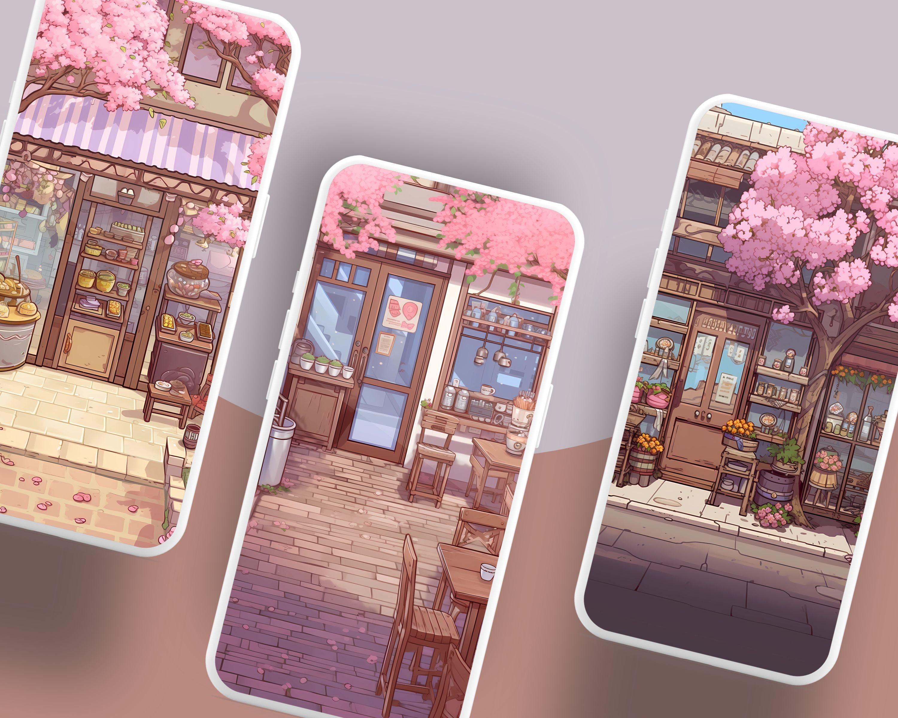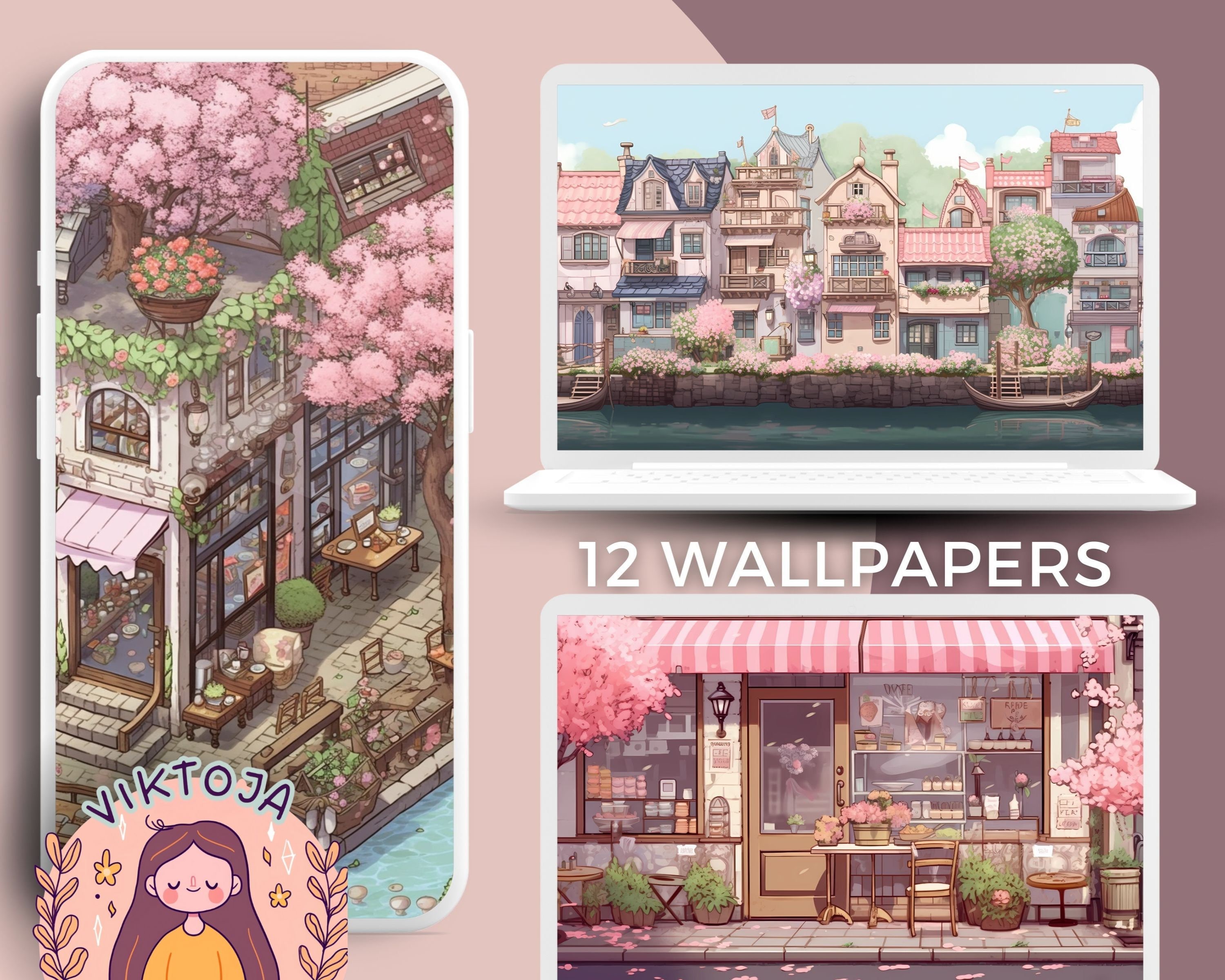Bring a touch of magic to your devices with this set of 12 cherry blossom city wallpapers! Featuring cute images from the cozy cherry blossom city, these high-res JPG files will fit perfectly on your phone or computer/tablet screens.
