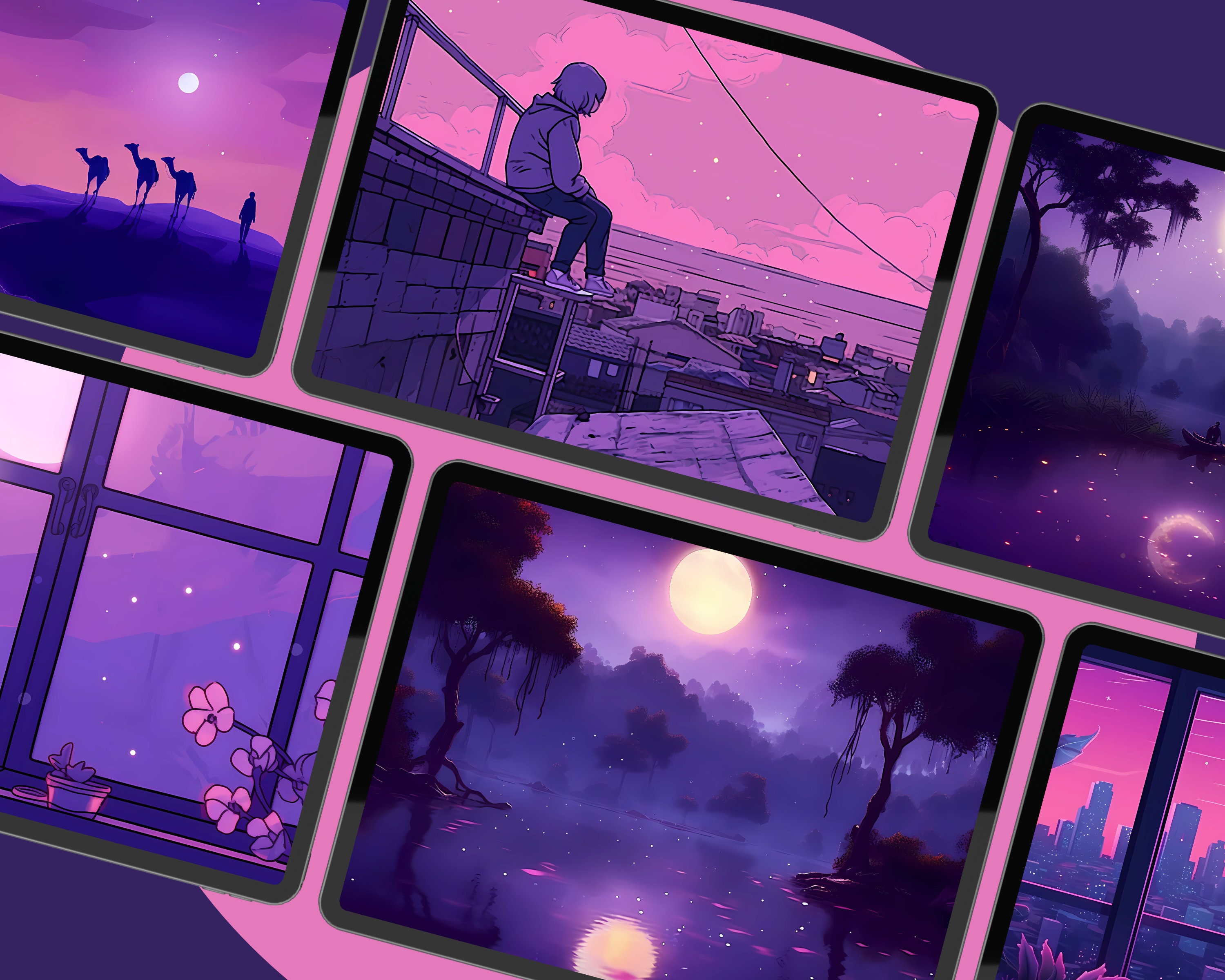 Bring a touch of coziness to your devices with this set of 12 purple haze wallpapers! Featuring beautiful aesthetic scenes these high-res JPG files will fit perfectly on your phone or computer/tablet screens.