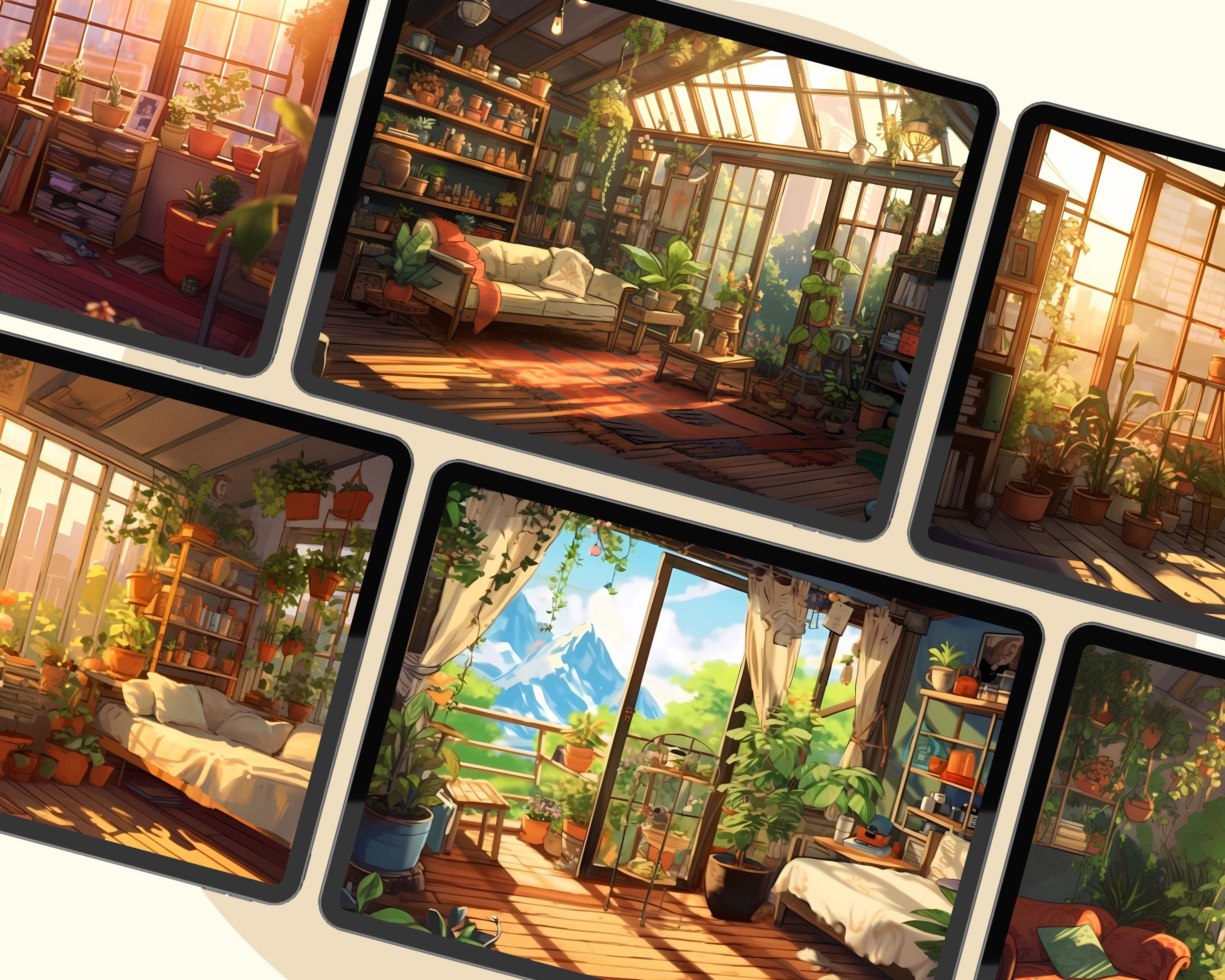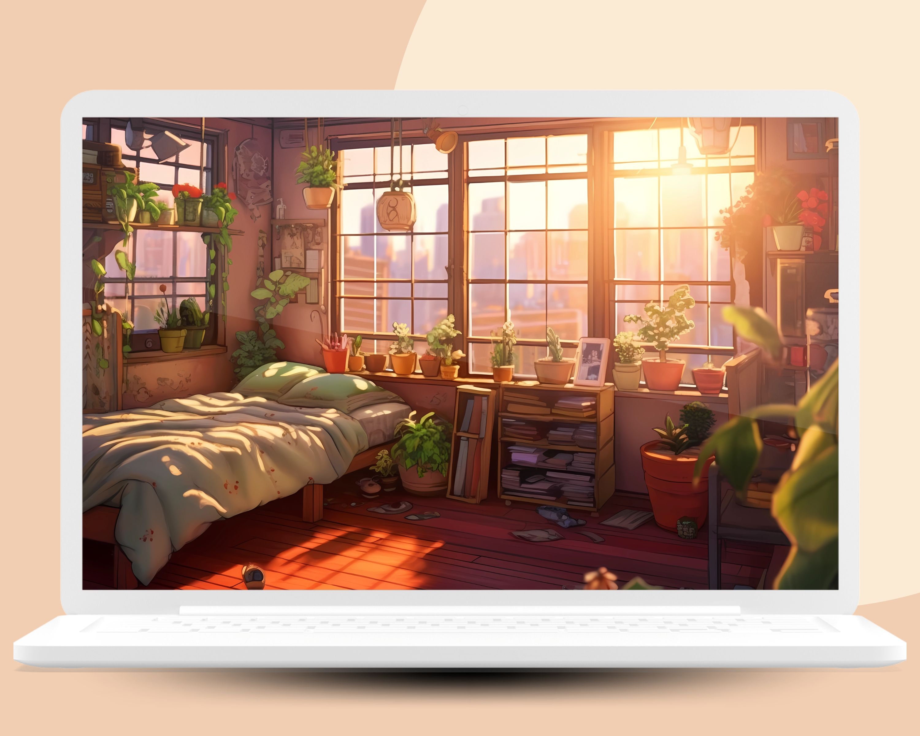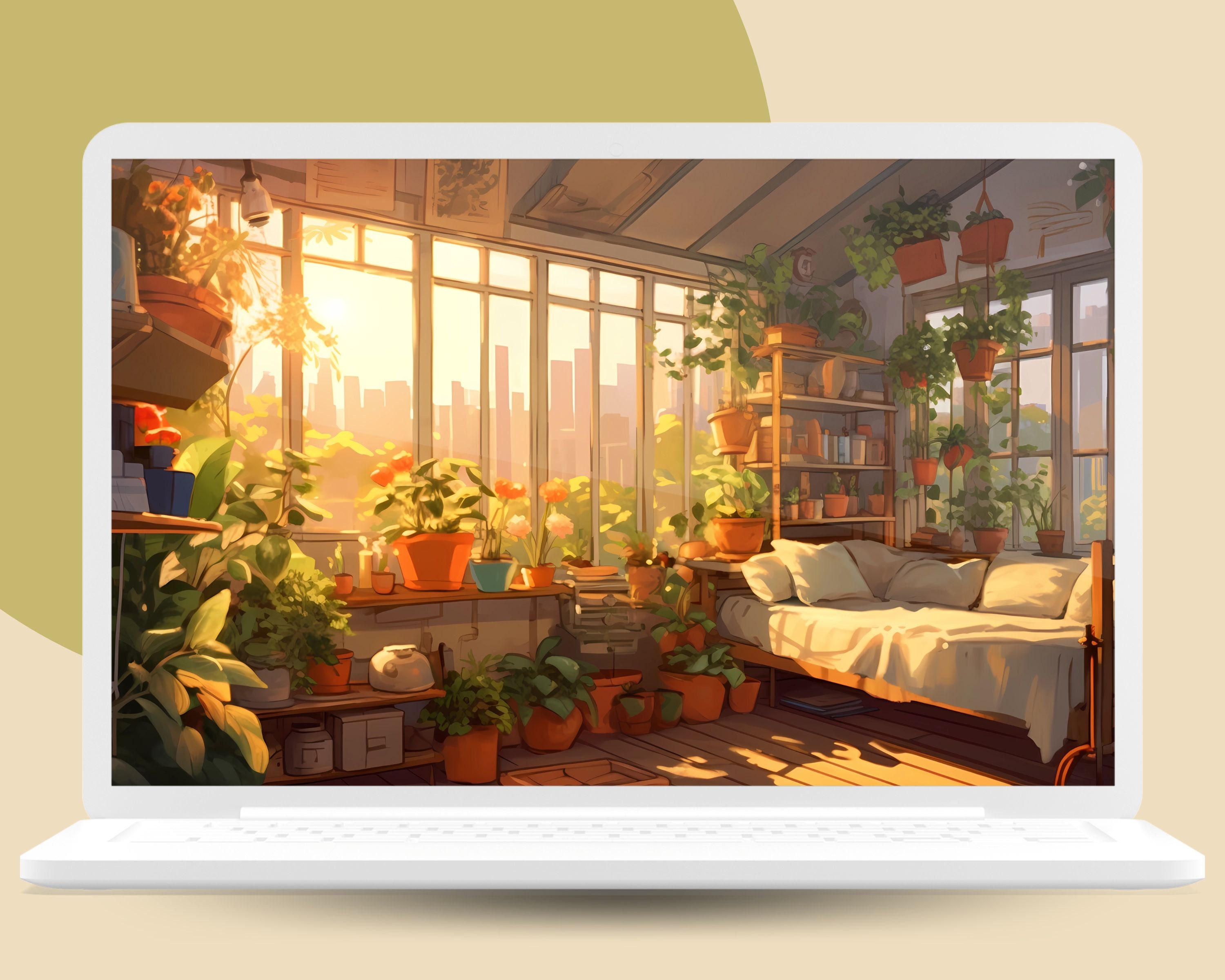 Bring a touch of magic to your devices with this set of 12 Studio Ghibli-inspired wallpapers! Featuring cosy interriors with plants and books, these high-res JPG files will fit perfectly on your phone or computer/tablet screens.