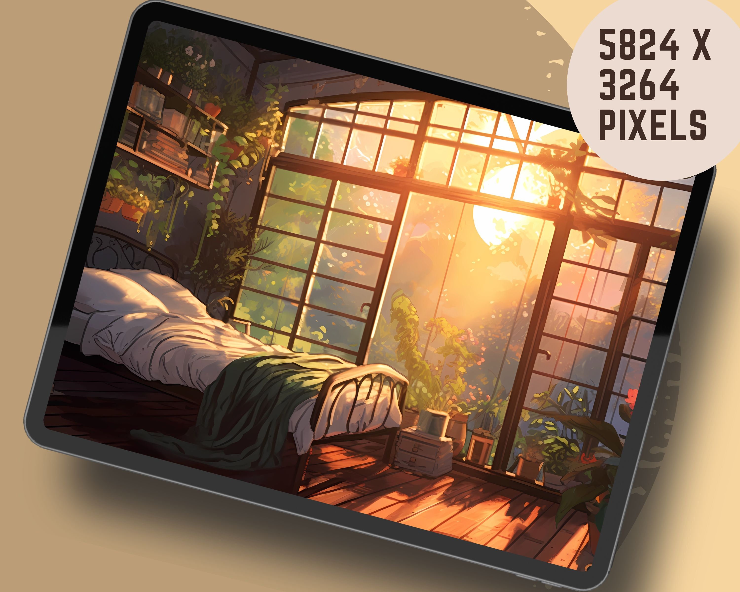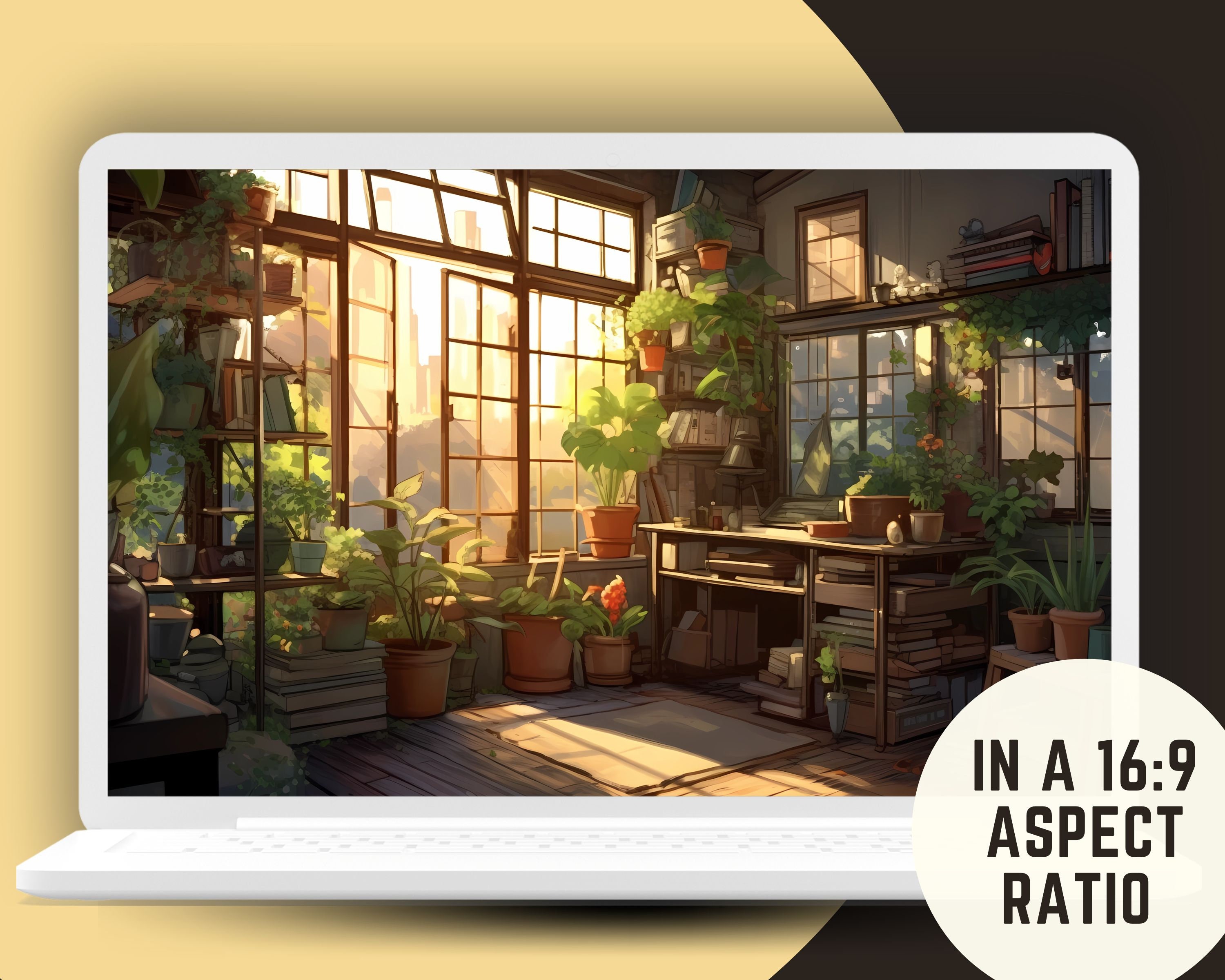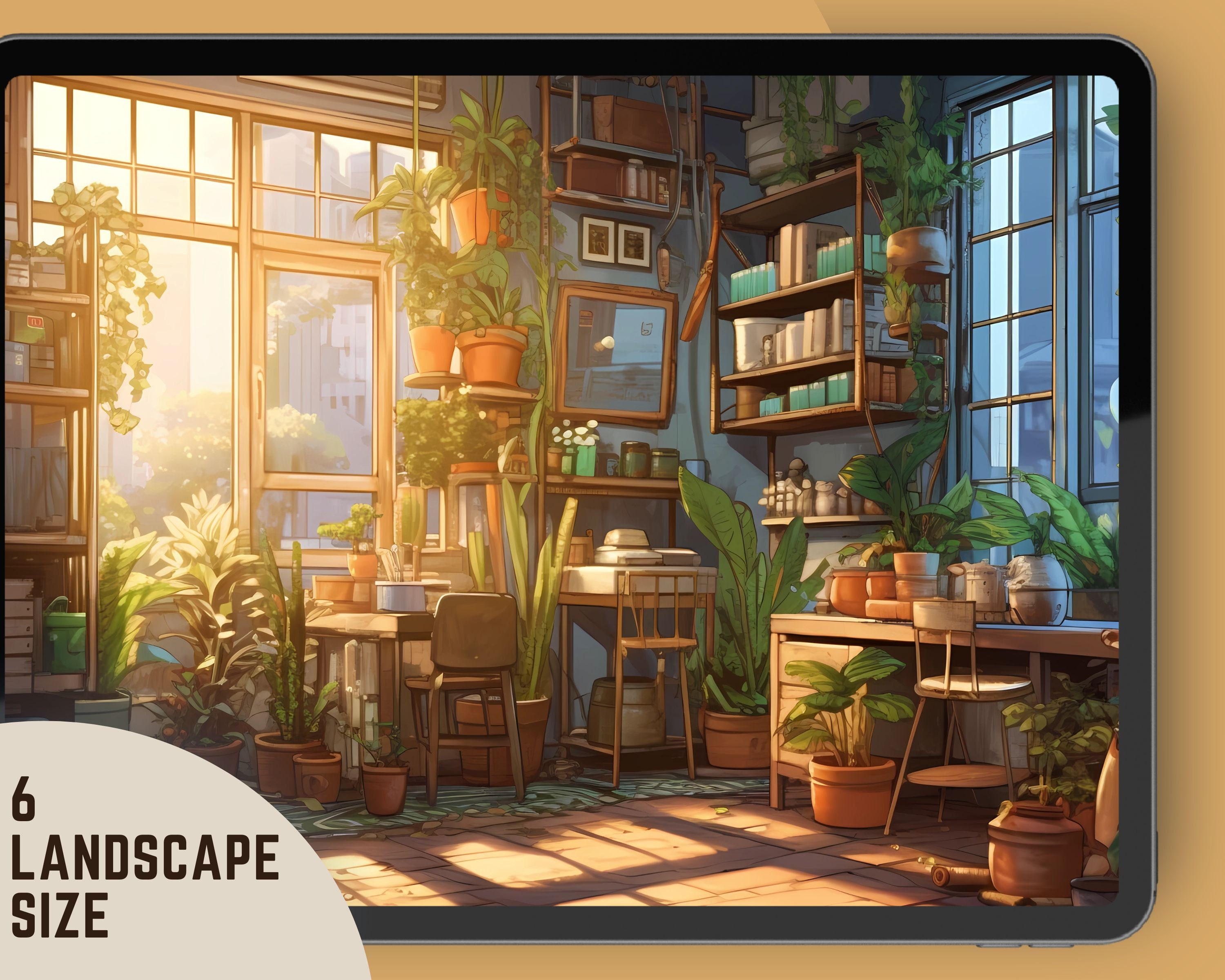 Studio Ghibli Anime Wallpaper: Cozy Plants & Books (Digital Download)