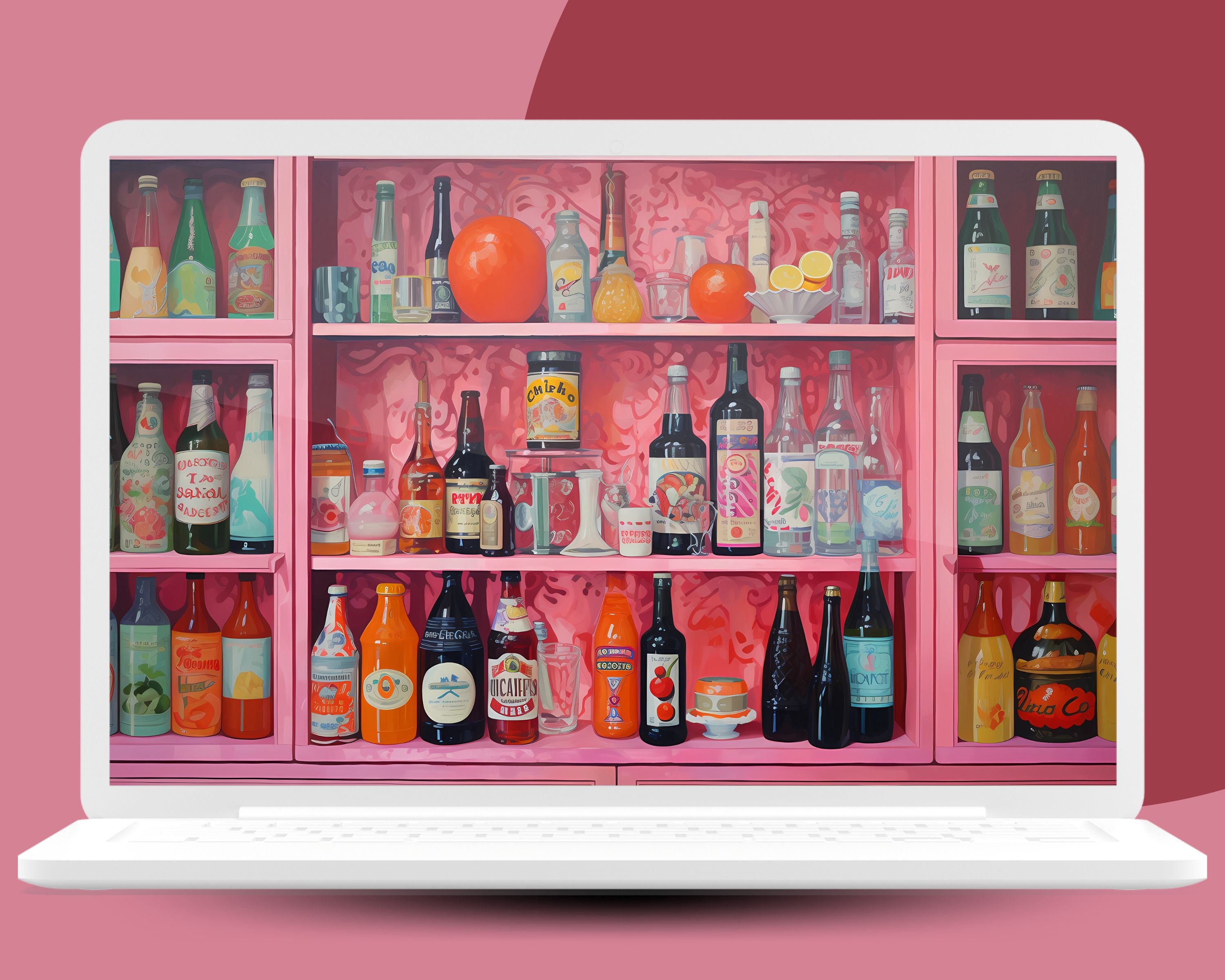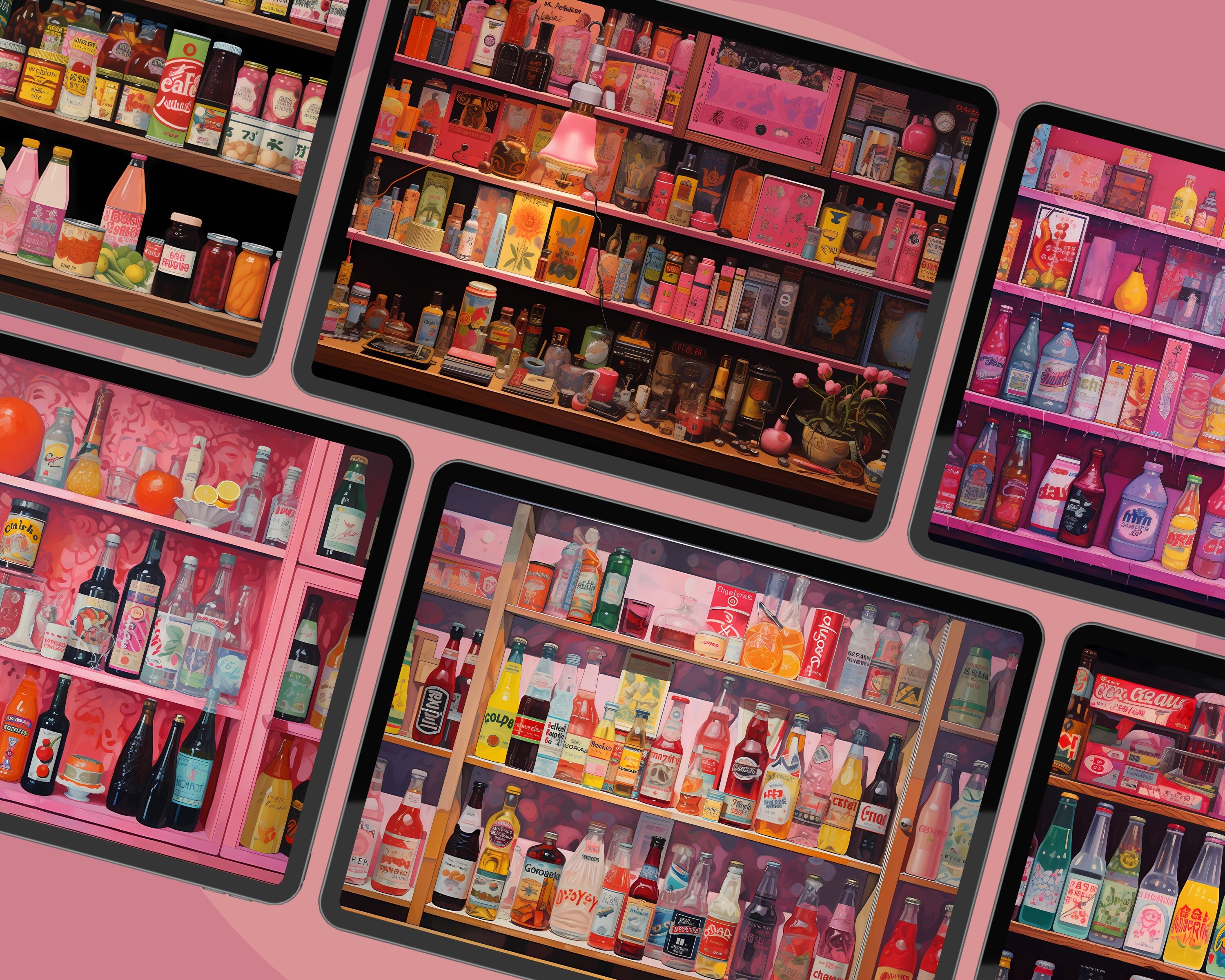 Bring a touch of beauty to your devices with this set of 12 lofi pink bottles wallpapers! Featuring beautiful aesthetic scenes these high-res JPG files will fit perfectly on your phone or computer/tablet screens.