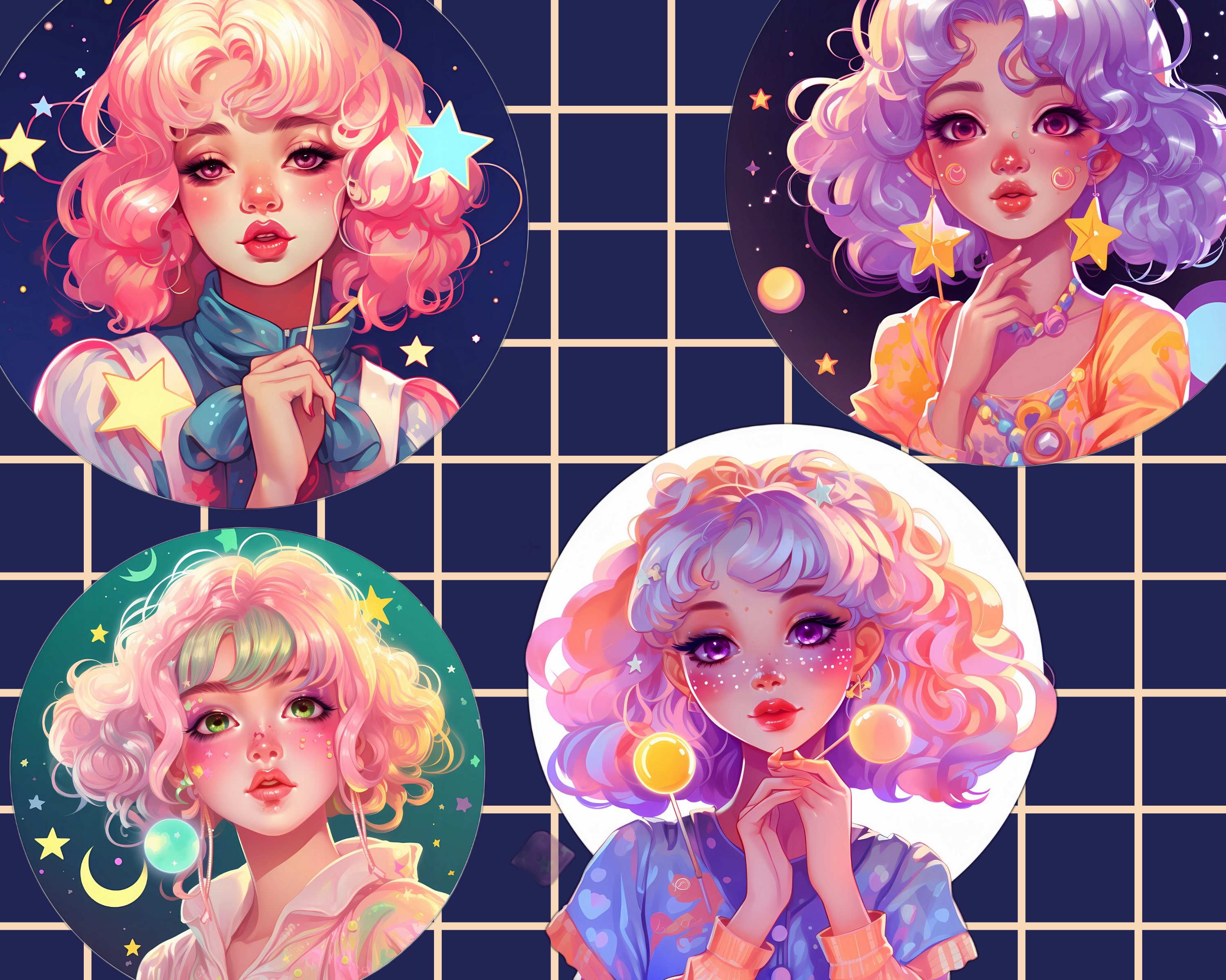These artworks were created using digital painting techniques and AI generation