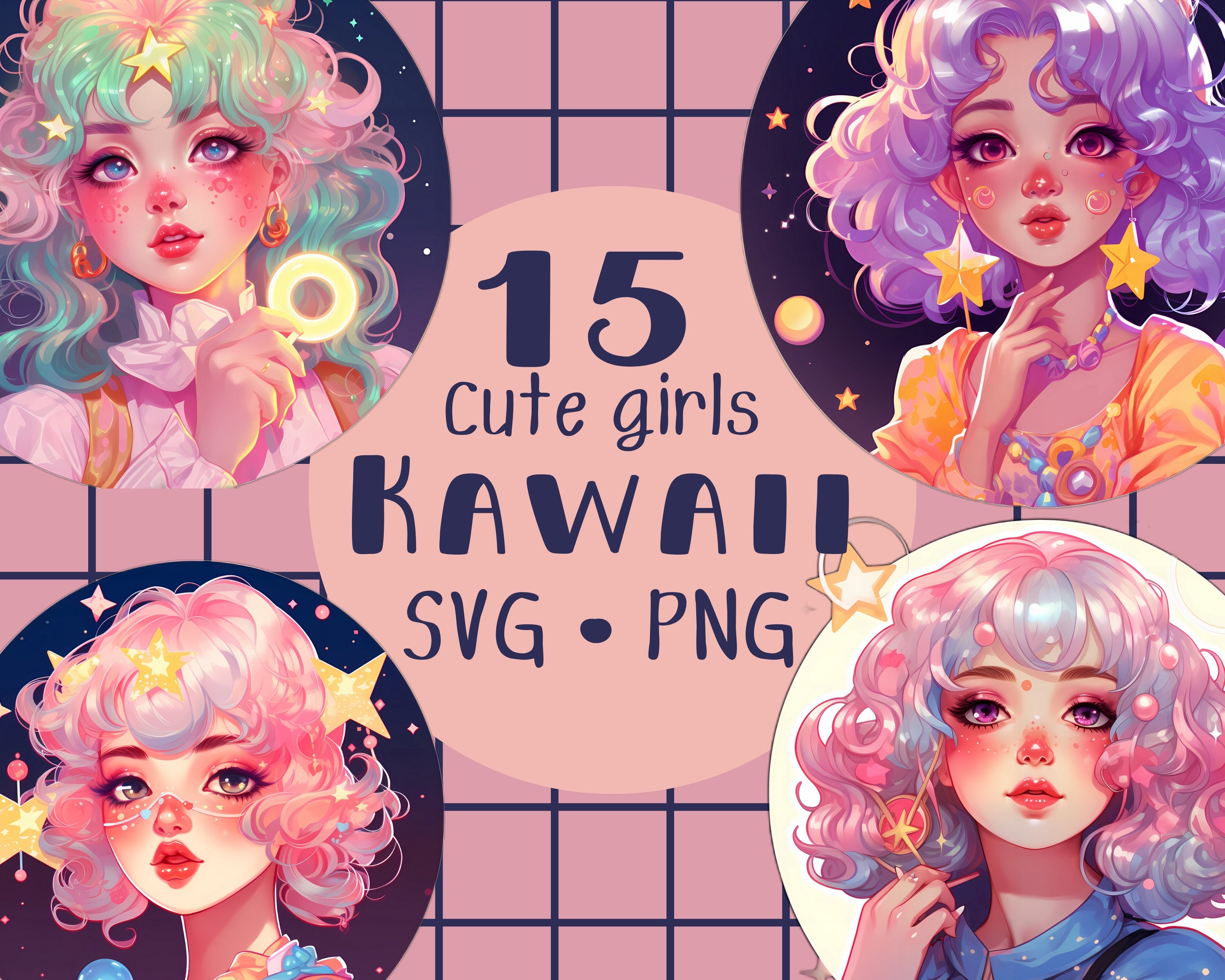 Kawaii Anime Girl Clipart: Manga Characters (PNG, SVG)