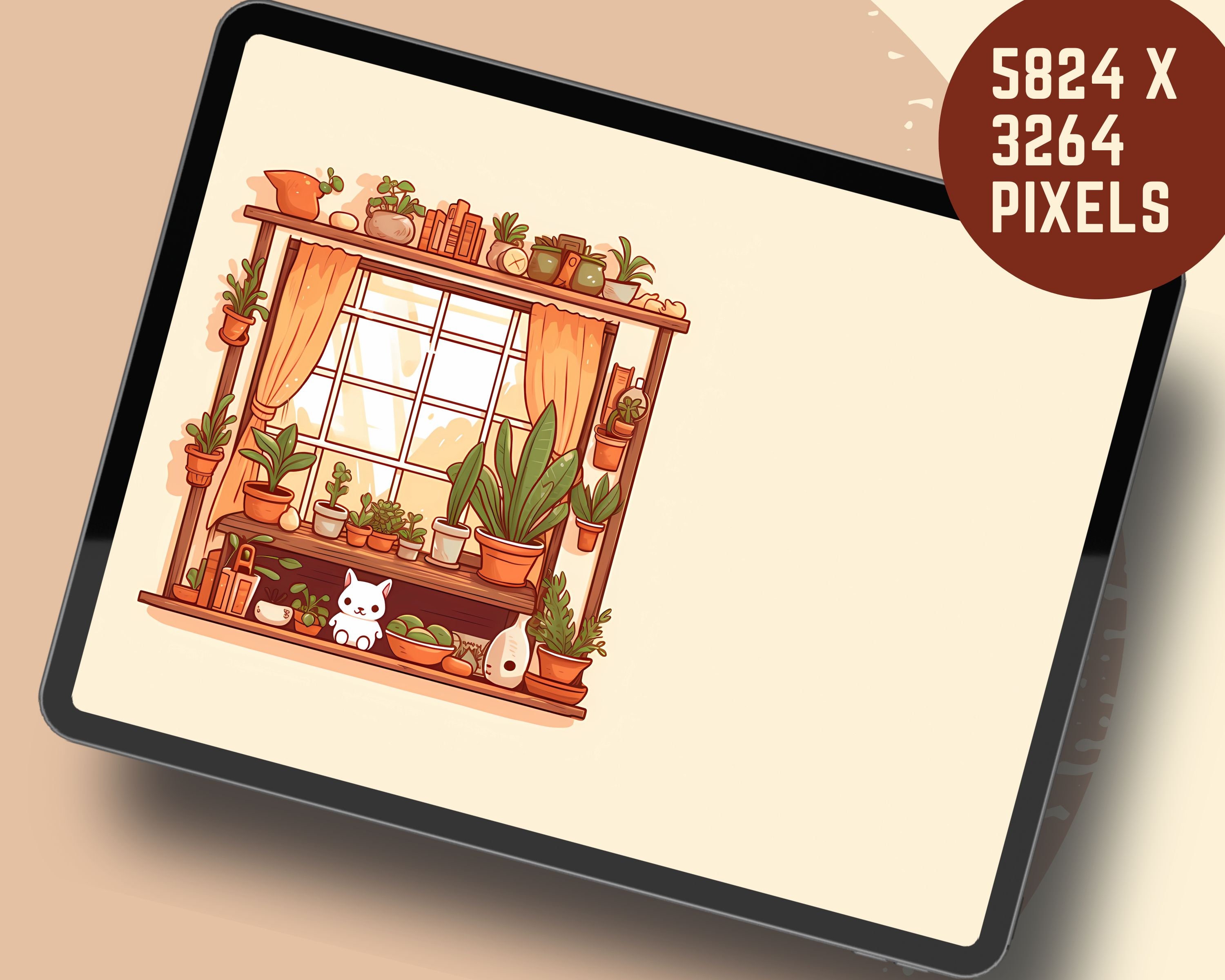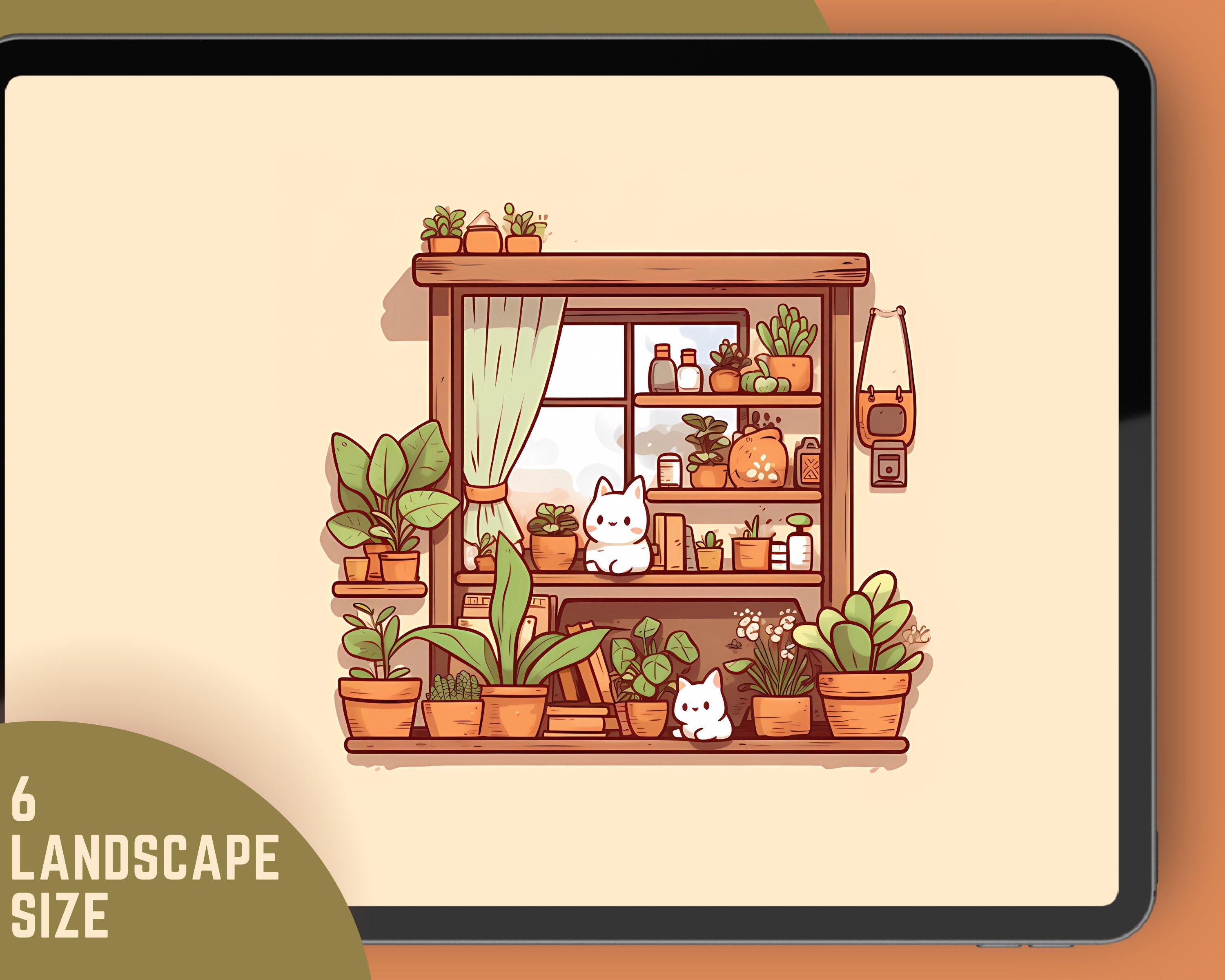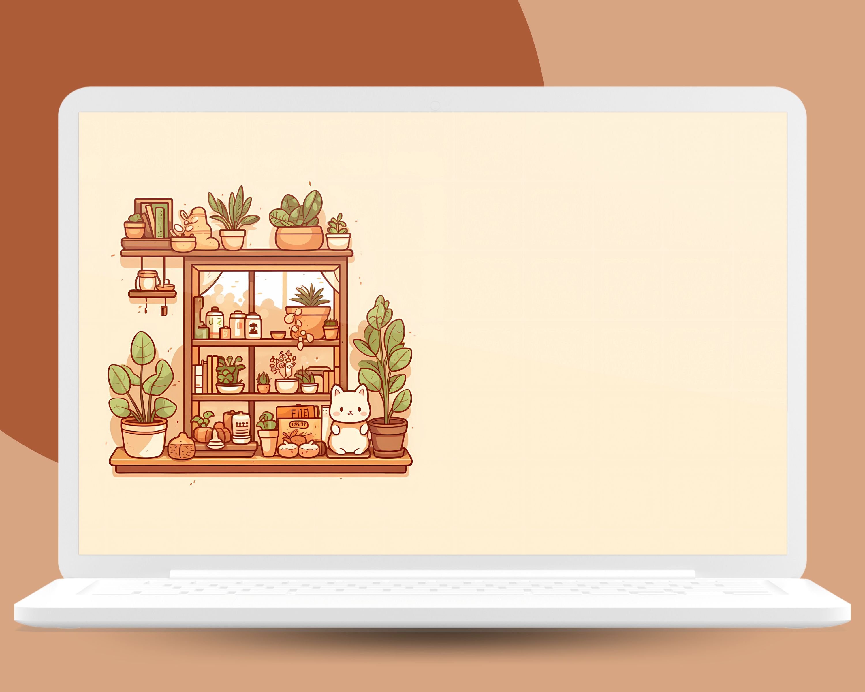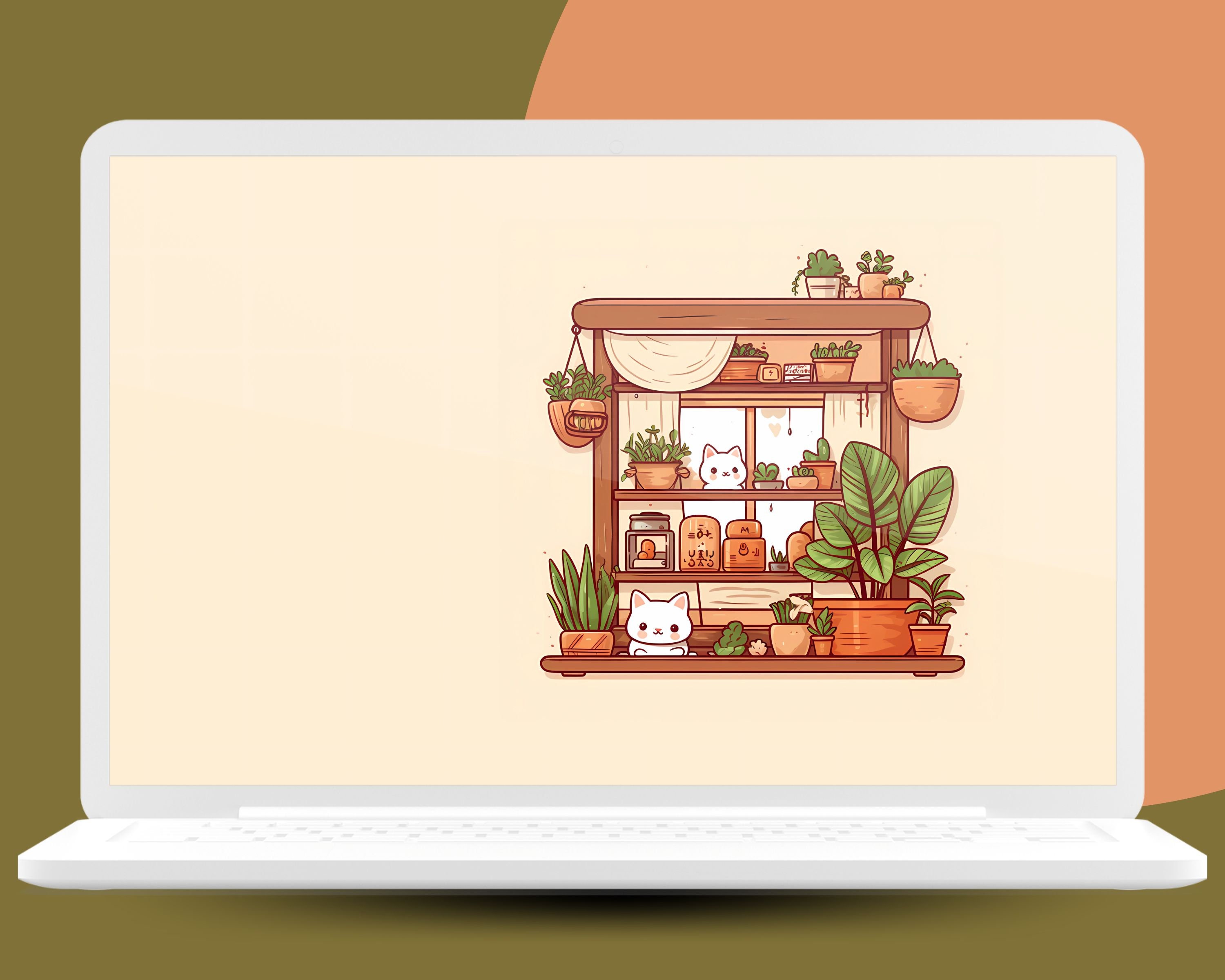 Bring a touch of magic to your devices with this set of 12 Studio kawaii Cats, plants and books cozy wallpapers! Featuring cute cats in cozy settings, these high-res JPG files will fit perfectly on your phone or computer/tablet screens.