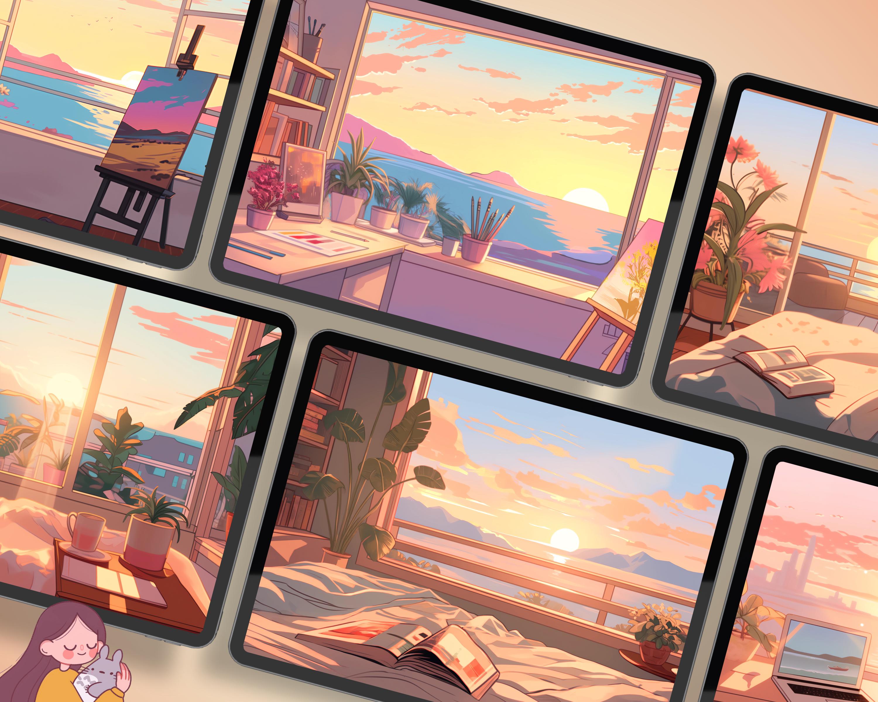 Bring a touch of coziness to your devices with this set of 12 lofi wallpapers! Featuring beautiful aesthetic scenes these high-res JPG files will fit perfectly on your phone or computer/tablet screens.