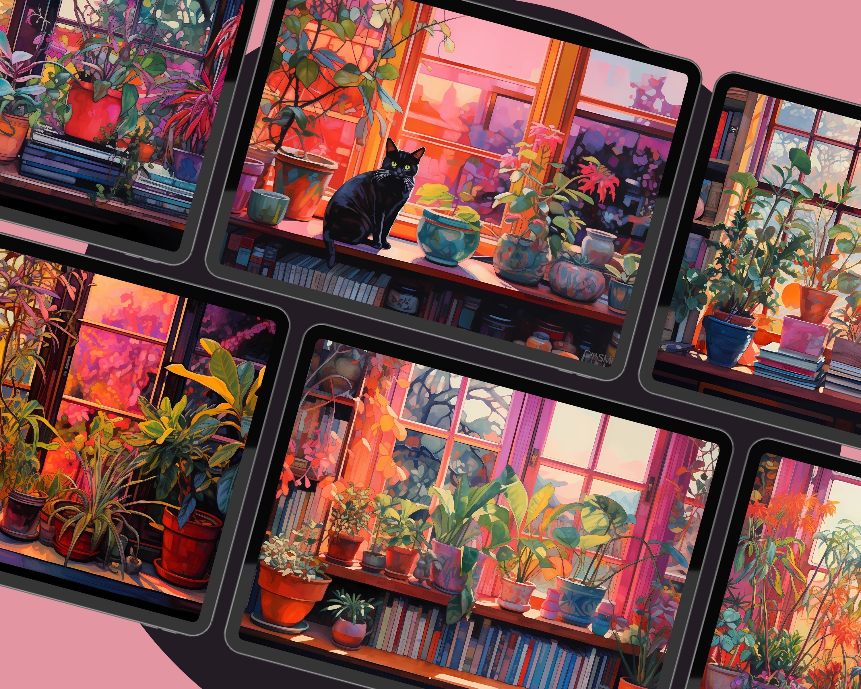 Bring a touch of coziness to your devices with this set of 12 lofi wallpapers! Featuring beautiful aesthetic scenes these high-res JPG files will fit perfectly on your phone or computer/tablet screens.