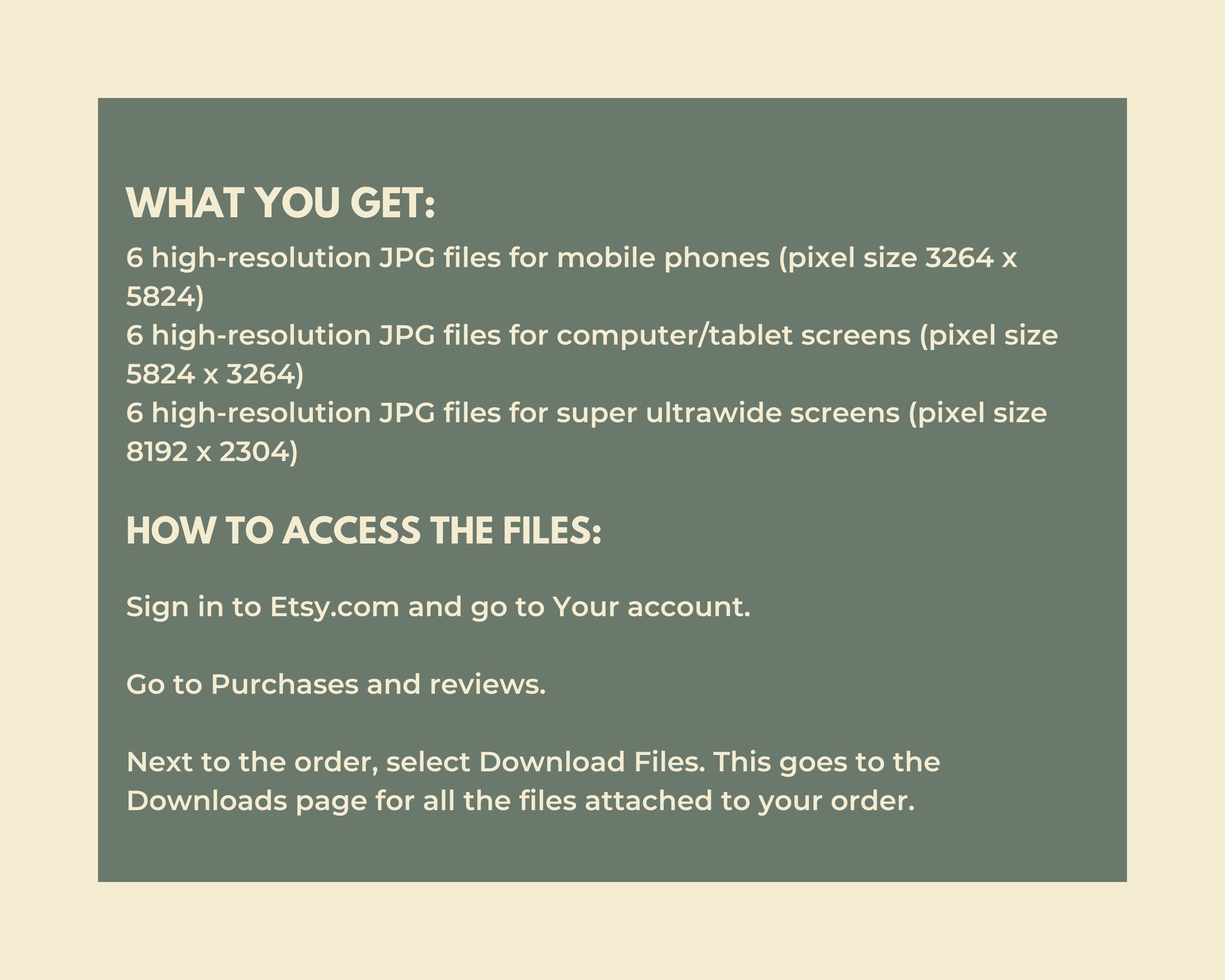 After purchase, you'll receive a PDF file with a link to download your wallpapers.