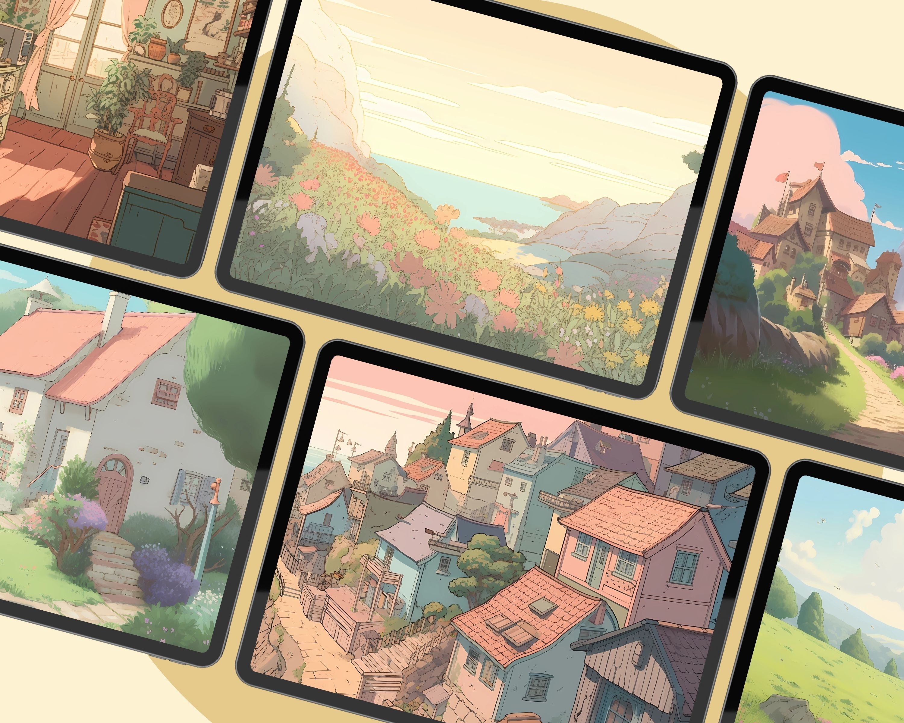 Studio Ghibli Anime Wallpaper: Cozy Pastel Screensaver (Digital Download)