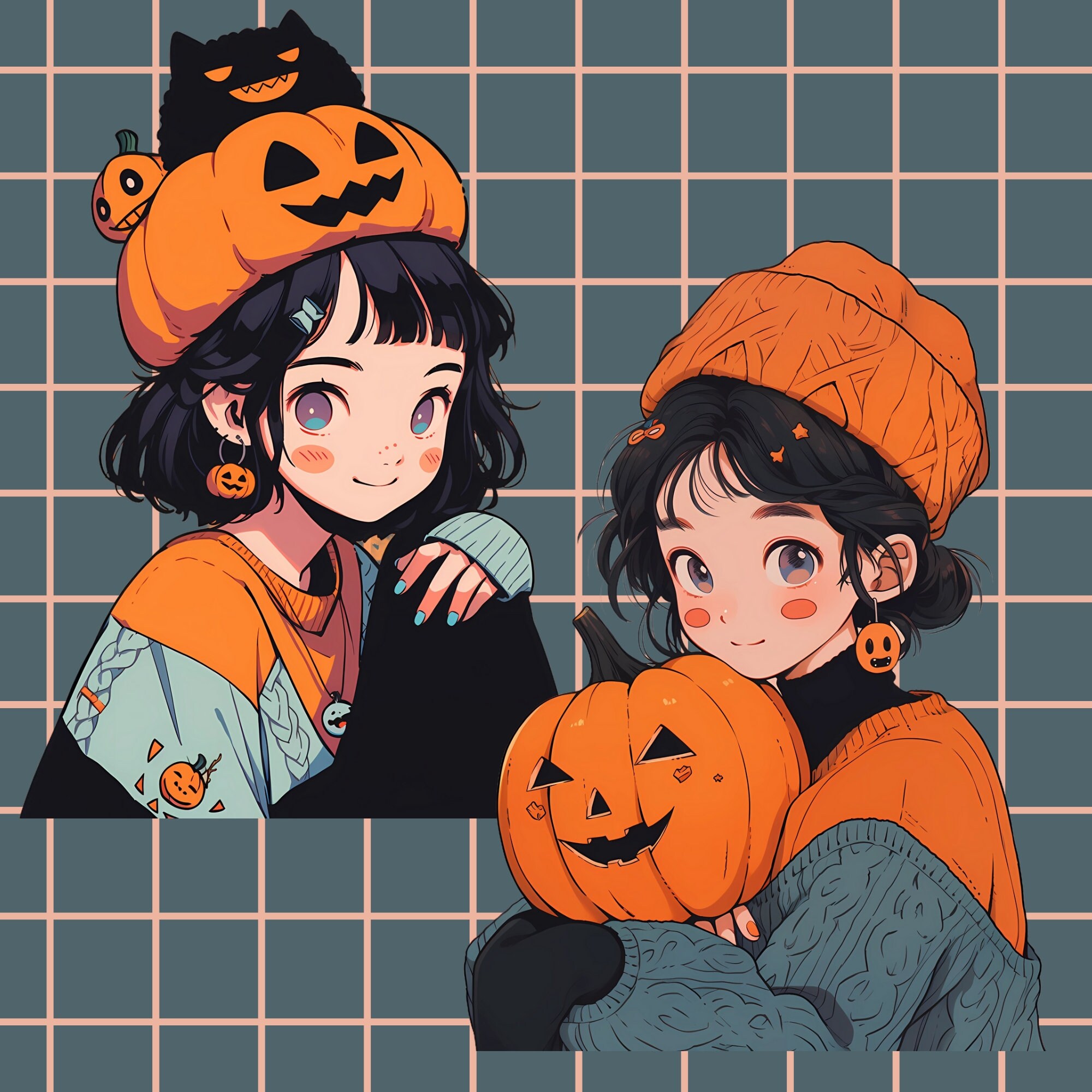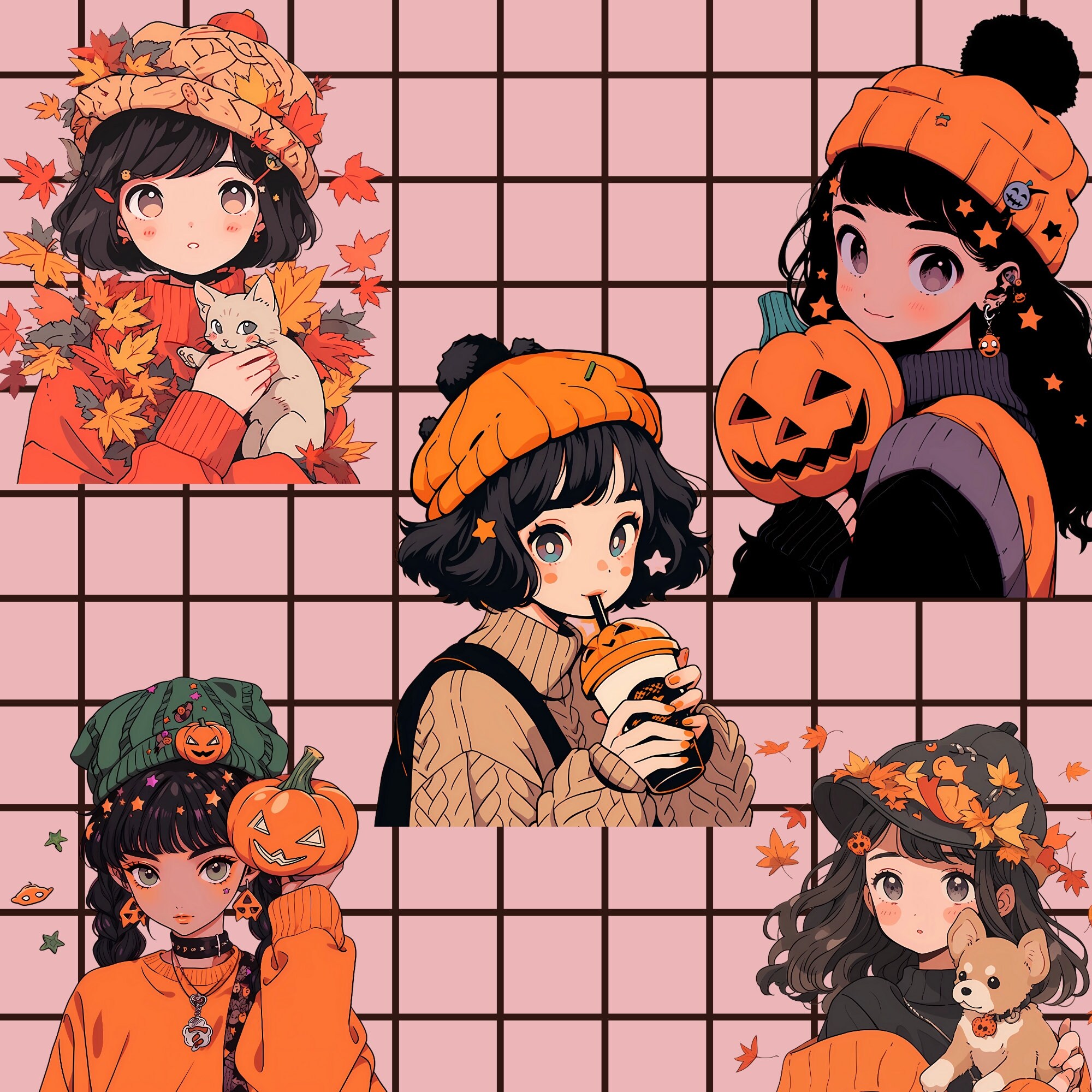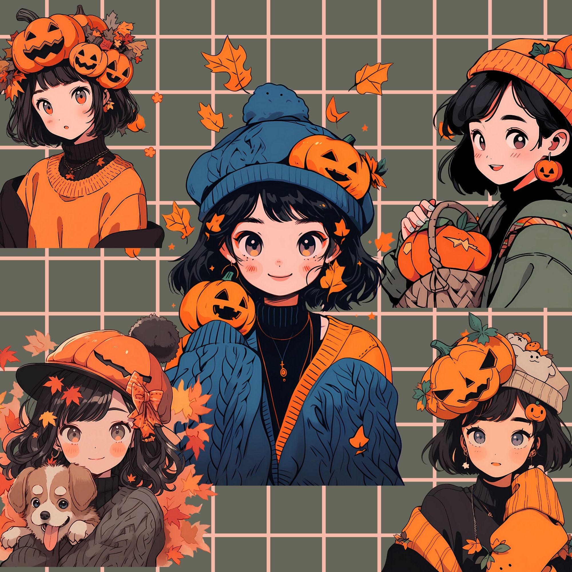 Kawaii Halloween Pumpkin Girl Clipart: 15 PNG & SVG Graphics (Digital Download)