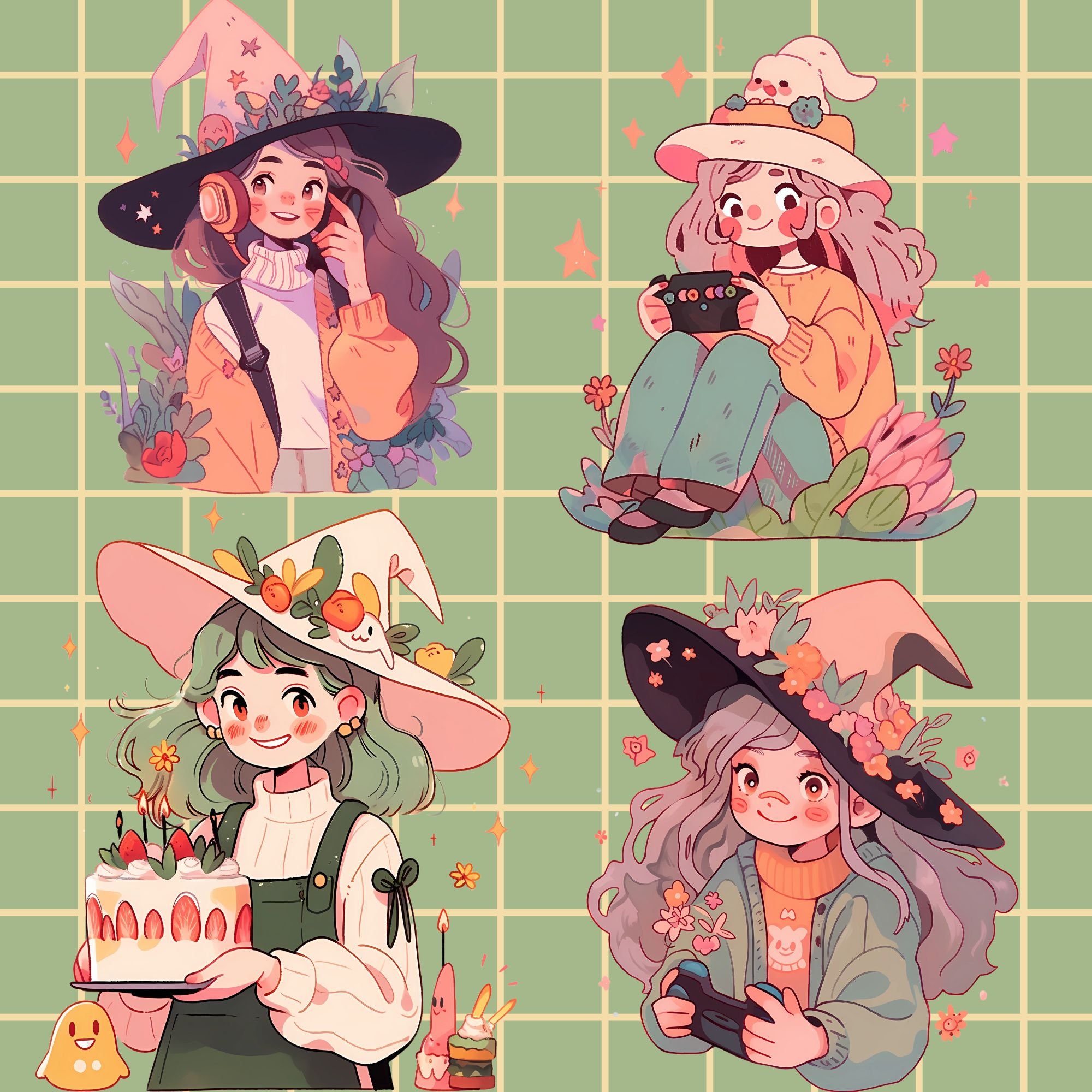 Unleash your creativity with this manga-inspired clip art collection. Whether you're designing printed products like cards, invitations, gift tags, or creating captivating digital content such as websites, banners, and logos, these charming illustrations will infuse your projects with a whimsical allure. Additionally, they're perfect for adding a touch of cuteness to your scrapbooking or handmade crafts. The possibilities are endless!