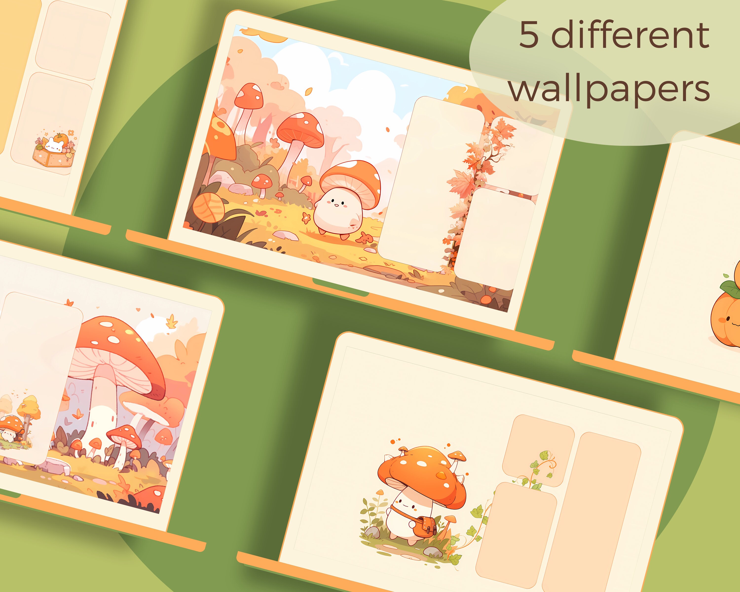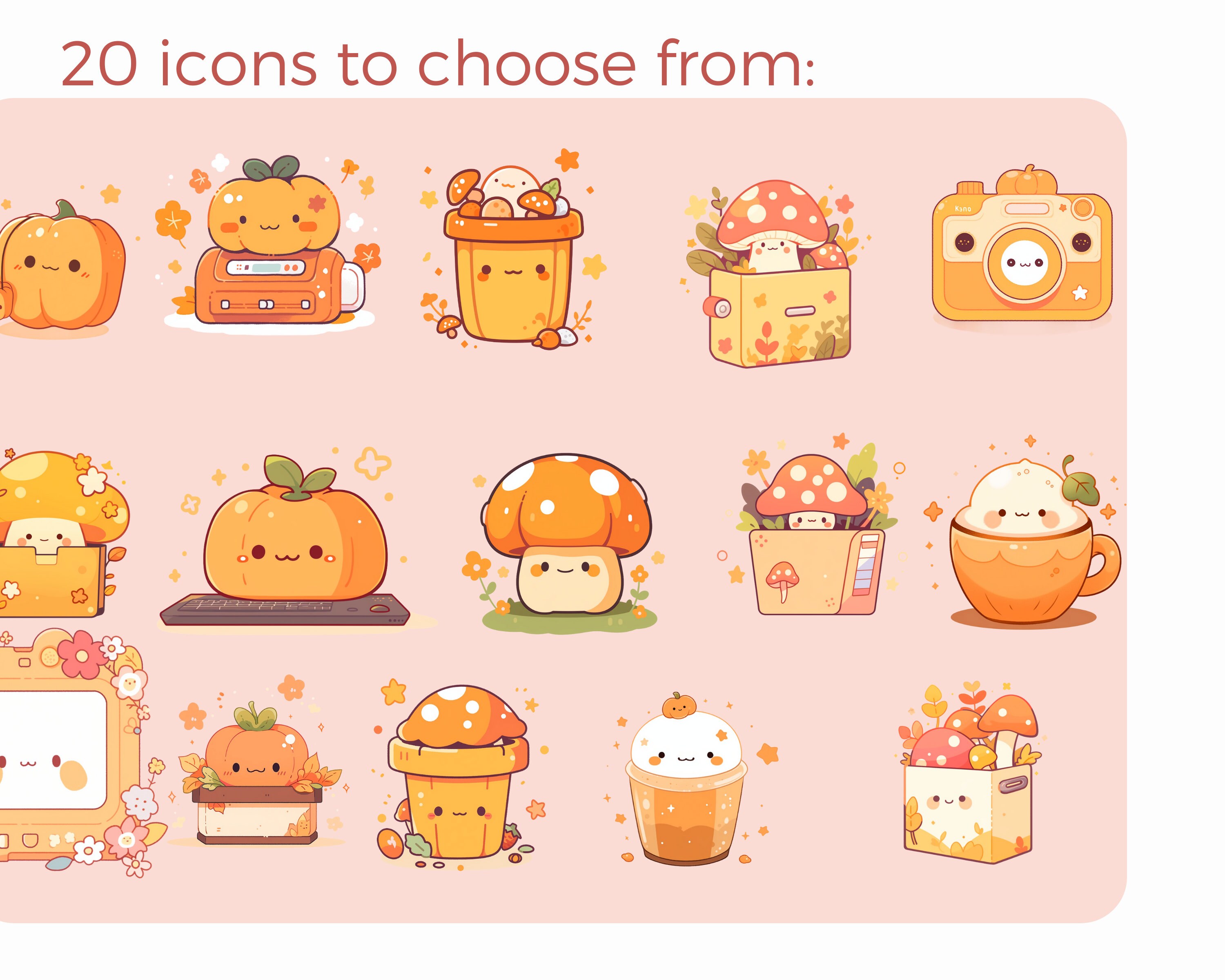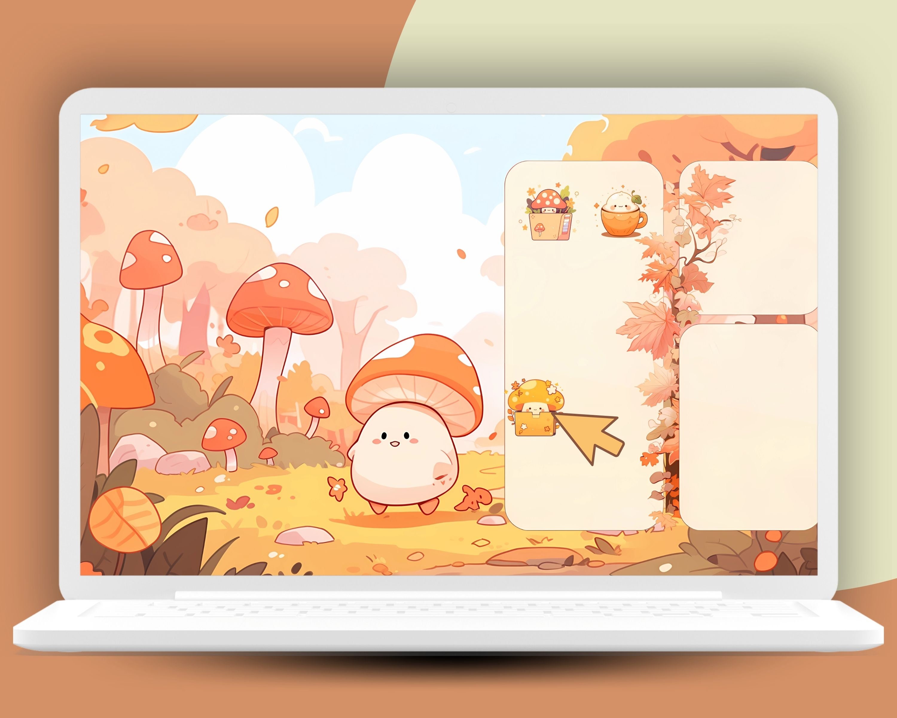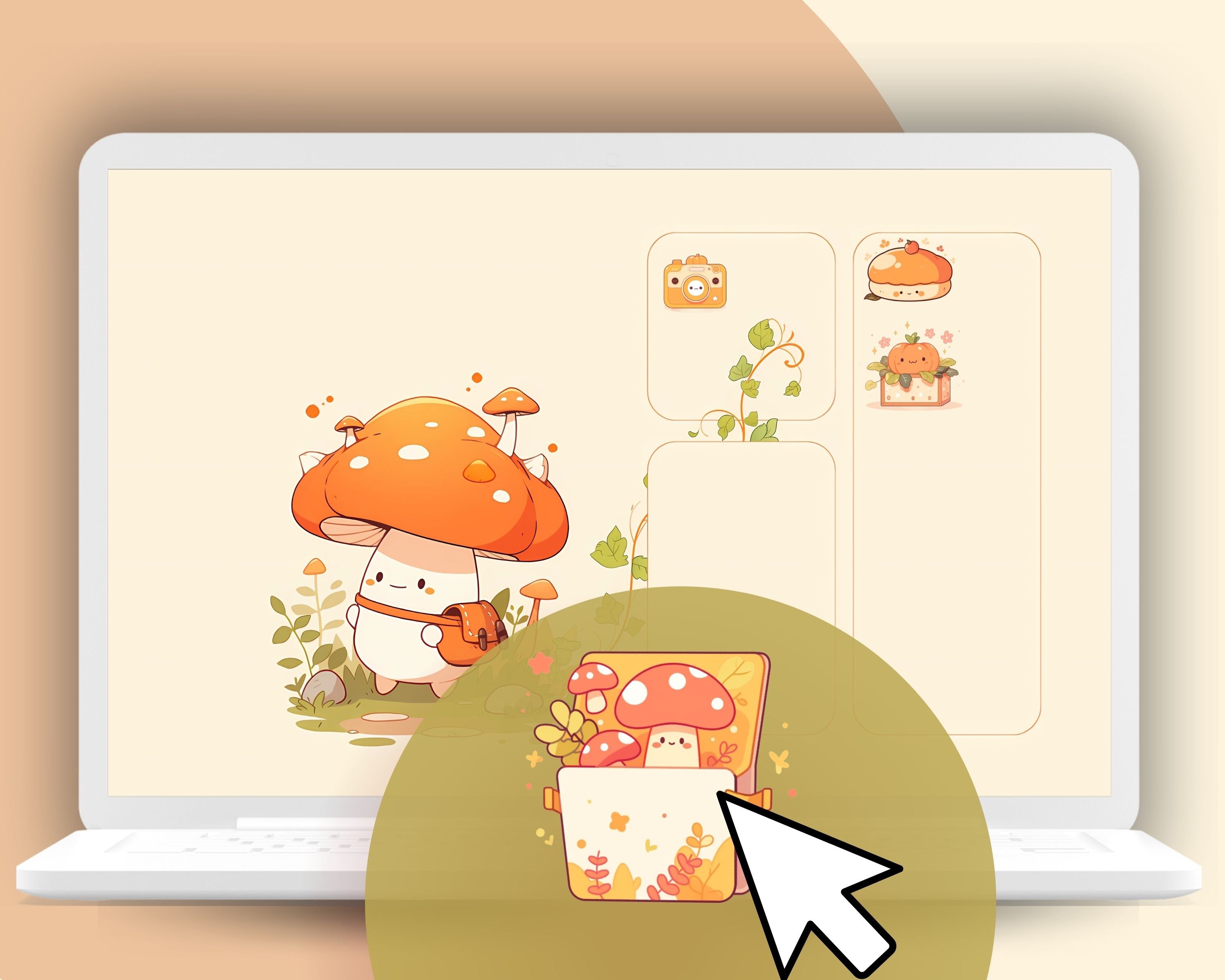 Kawaii Autumn Desktop Organizer Set: Pumpkin Icons & Wallpapers (Digital Download)
