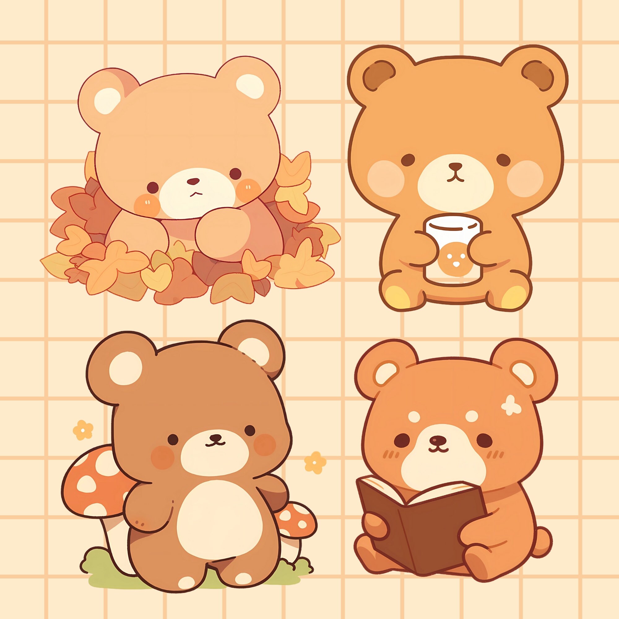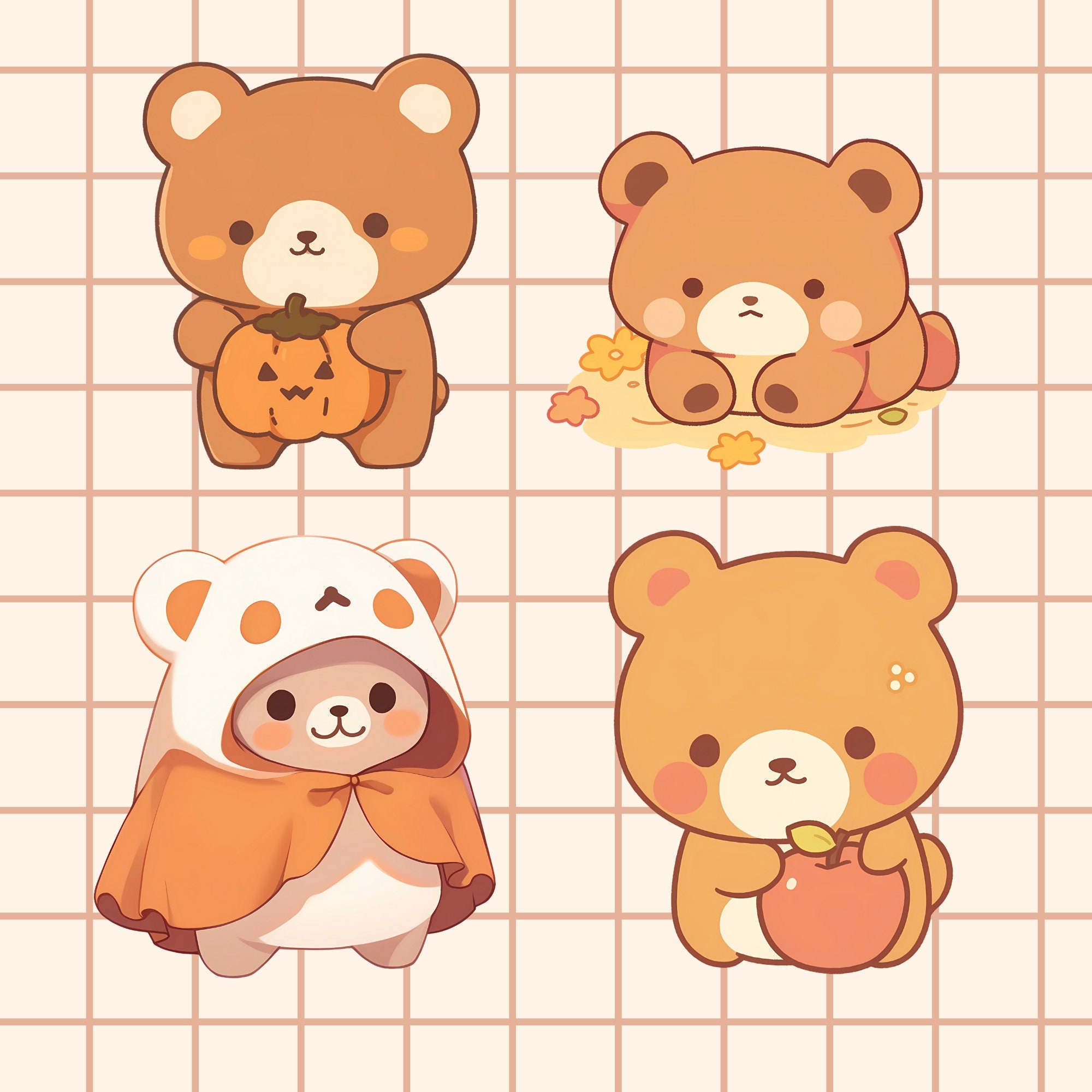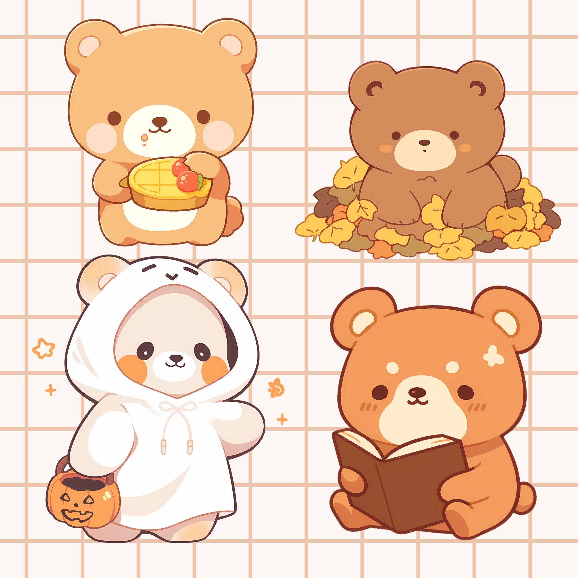 Kawaii Autumn Bear Clipart: 15 PNG & SVG Graphics (Digital Download)