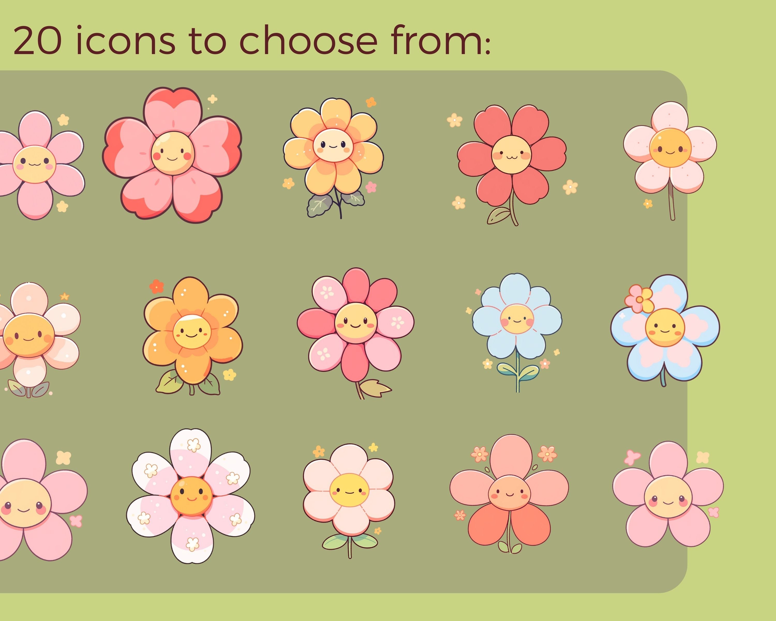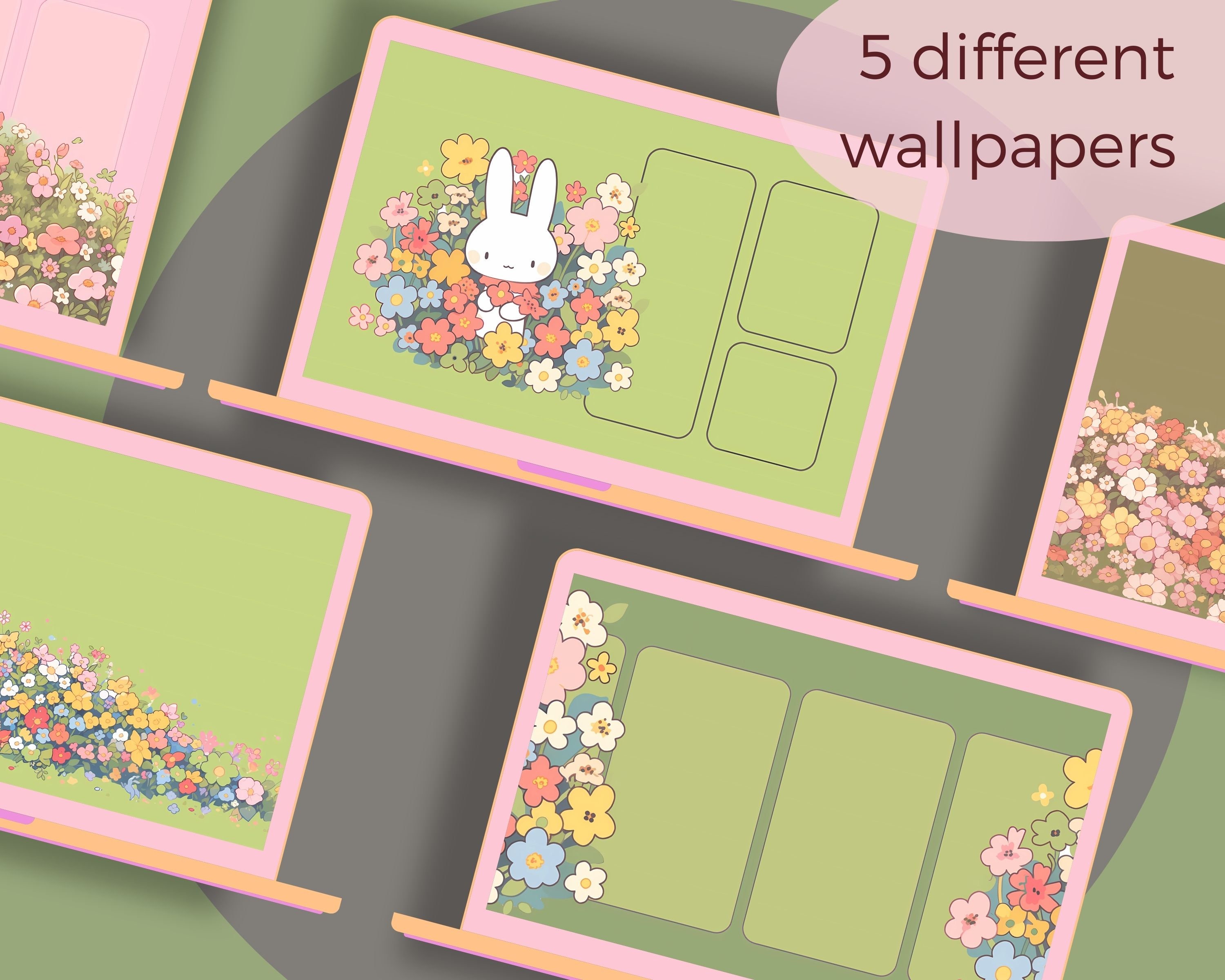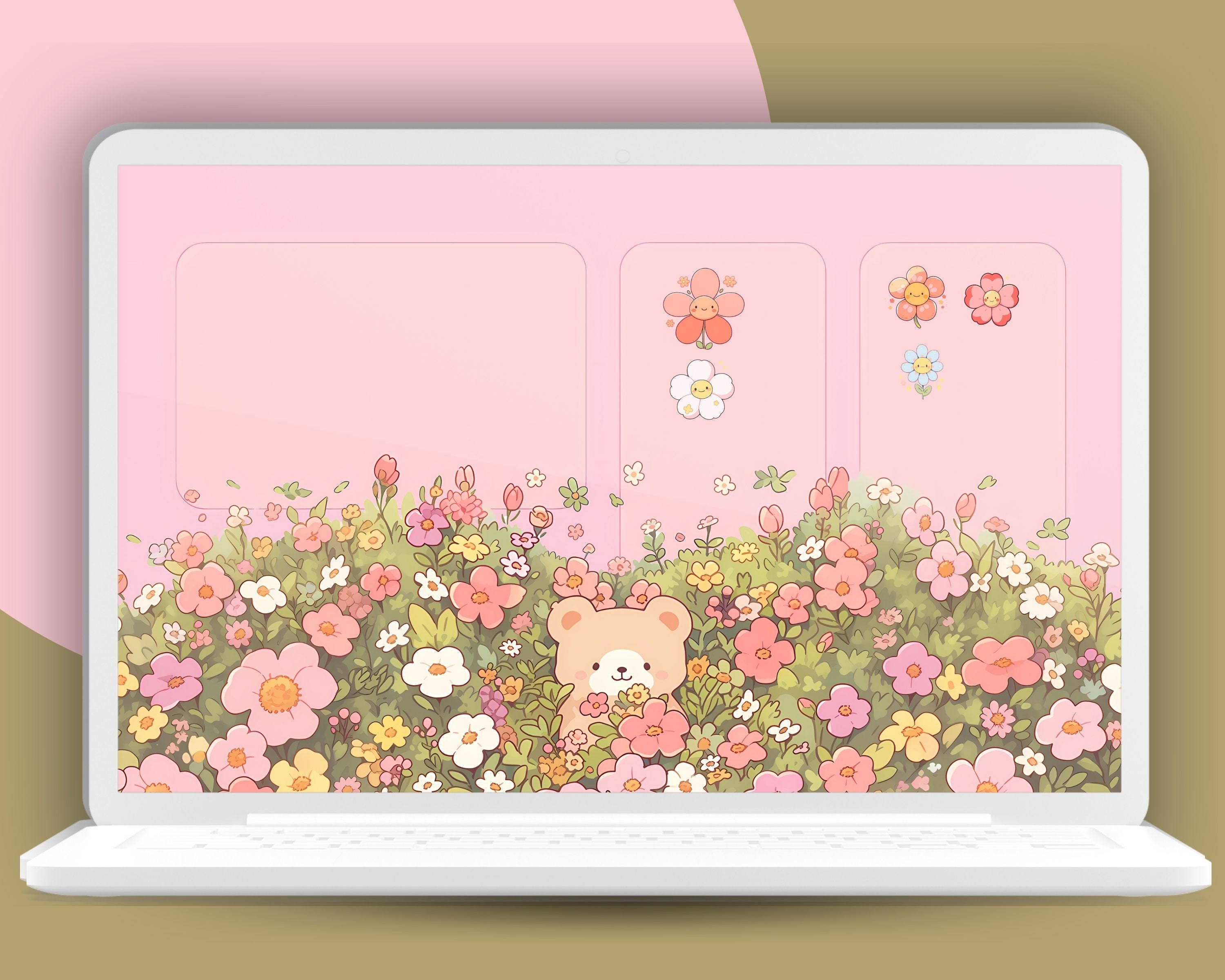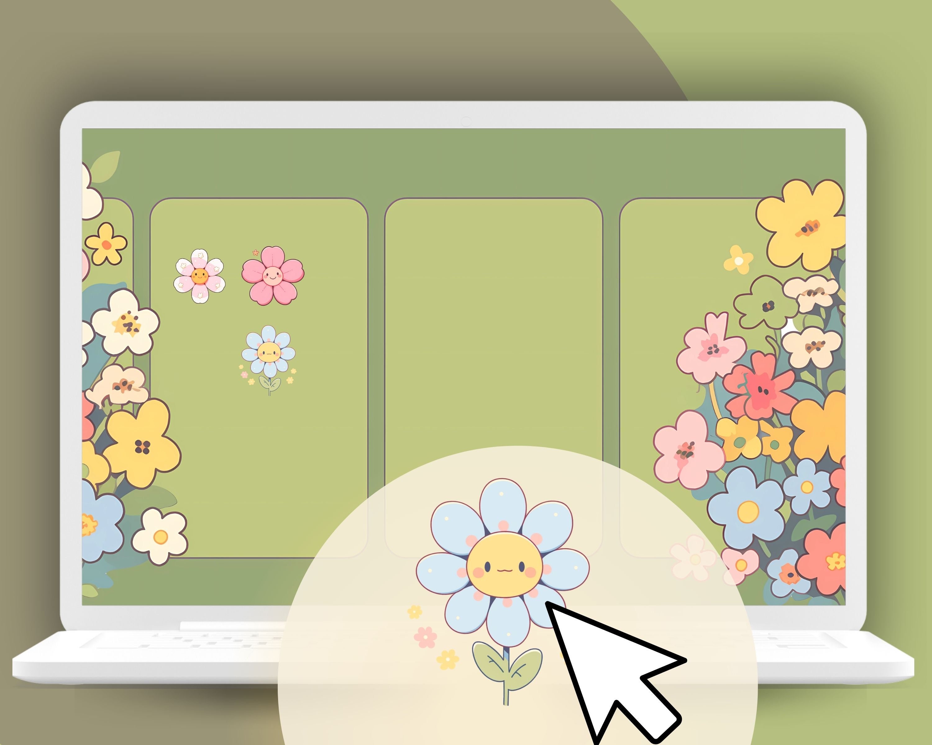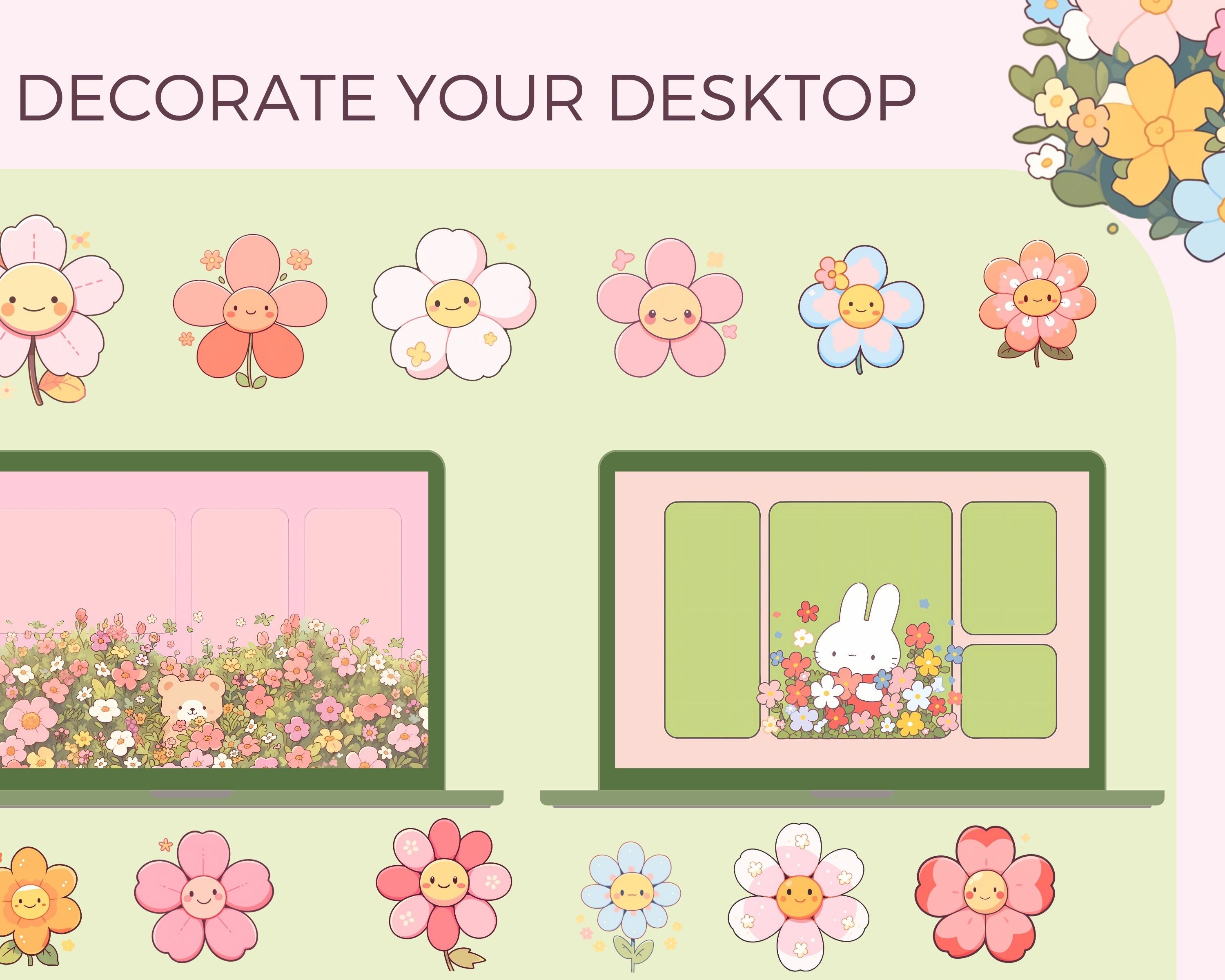 Kawaii Floral Desktop Organizer Set: Anime Pastel Icons & Wallpapers