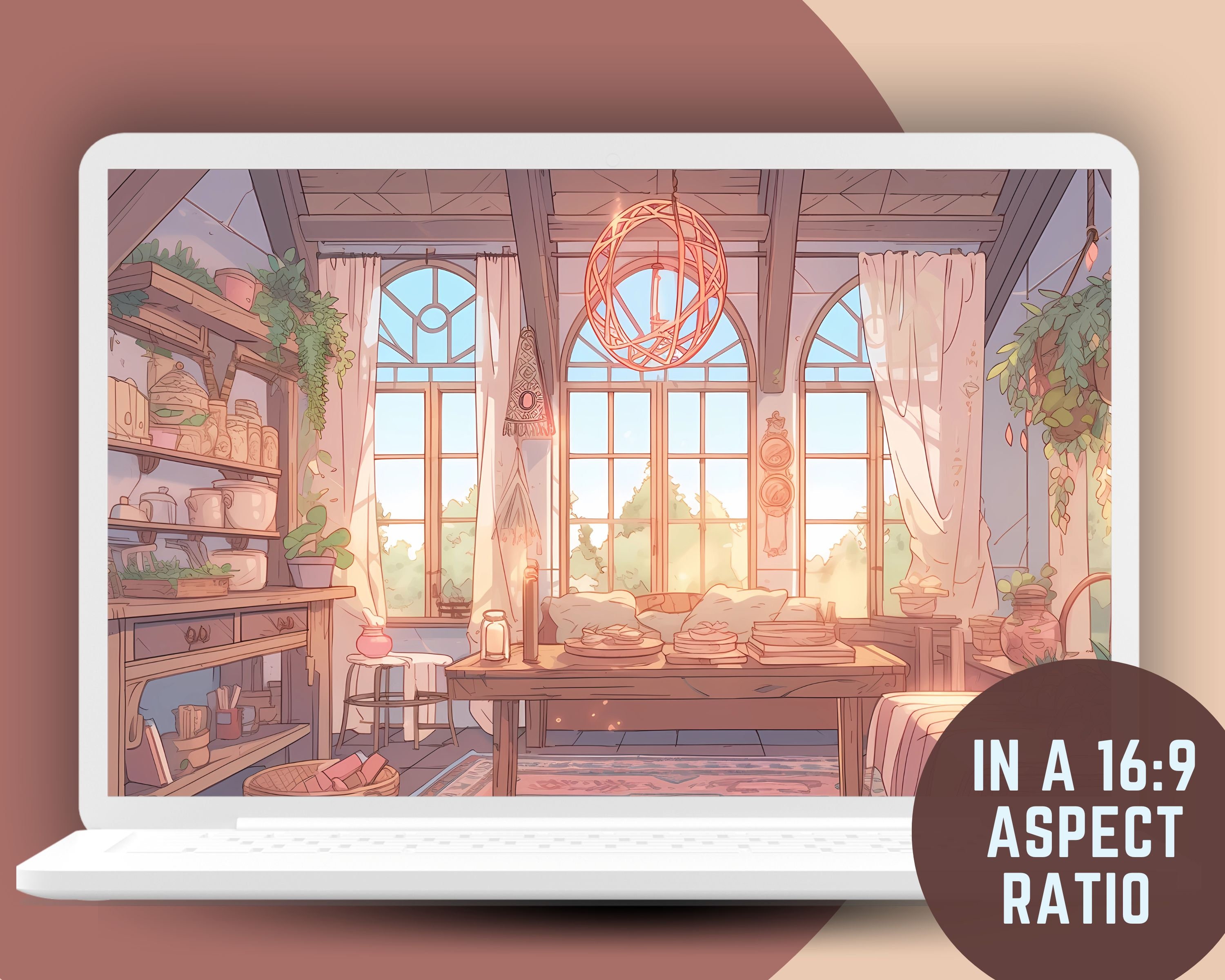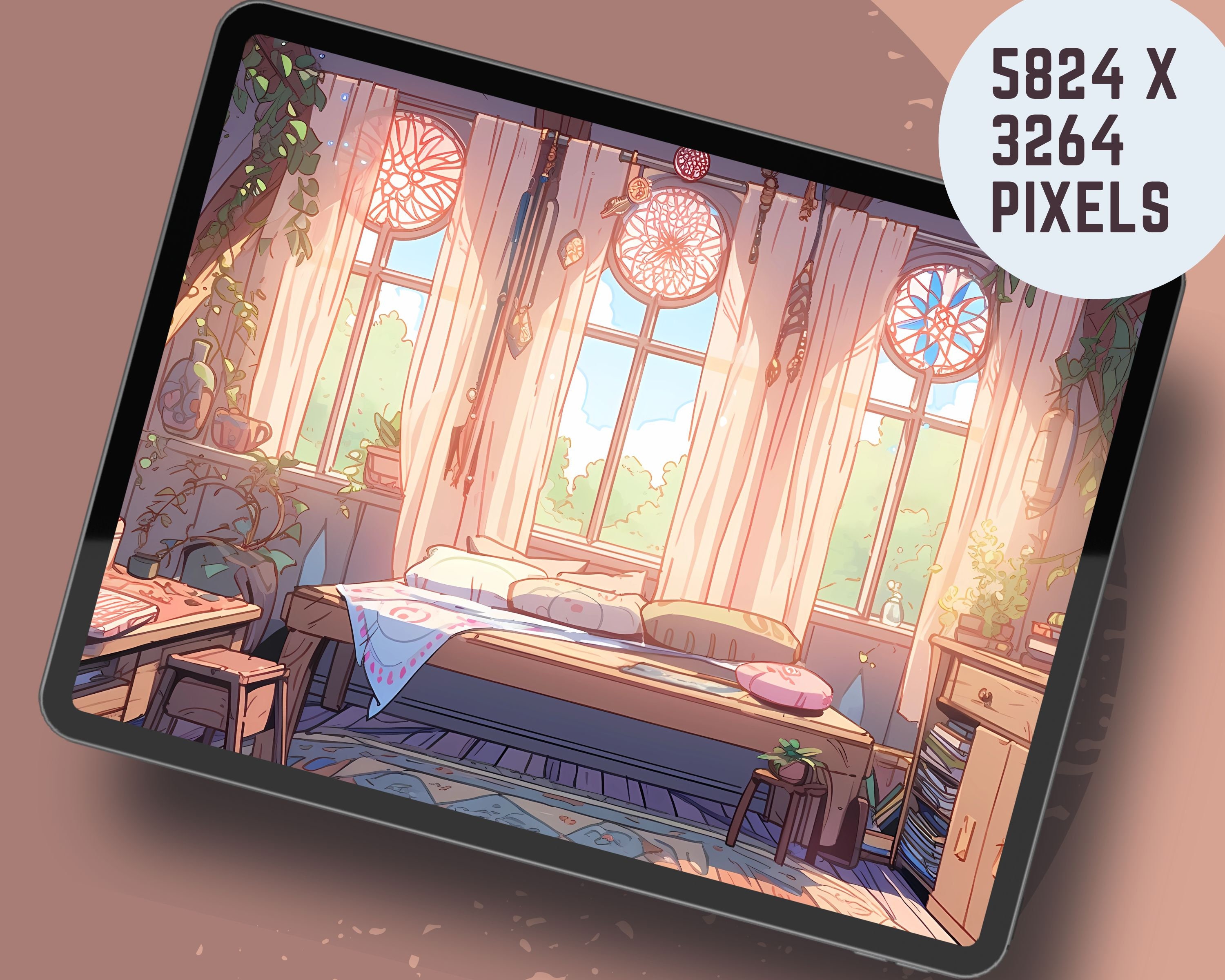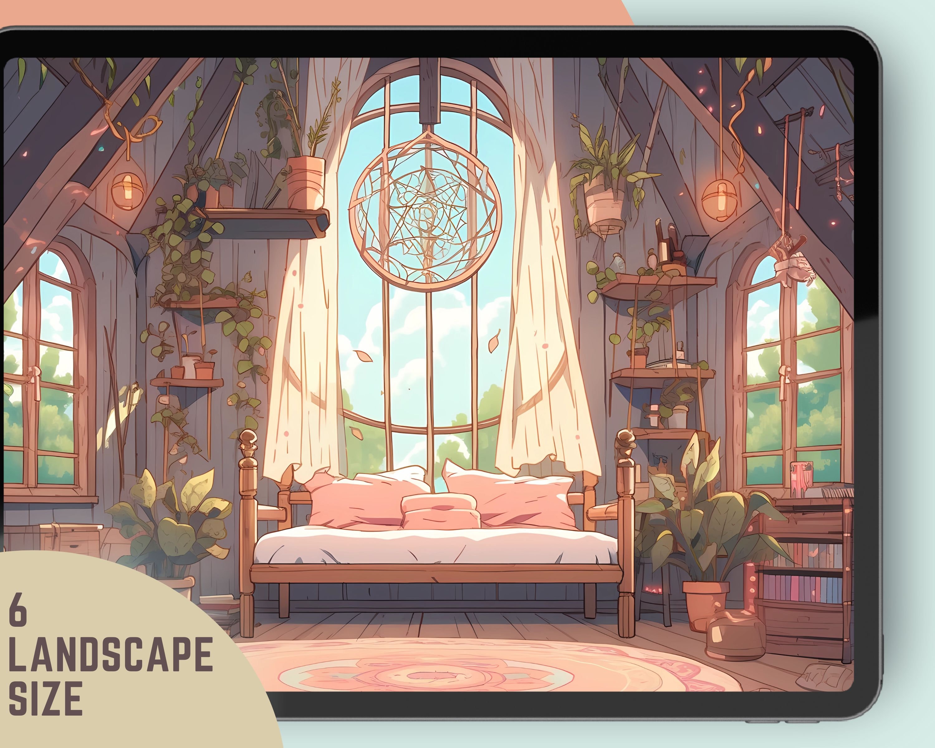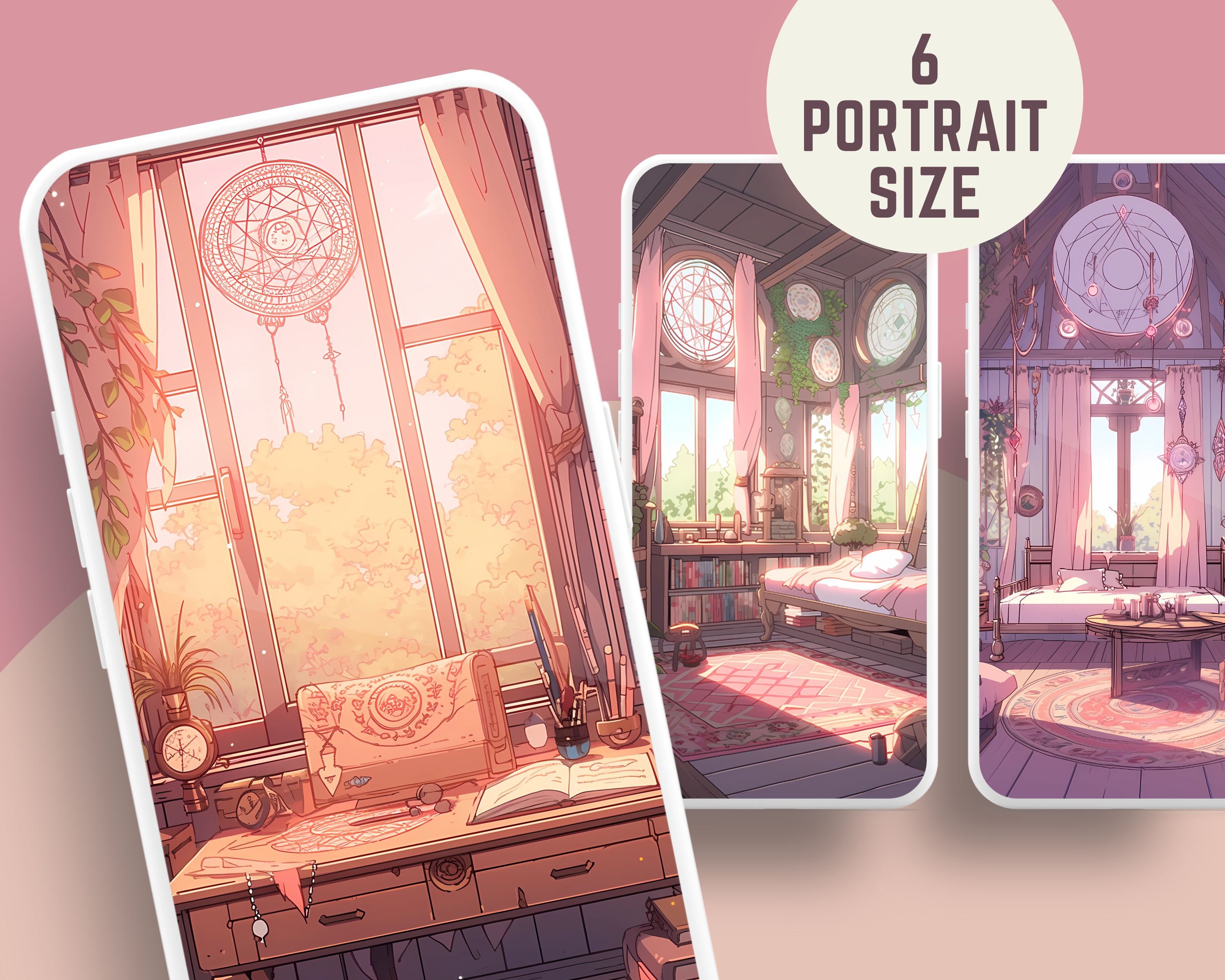 Purple Witchy Room Wallpaper Set, Anime Style (Digital Download)