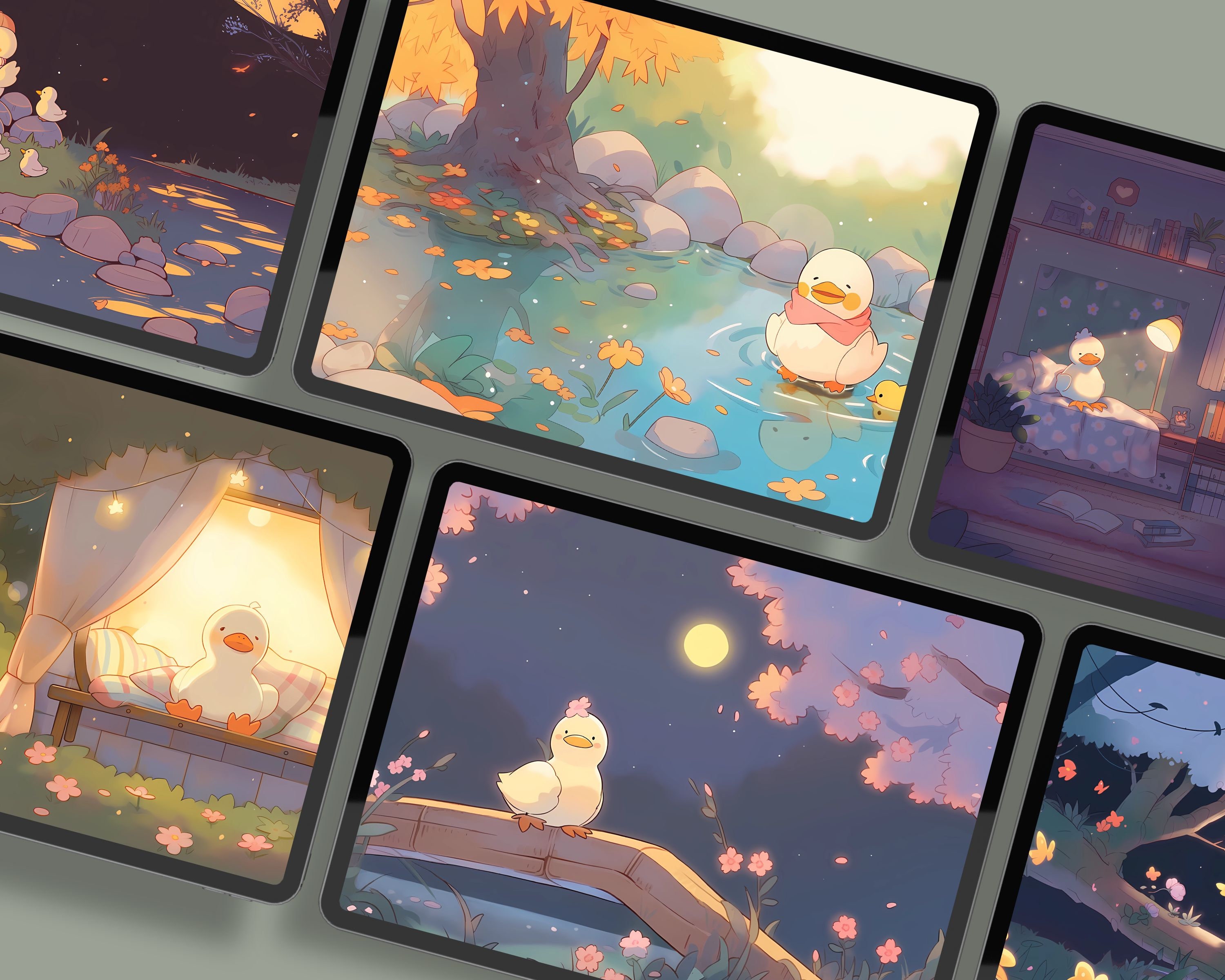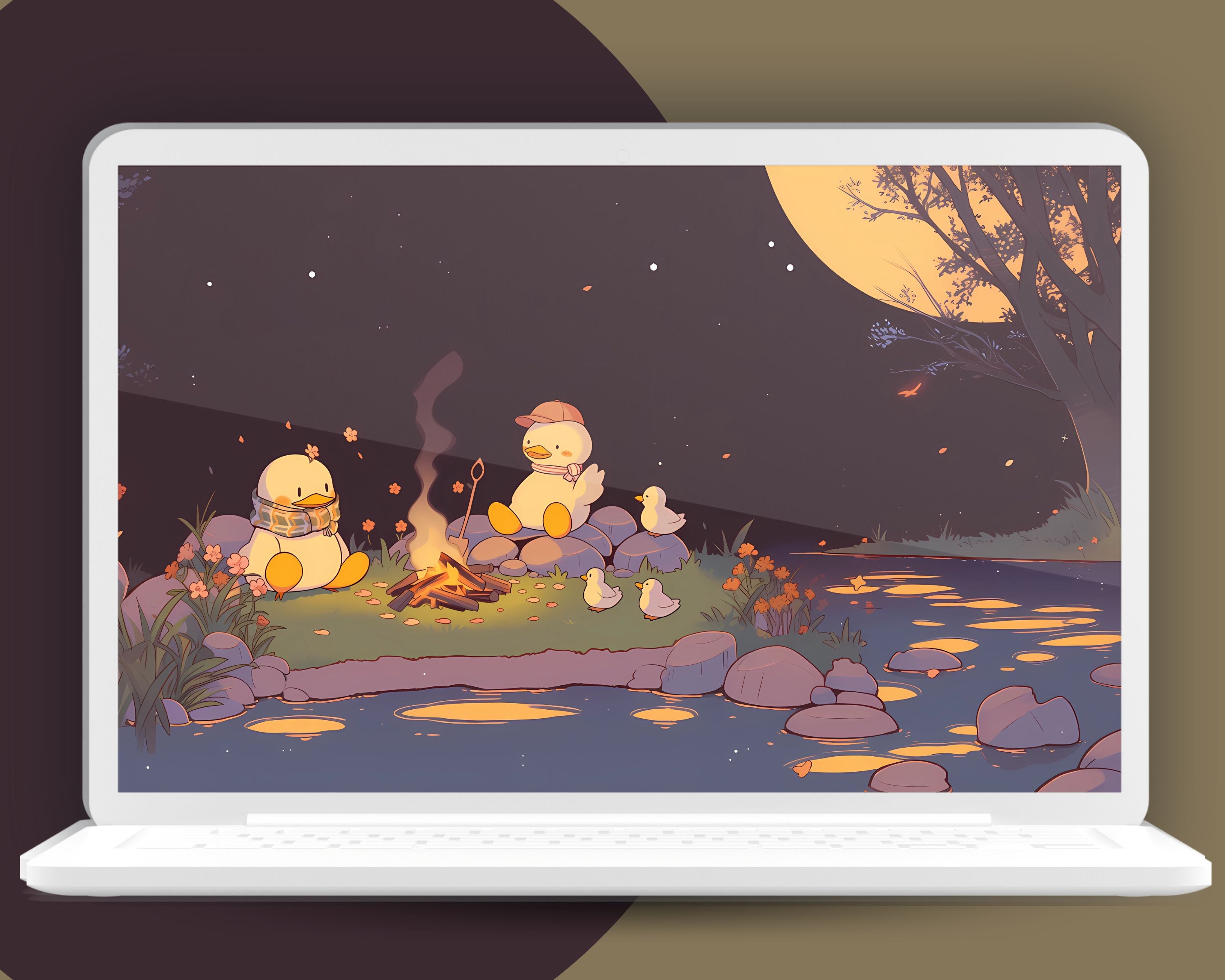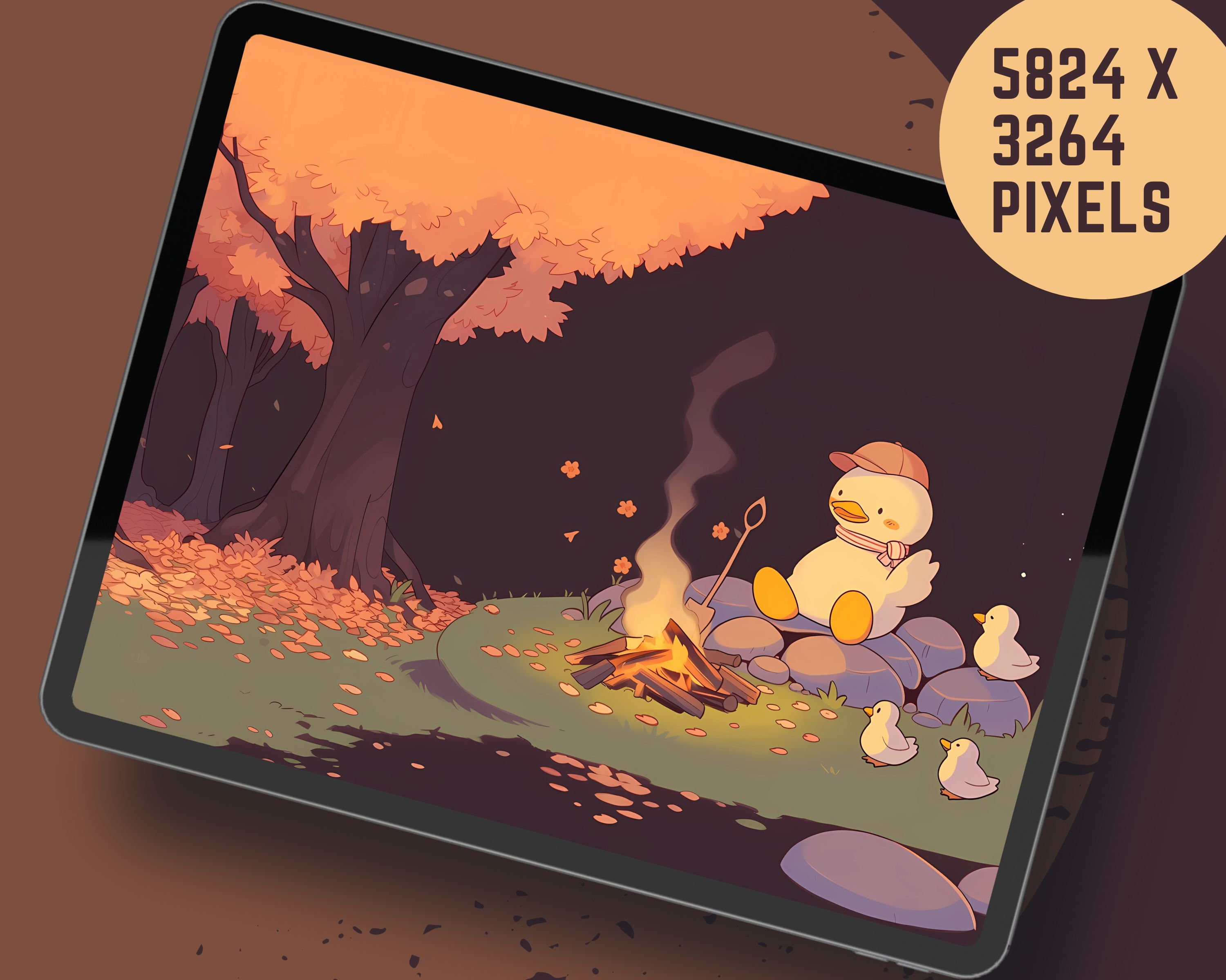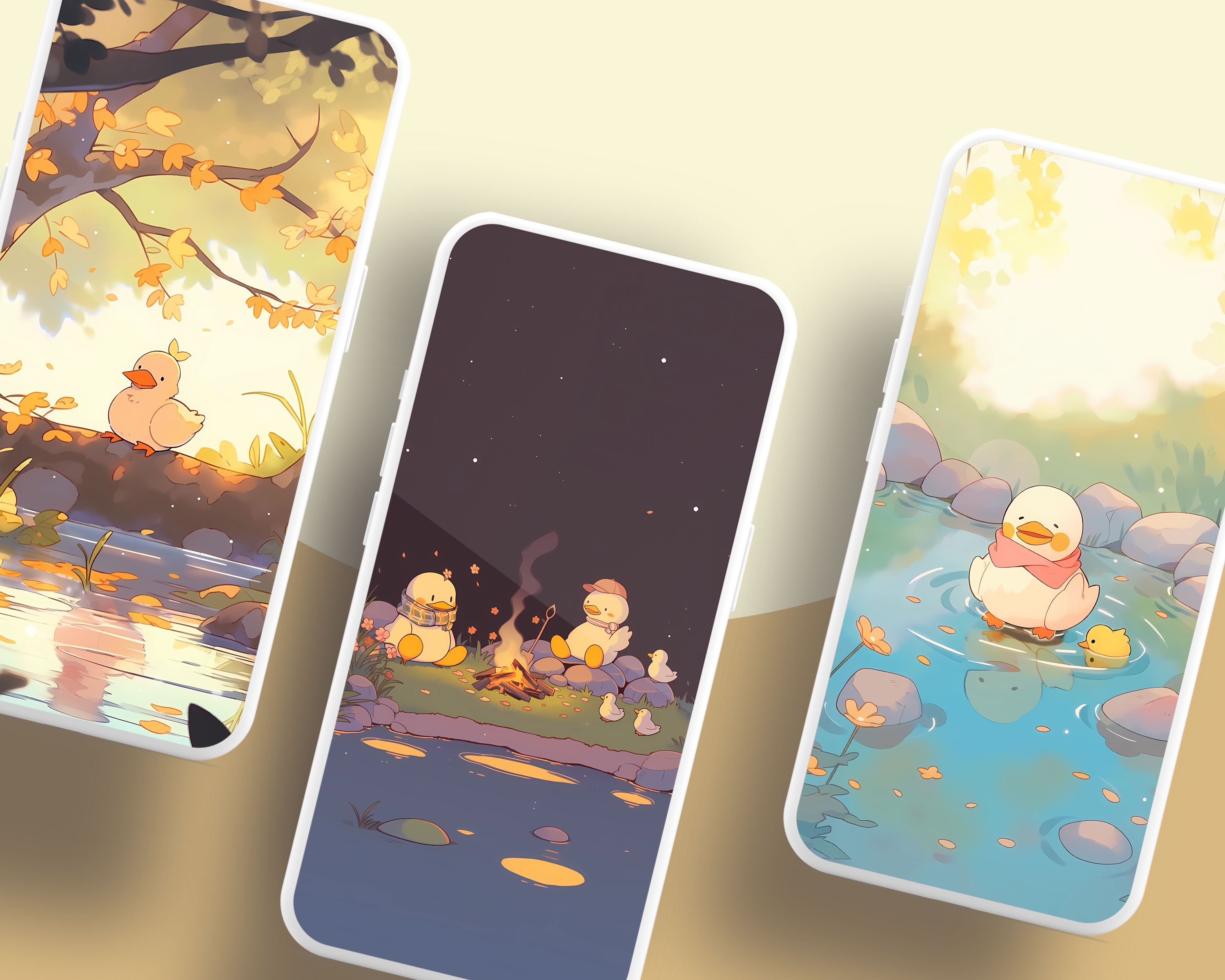 Kawaii Fall Ducks Wallpaper: Cozy Autumn Screensaver (Digital Download)