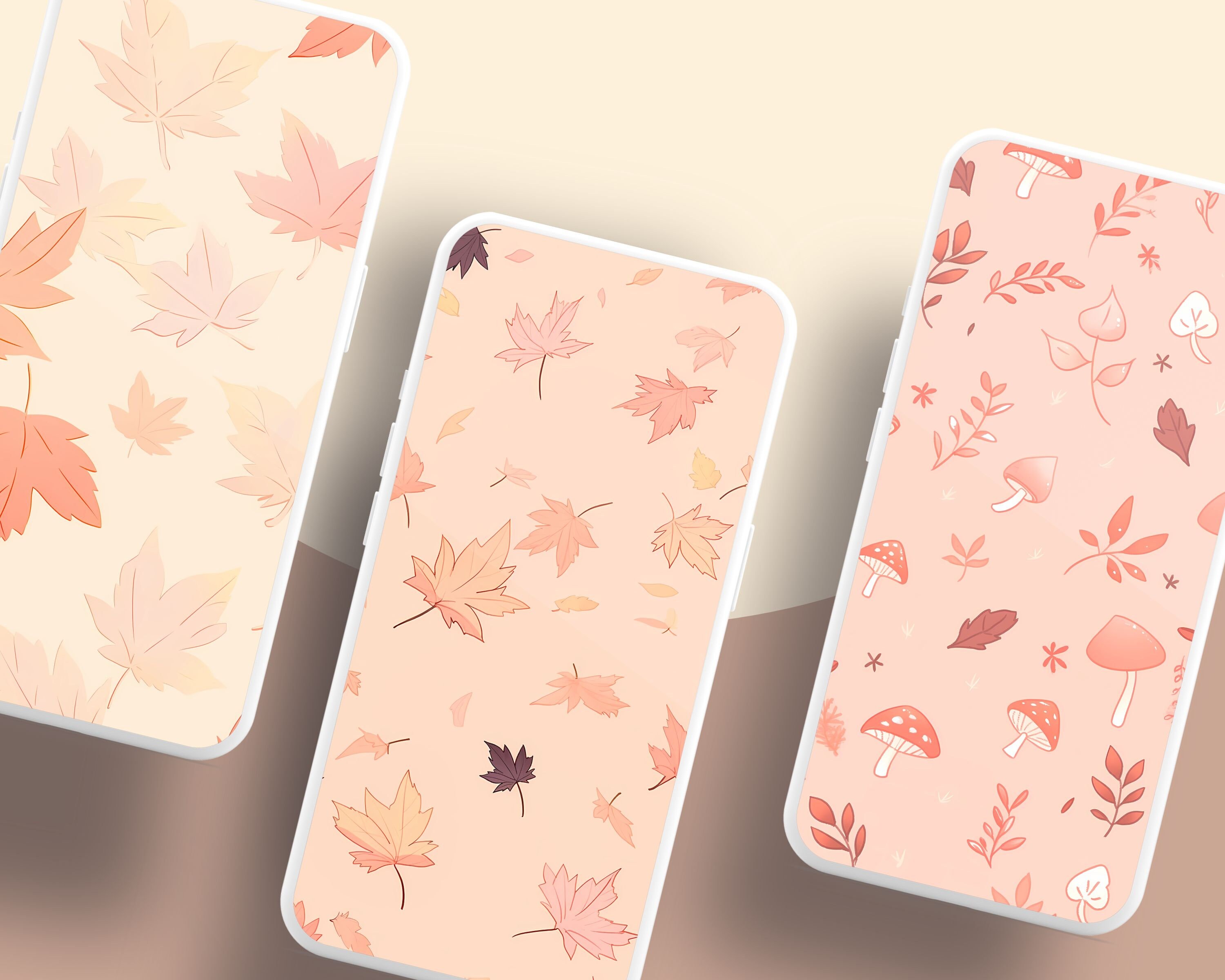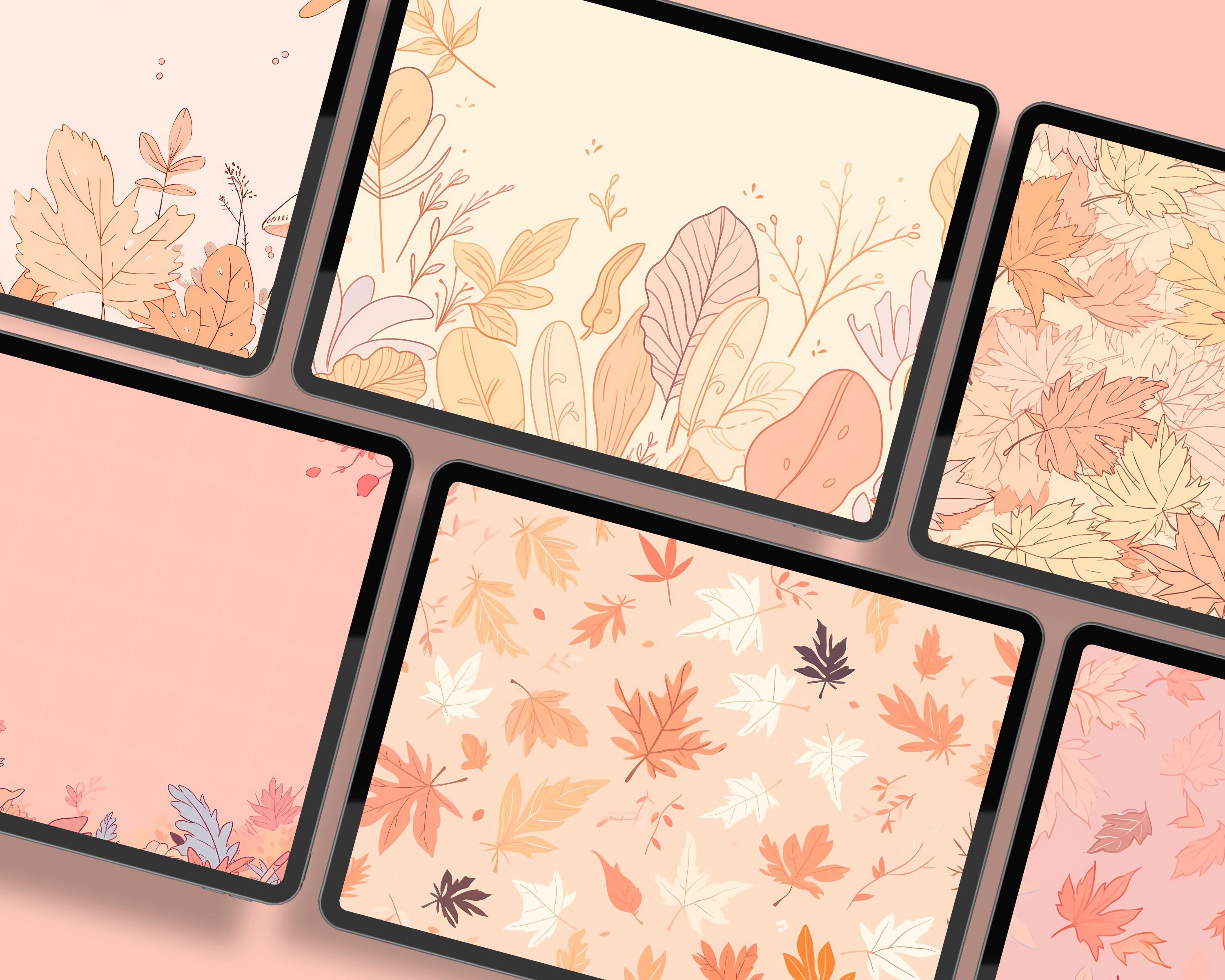 Autumn Leaves Wallpaper Set: Pink Pastel Desktop Backgrounds (Digital Download)