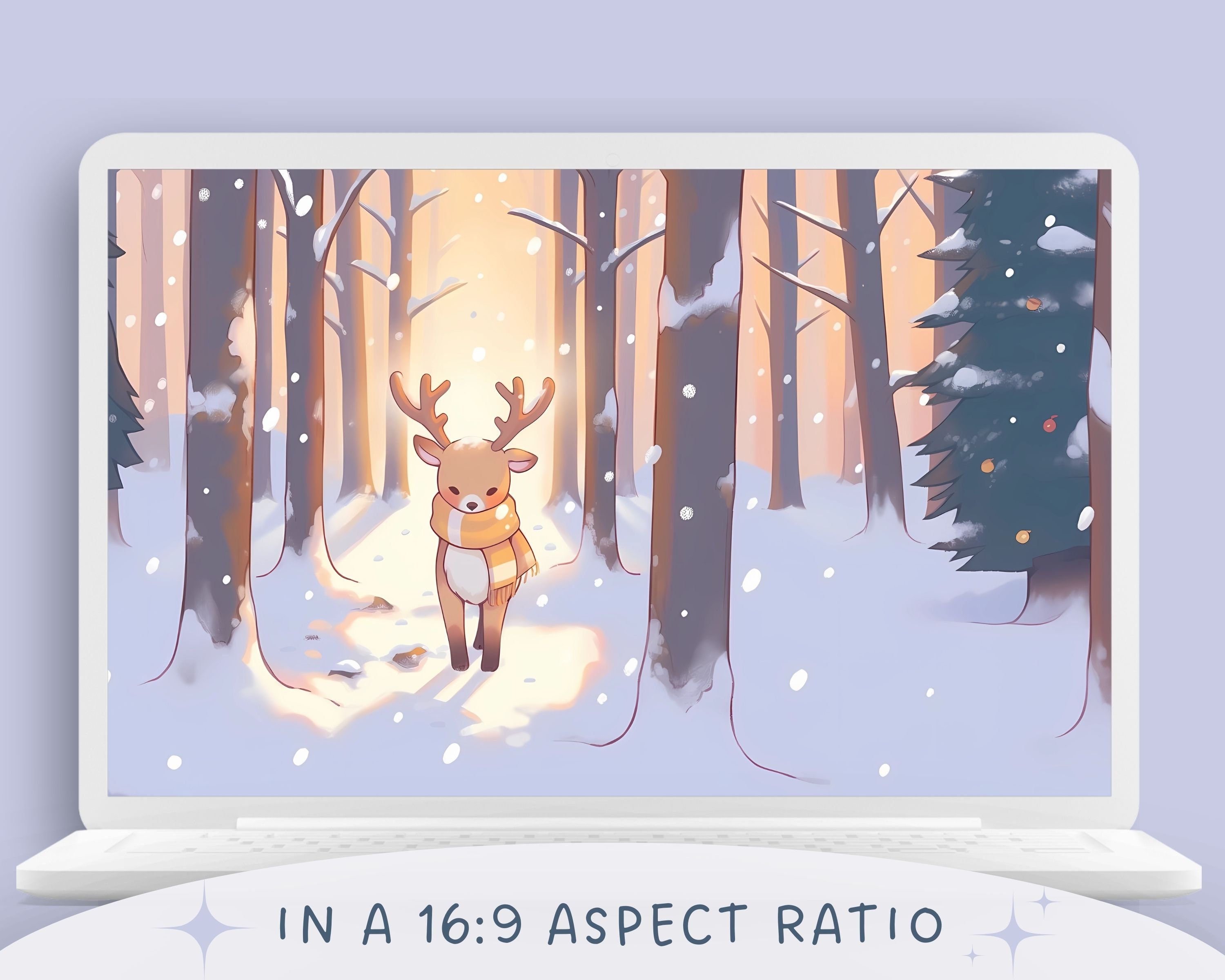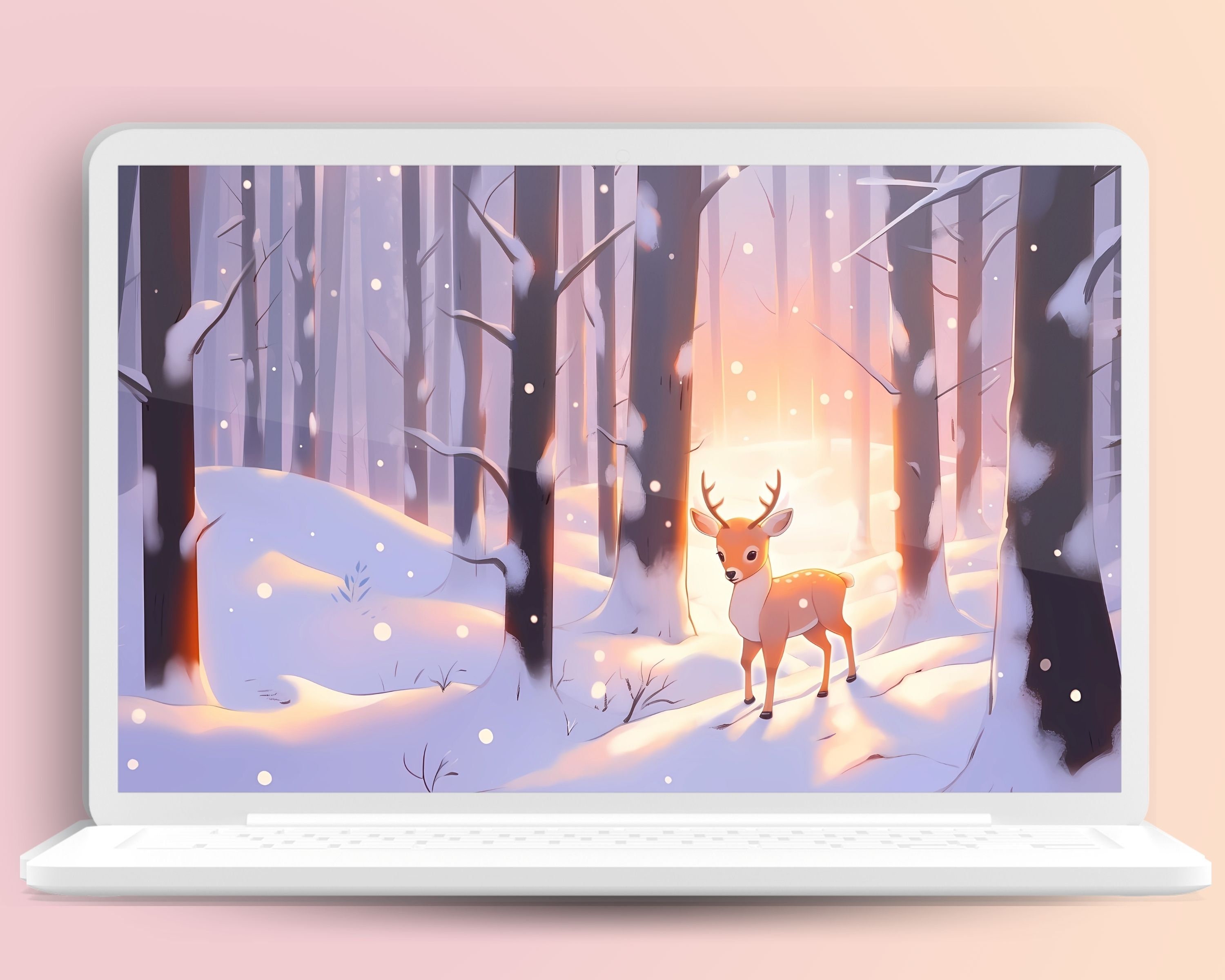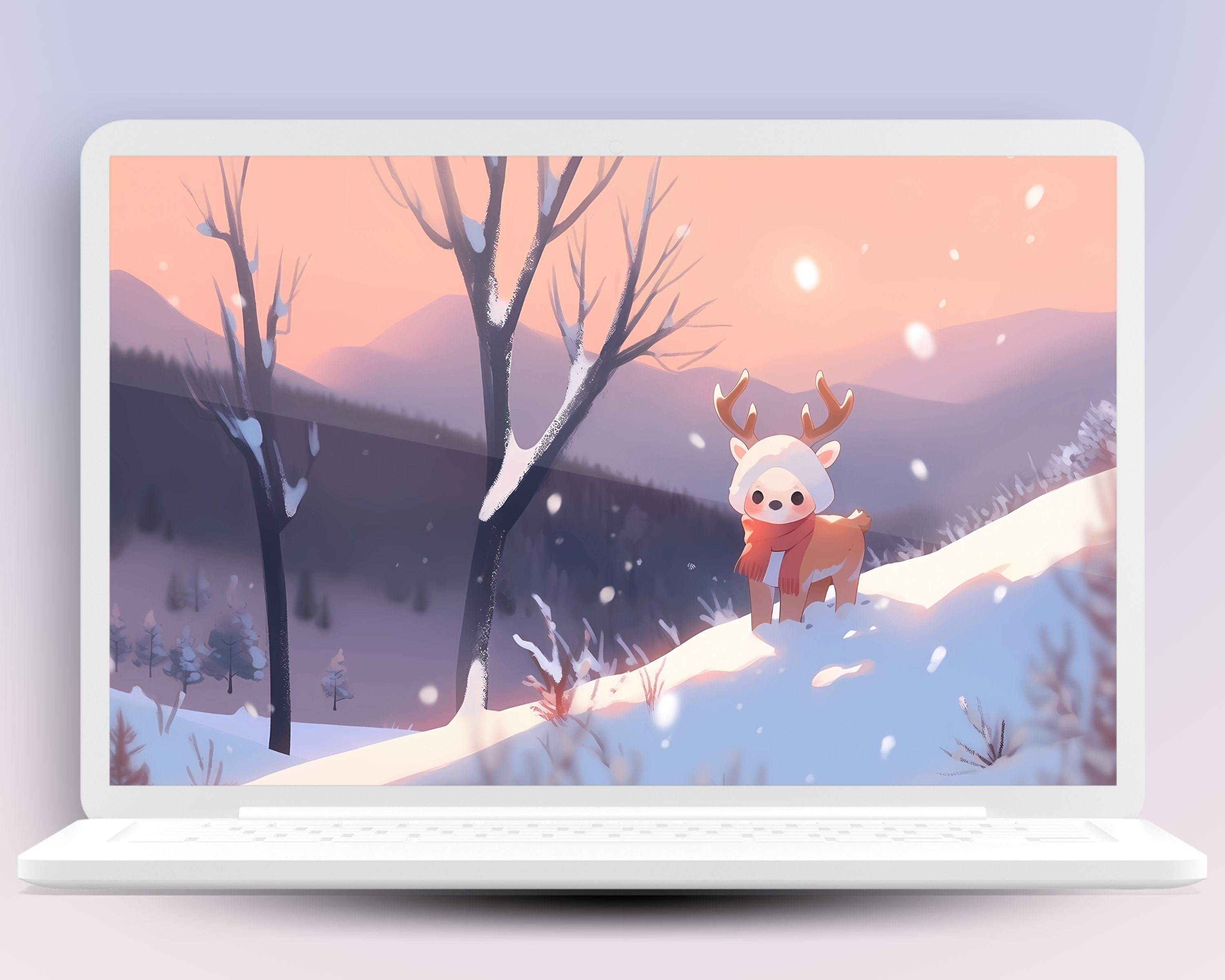 Kawaii Deer Winter Wallpaper: Cozy Christmas Screensaver (Digital Download)