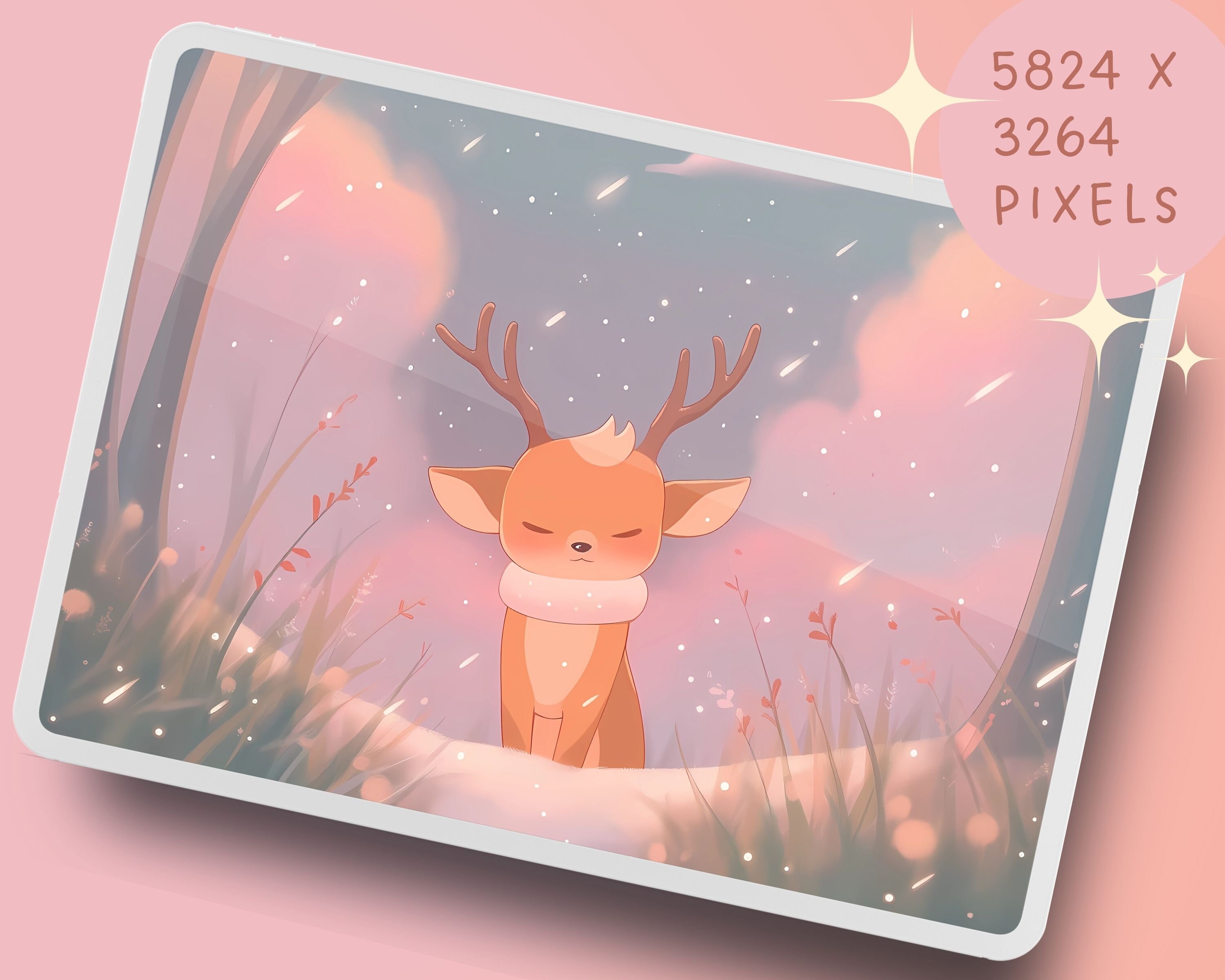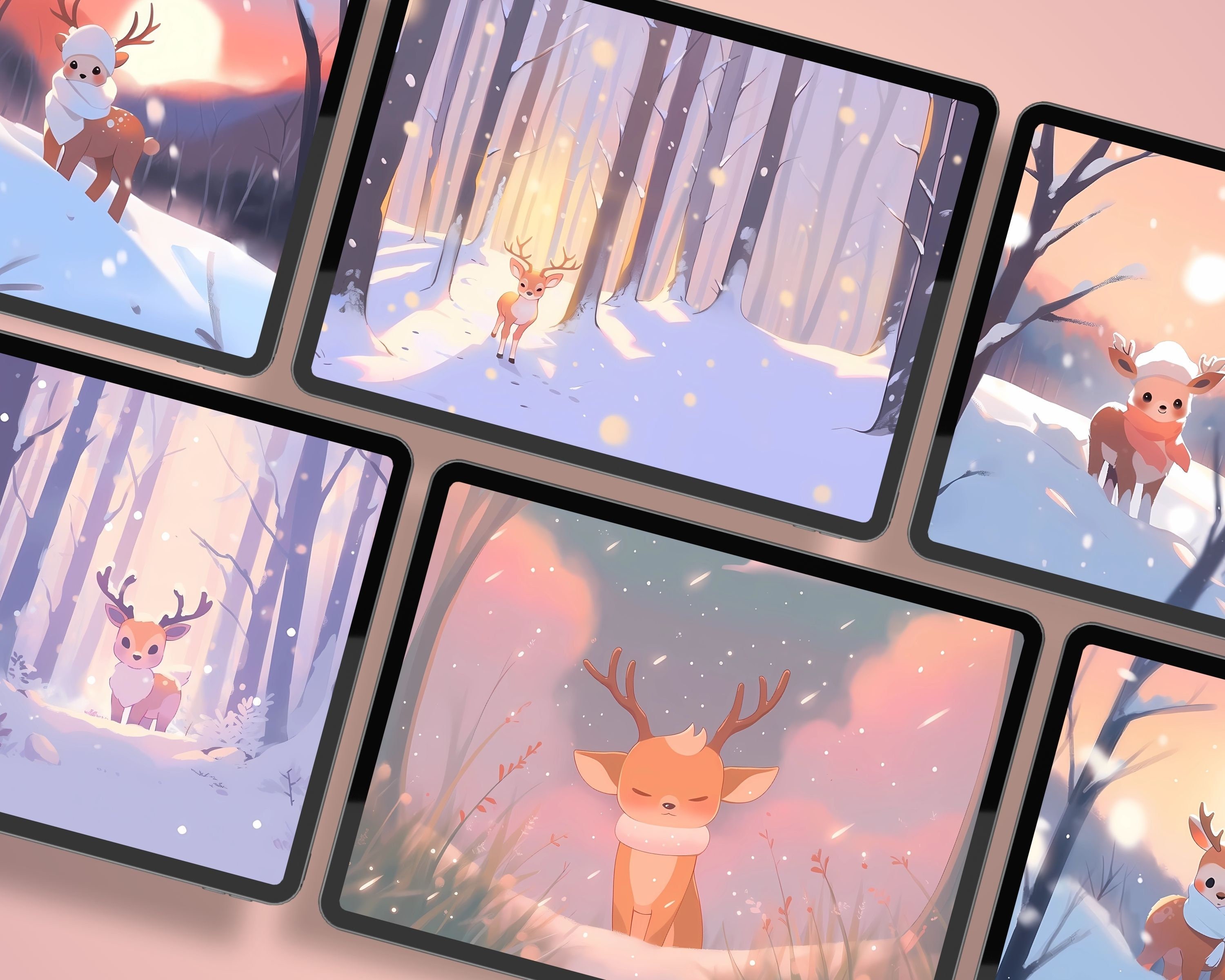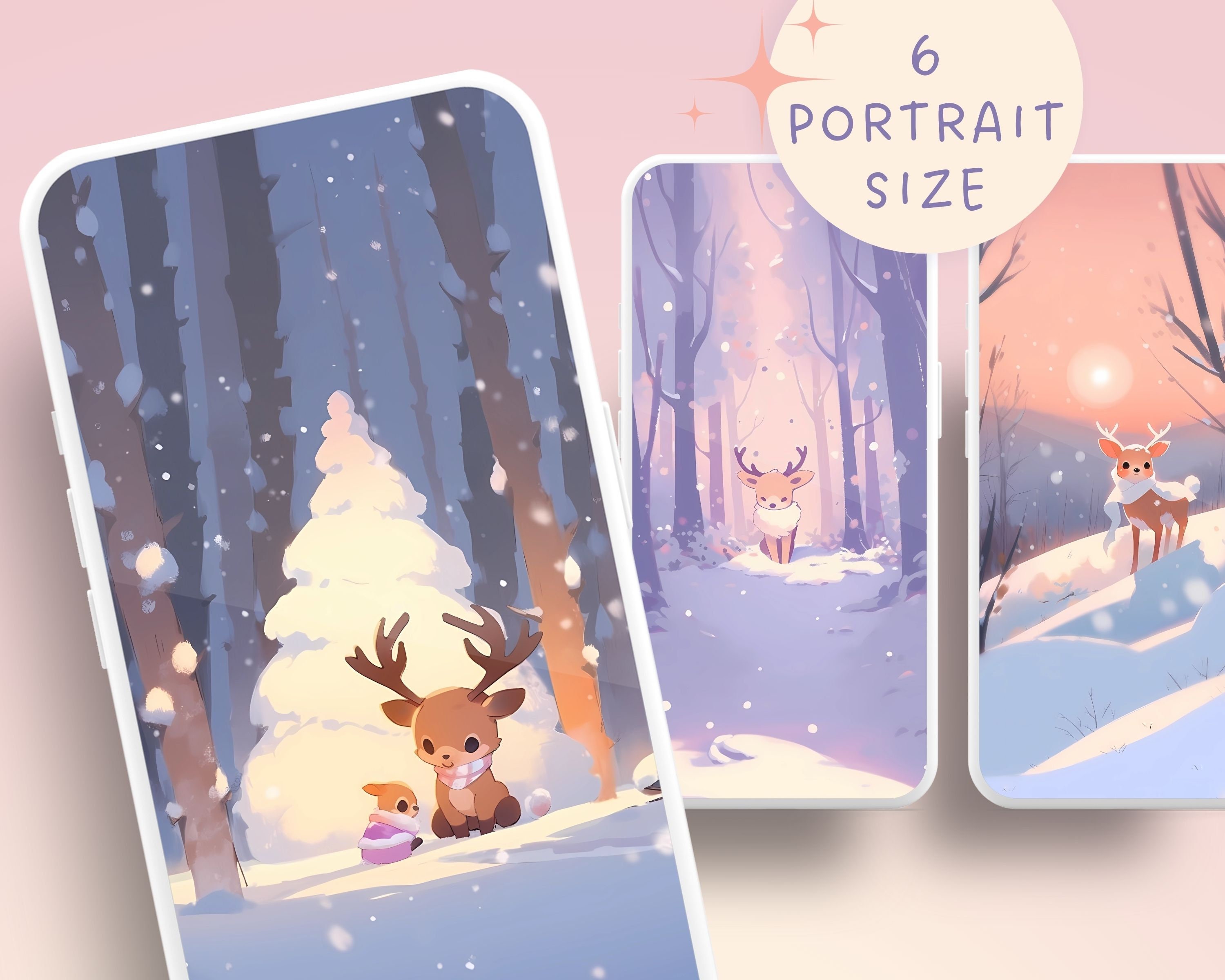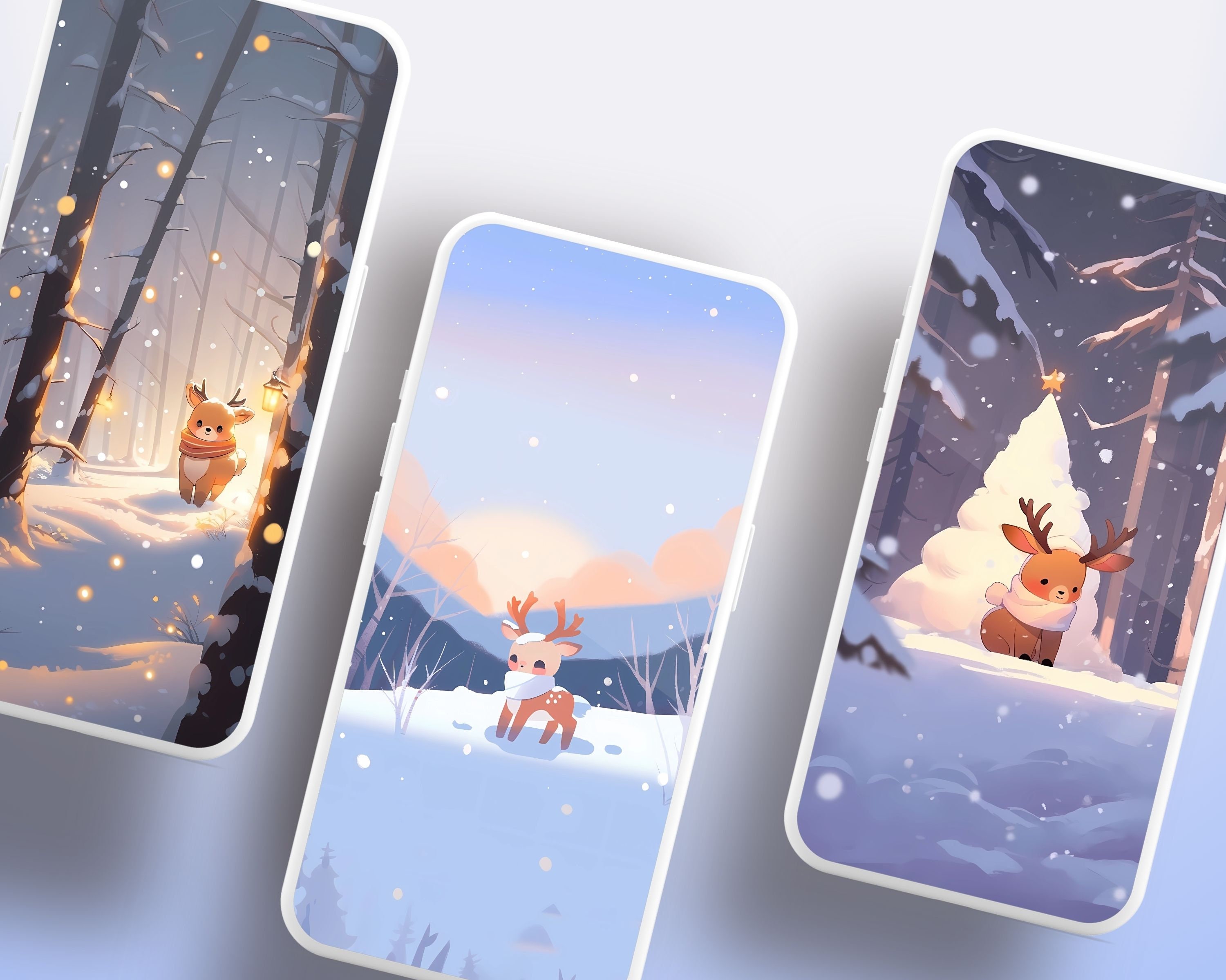 Kawaii Deer Winter Wallpaper: Cozy Christmas Screensaver (Digital Download)