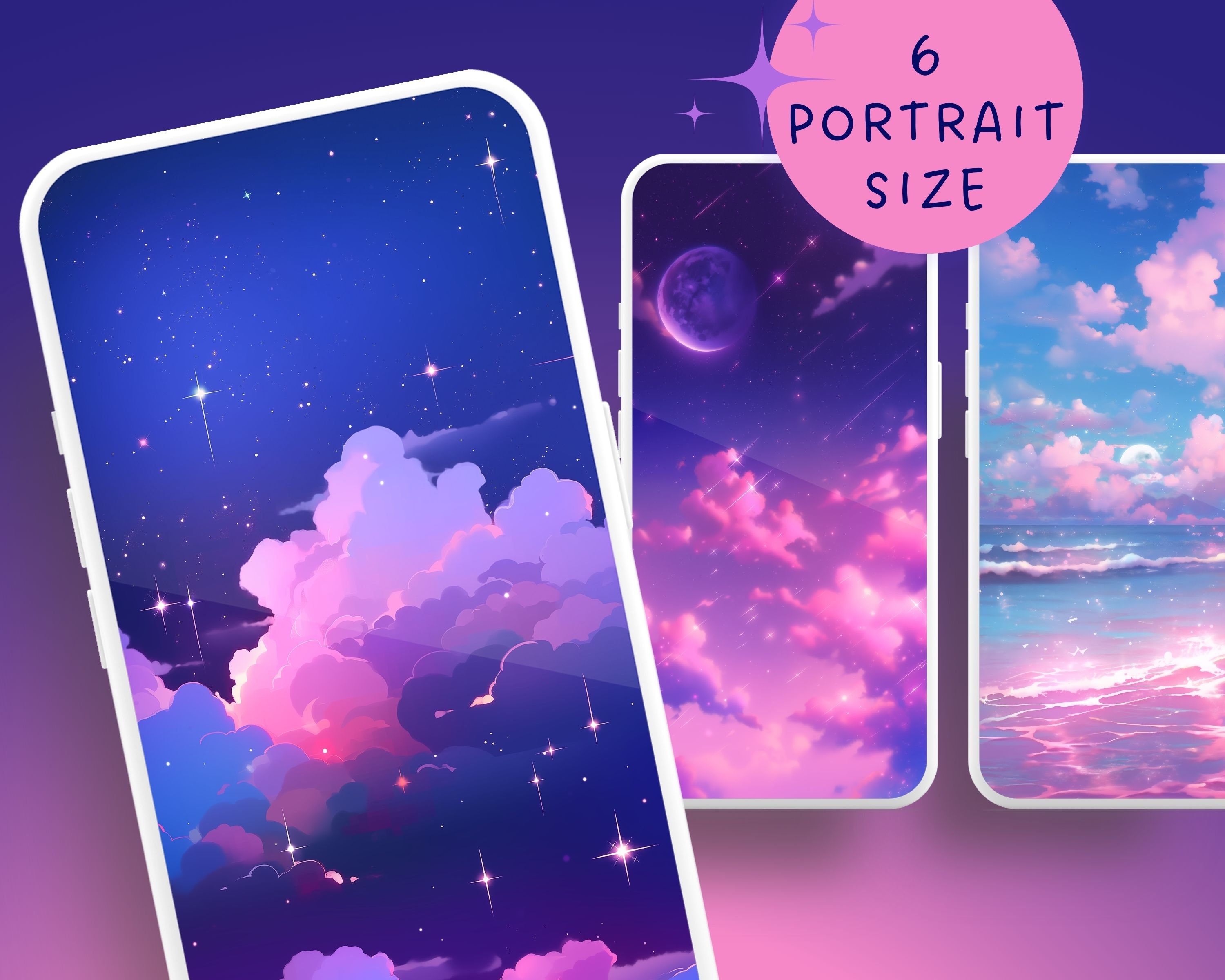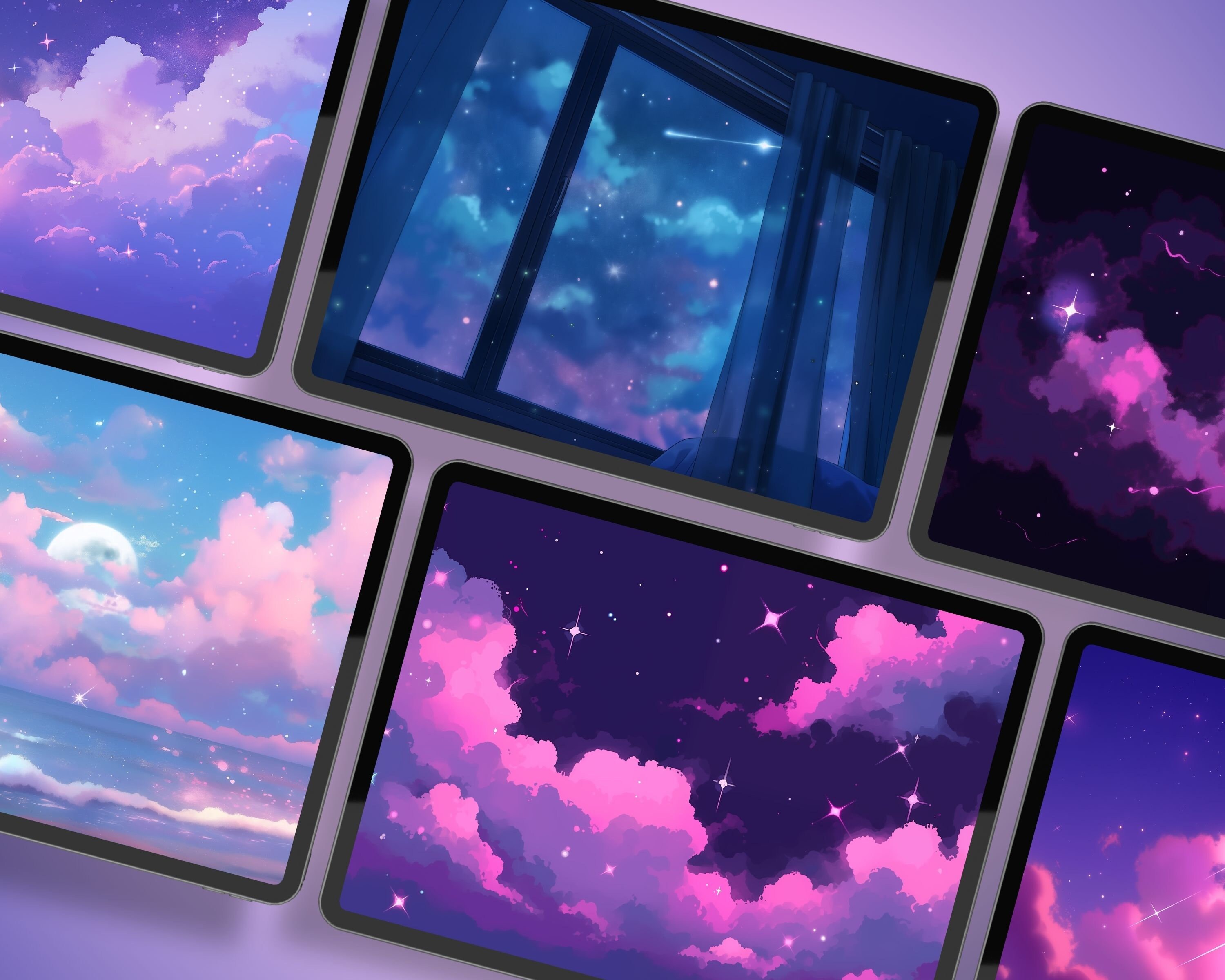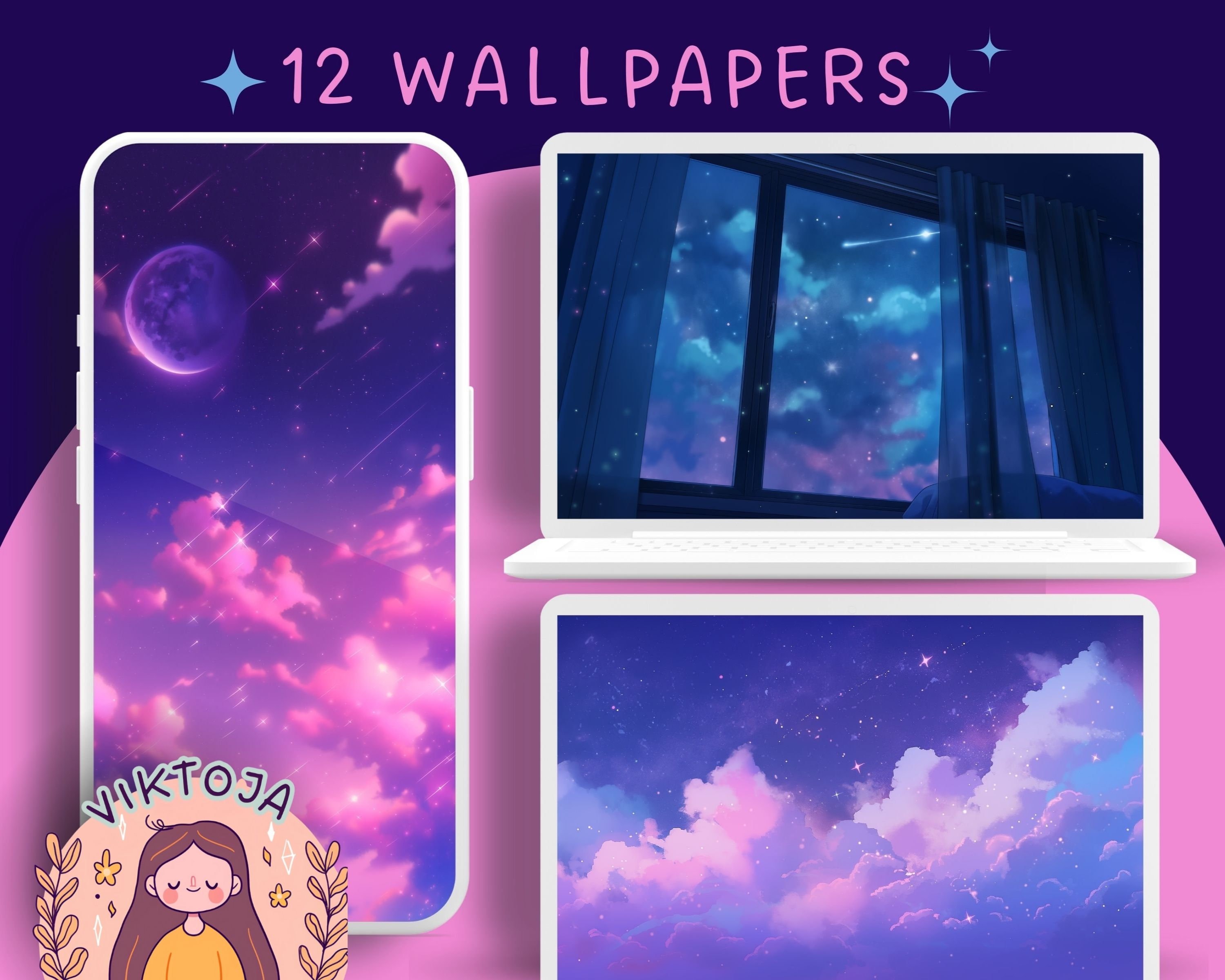 Lofi Dark Sky Wallpaper Set: Kawaii Galaxy Phone & Desktop (Digital Download)