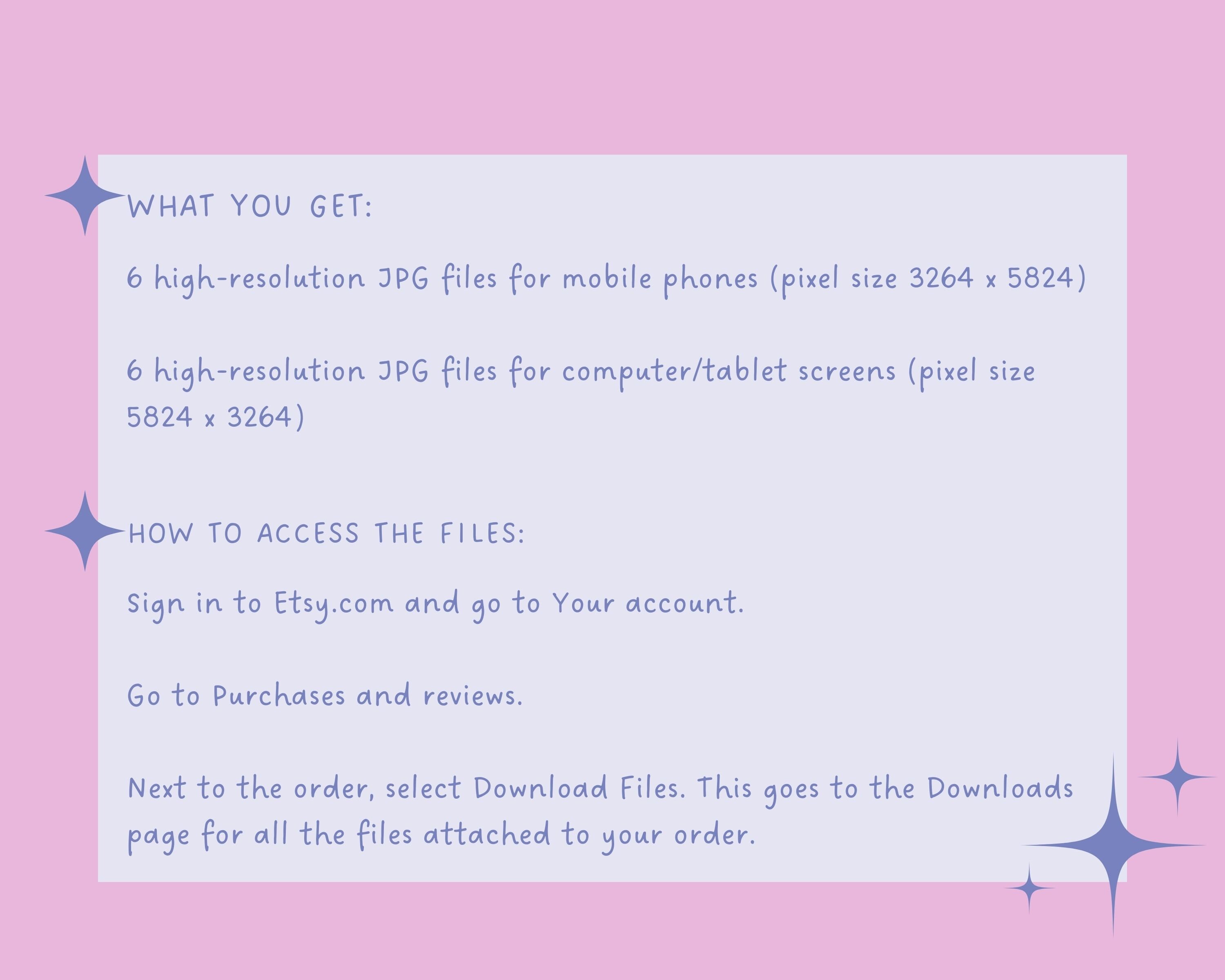 After purchase, you'll receive a PDF file with a link to download your wallpapers.