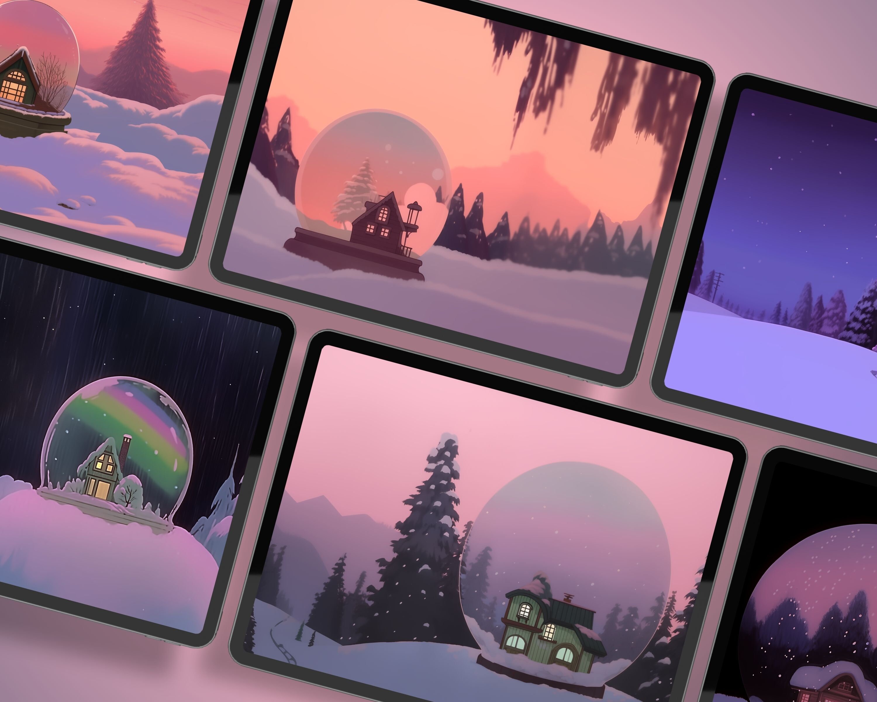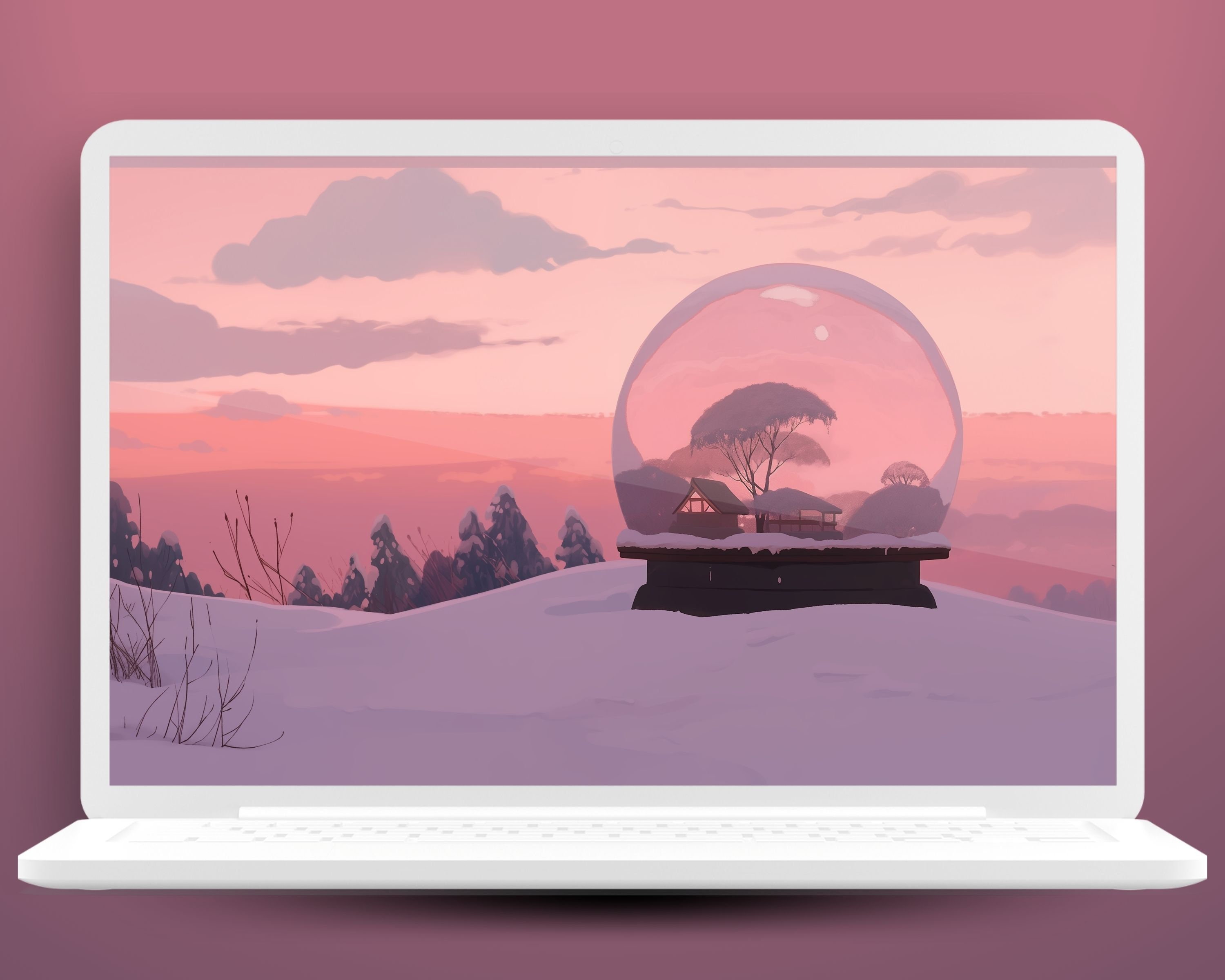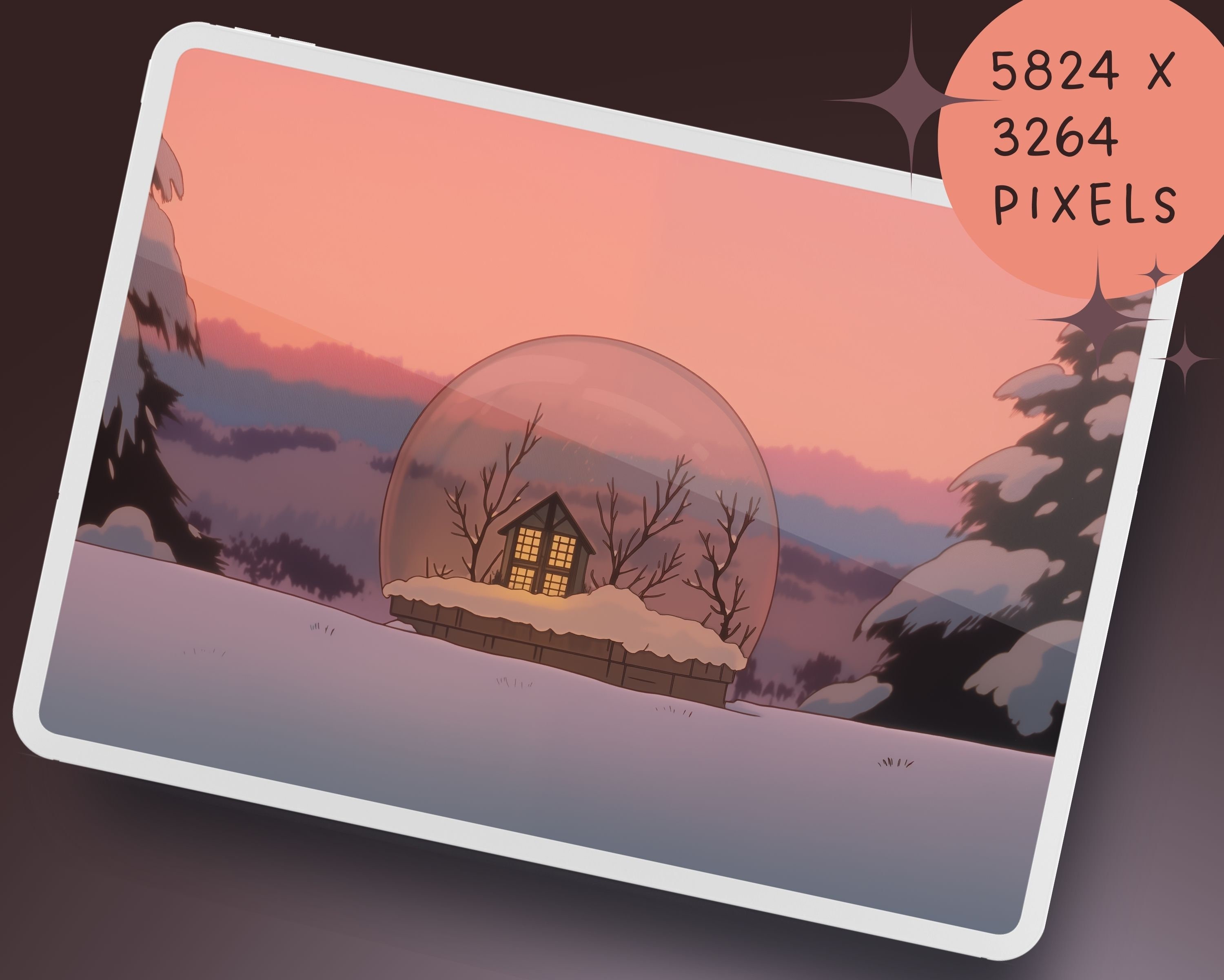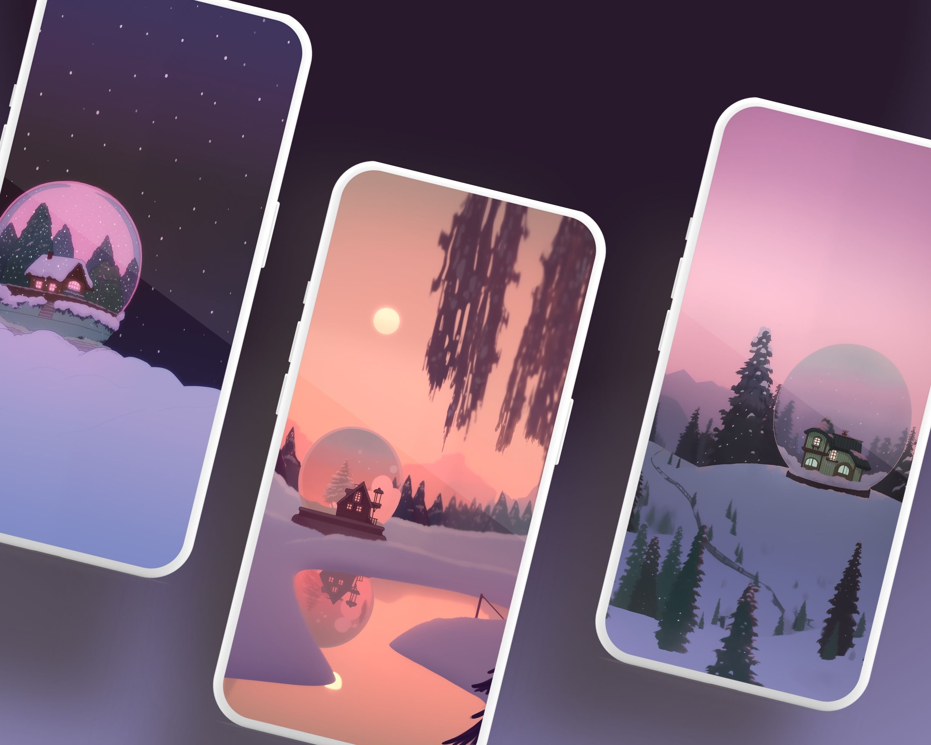 Snow Globe Winter Wallpaper, Holiday Theme Phone Tablet Backgrounds (Digital Download