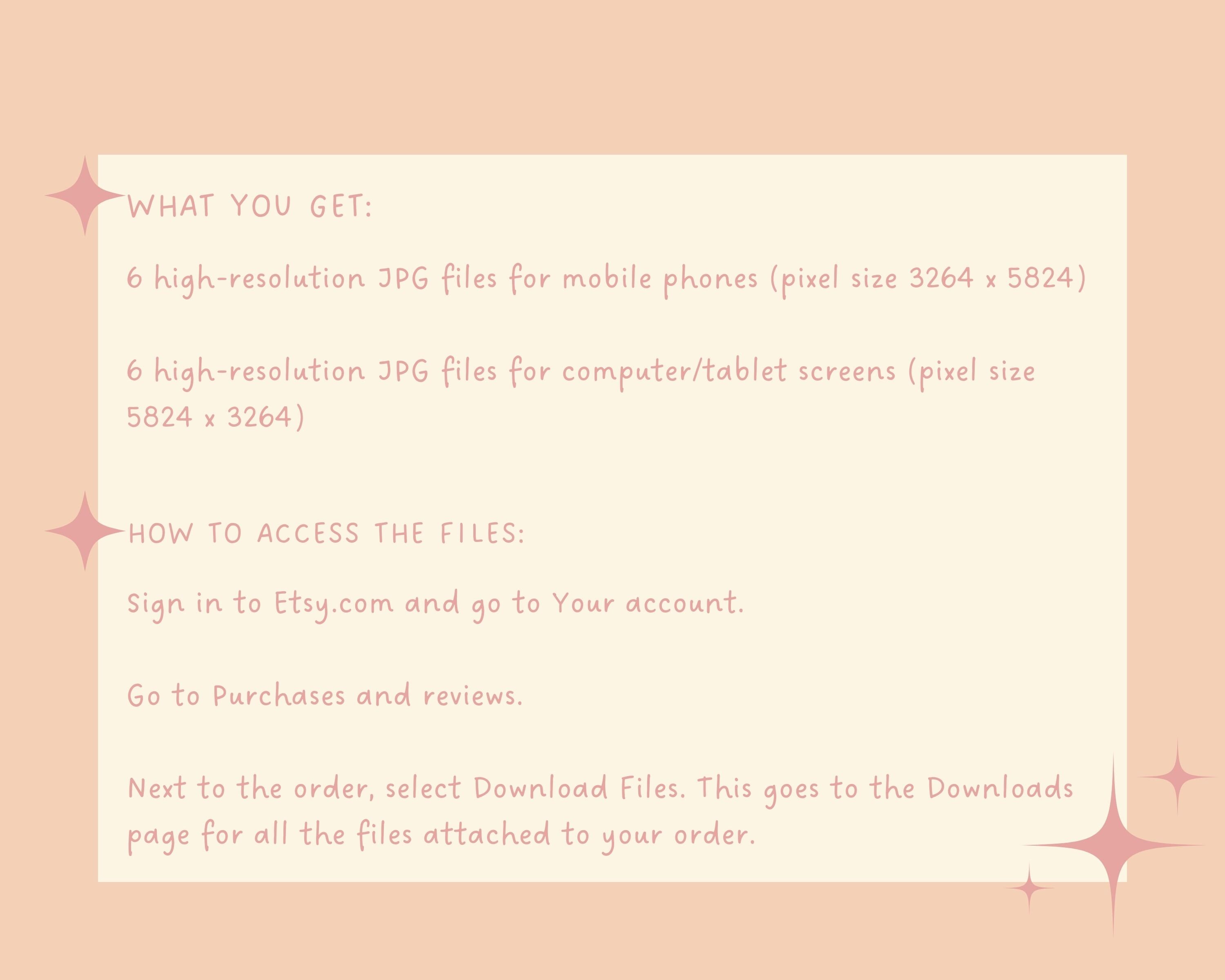 After purchase, you'll receive a PDF file with a link to download your wallpapers.