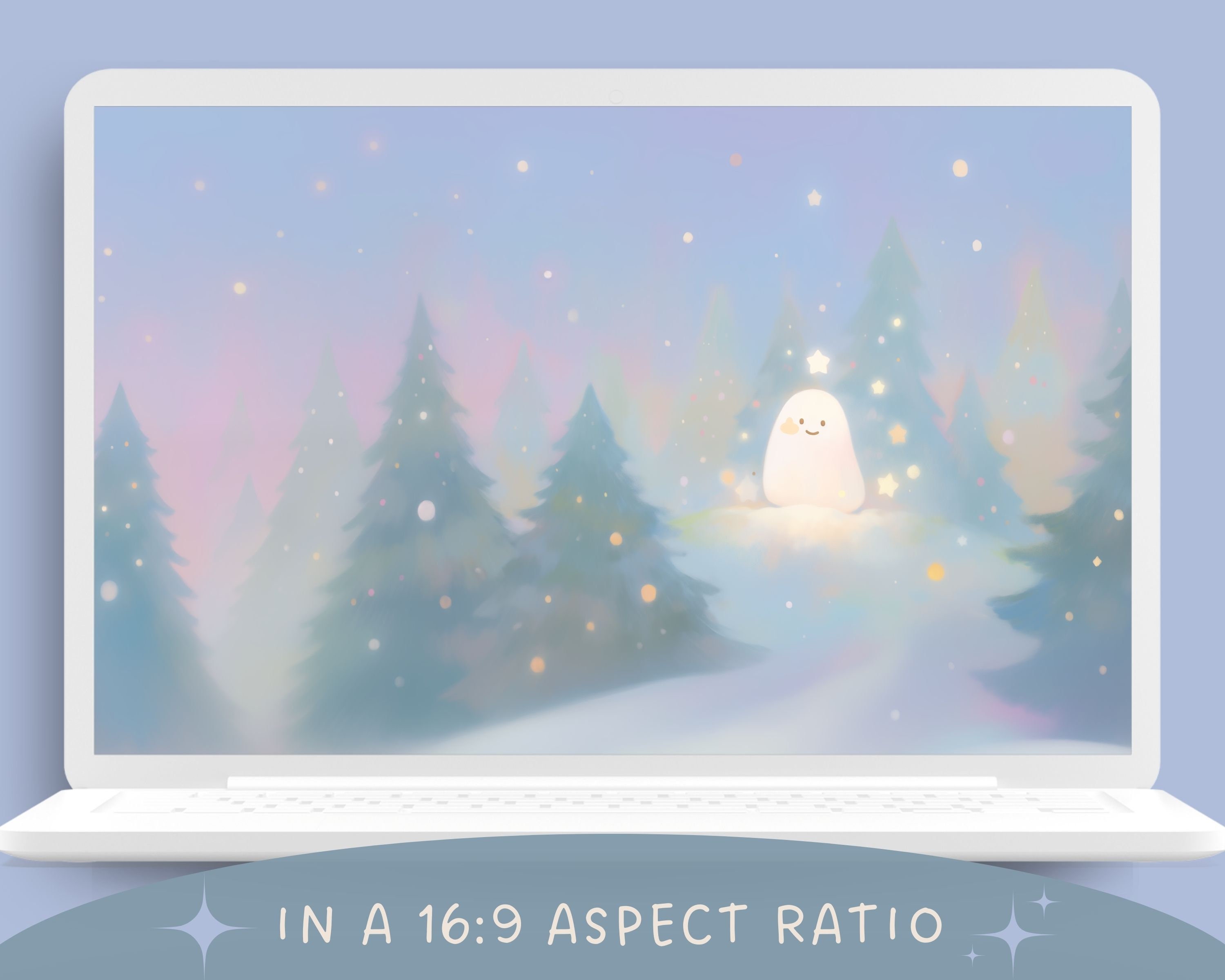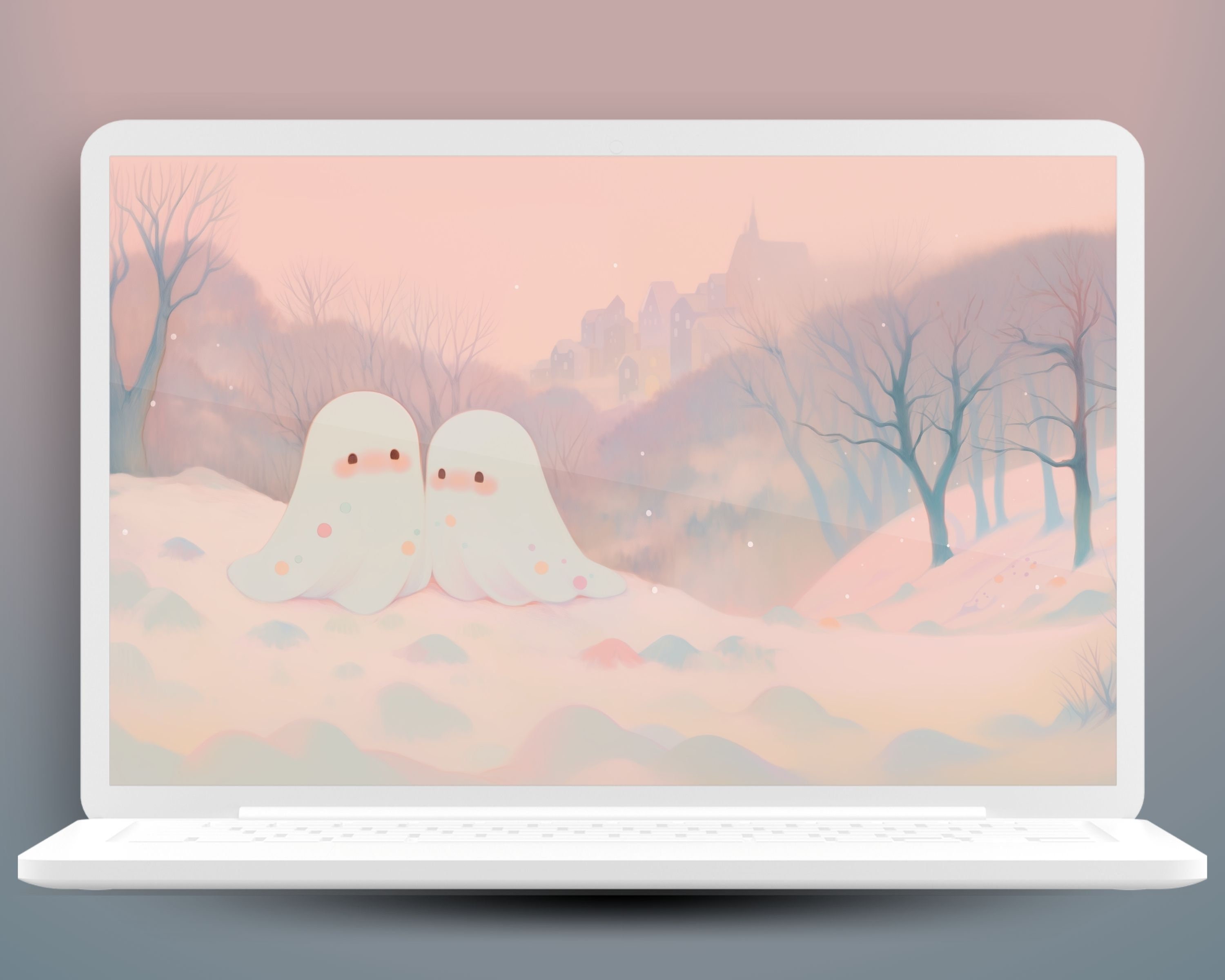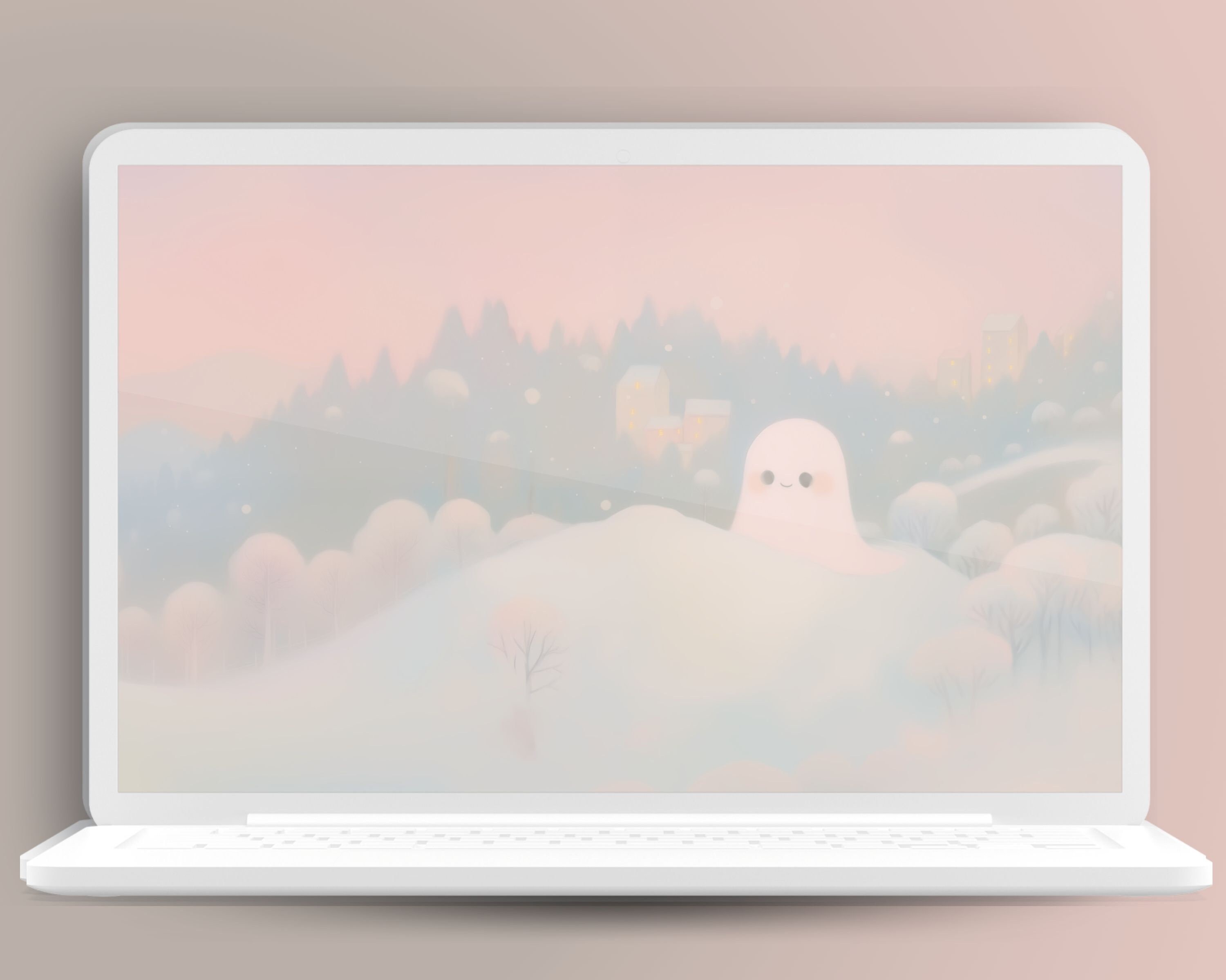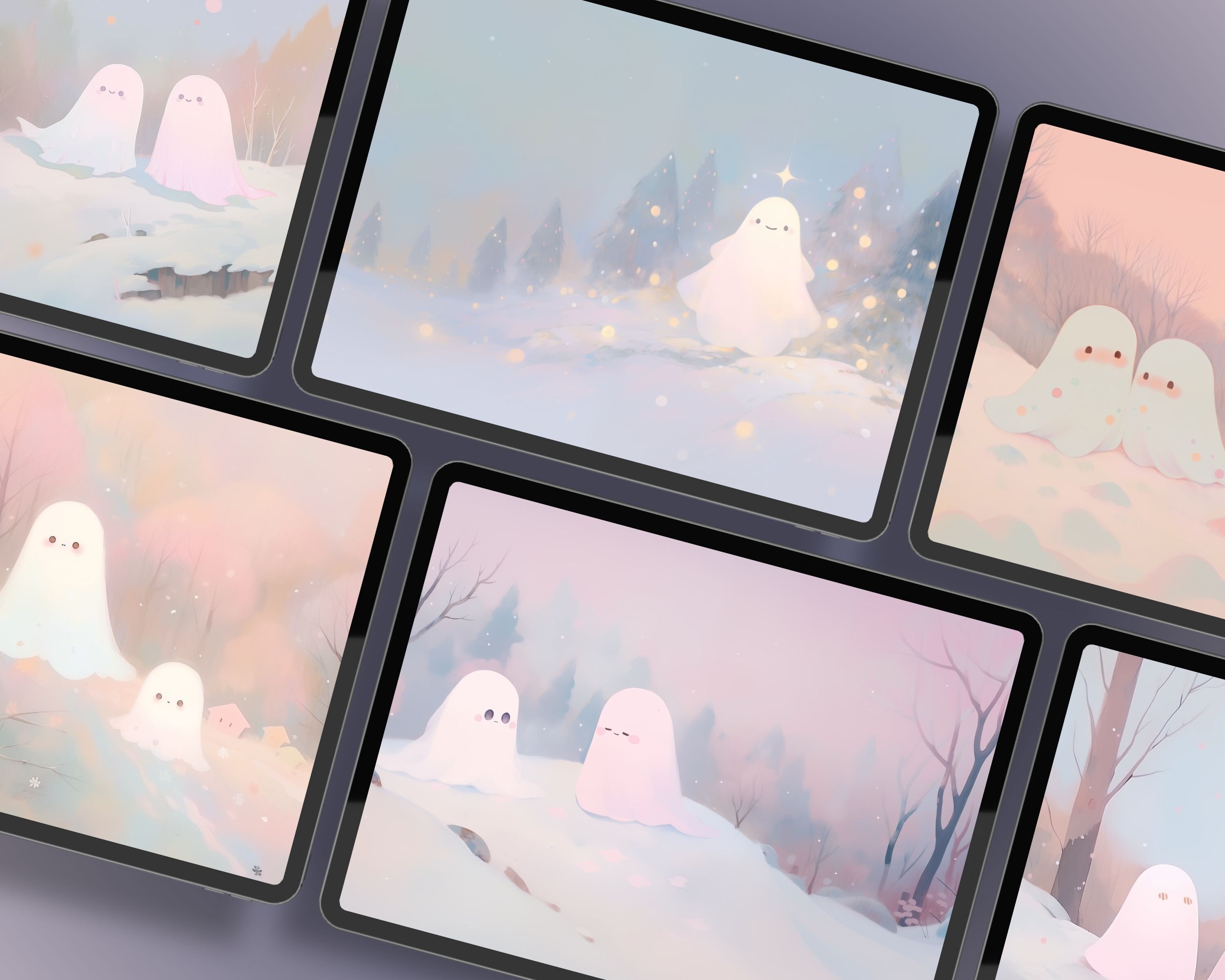 Winter Ghosts Wallpaper Set: Lofi Holiday Desktop Backgrounds (Digital Download)
