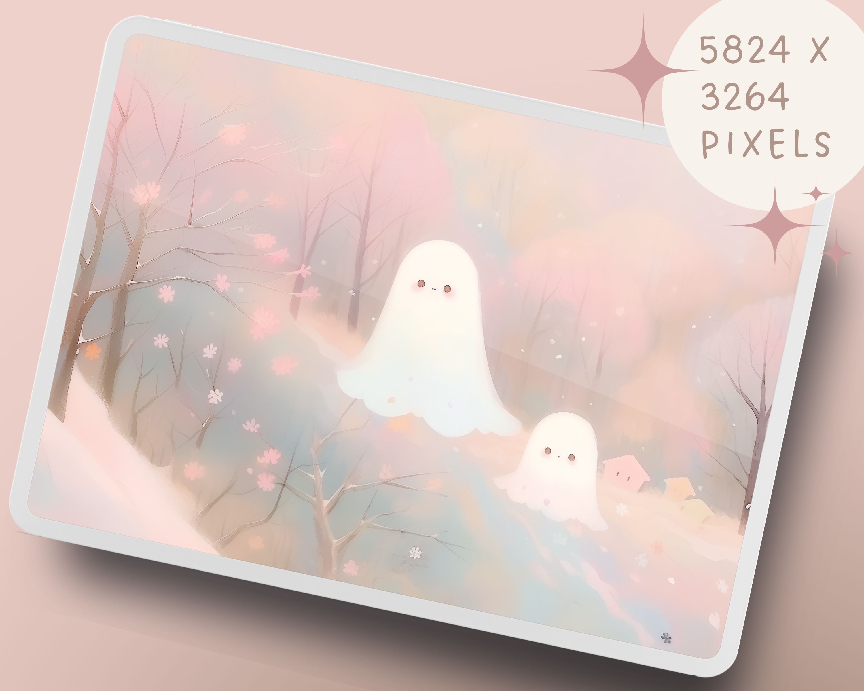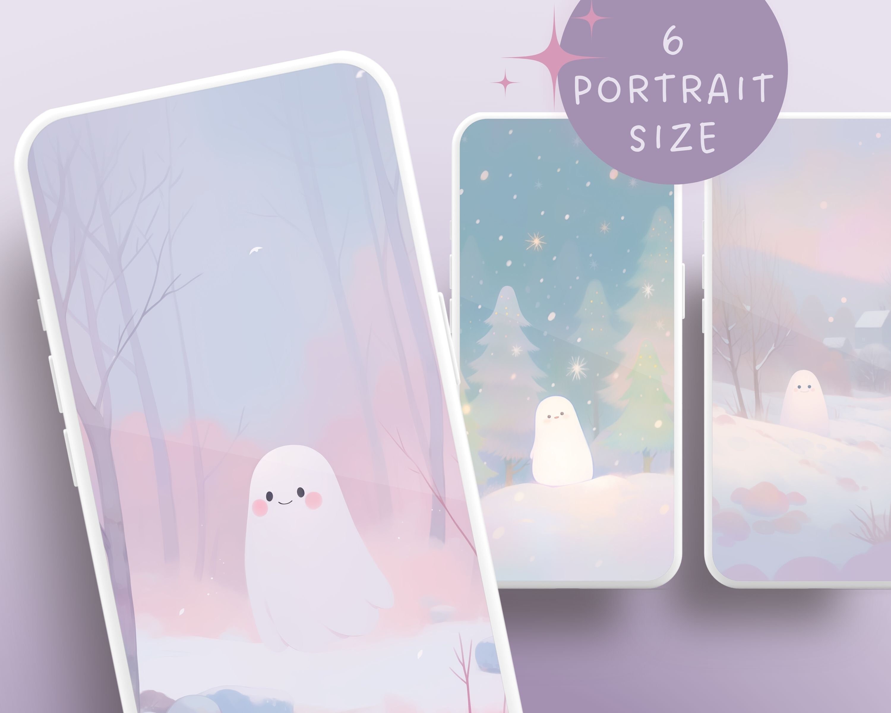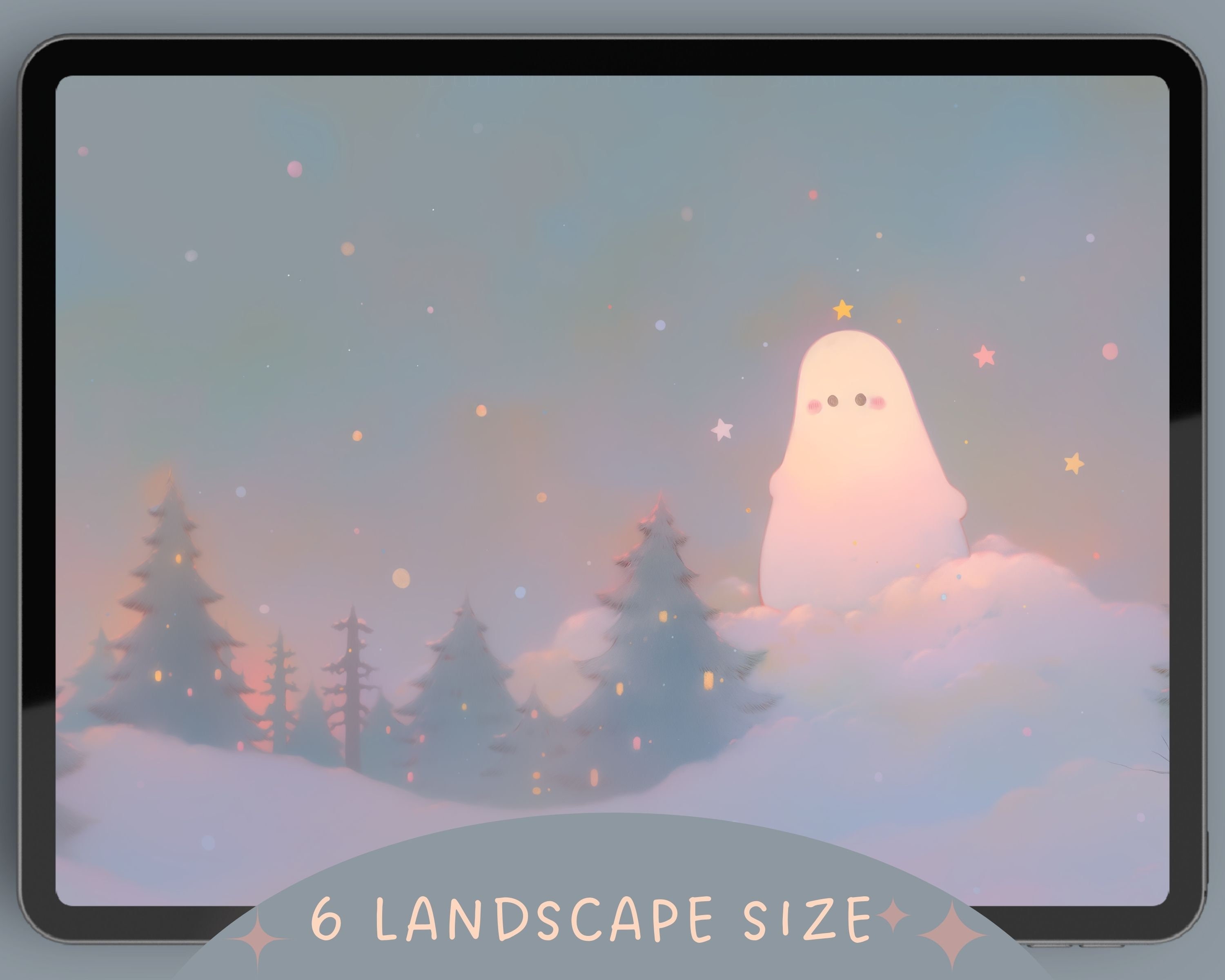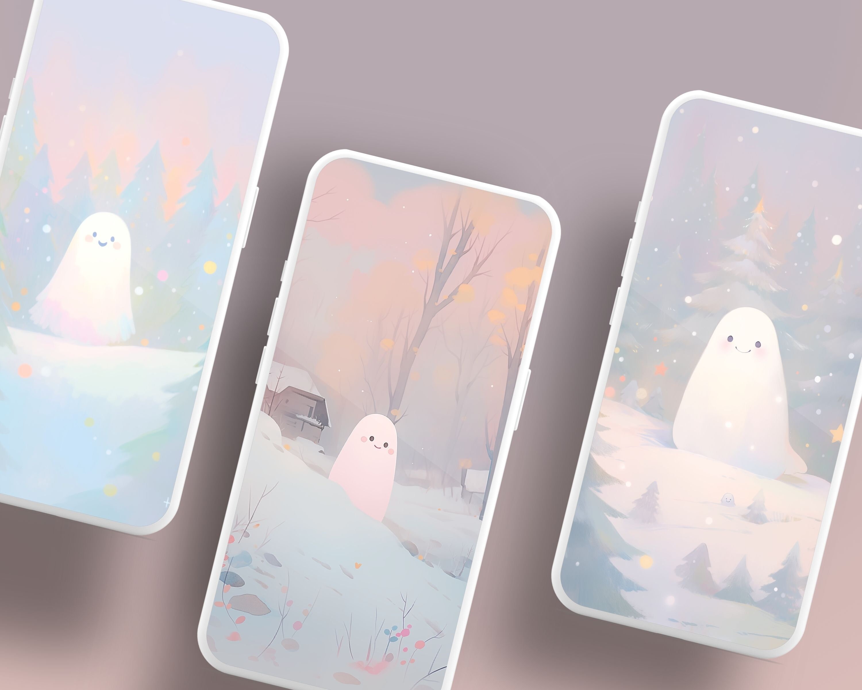 Winter Ghosts Wallpaper Set: Lofi Holiday Desktop Backgrounds (Digital Download)