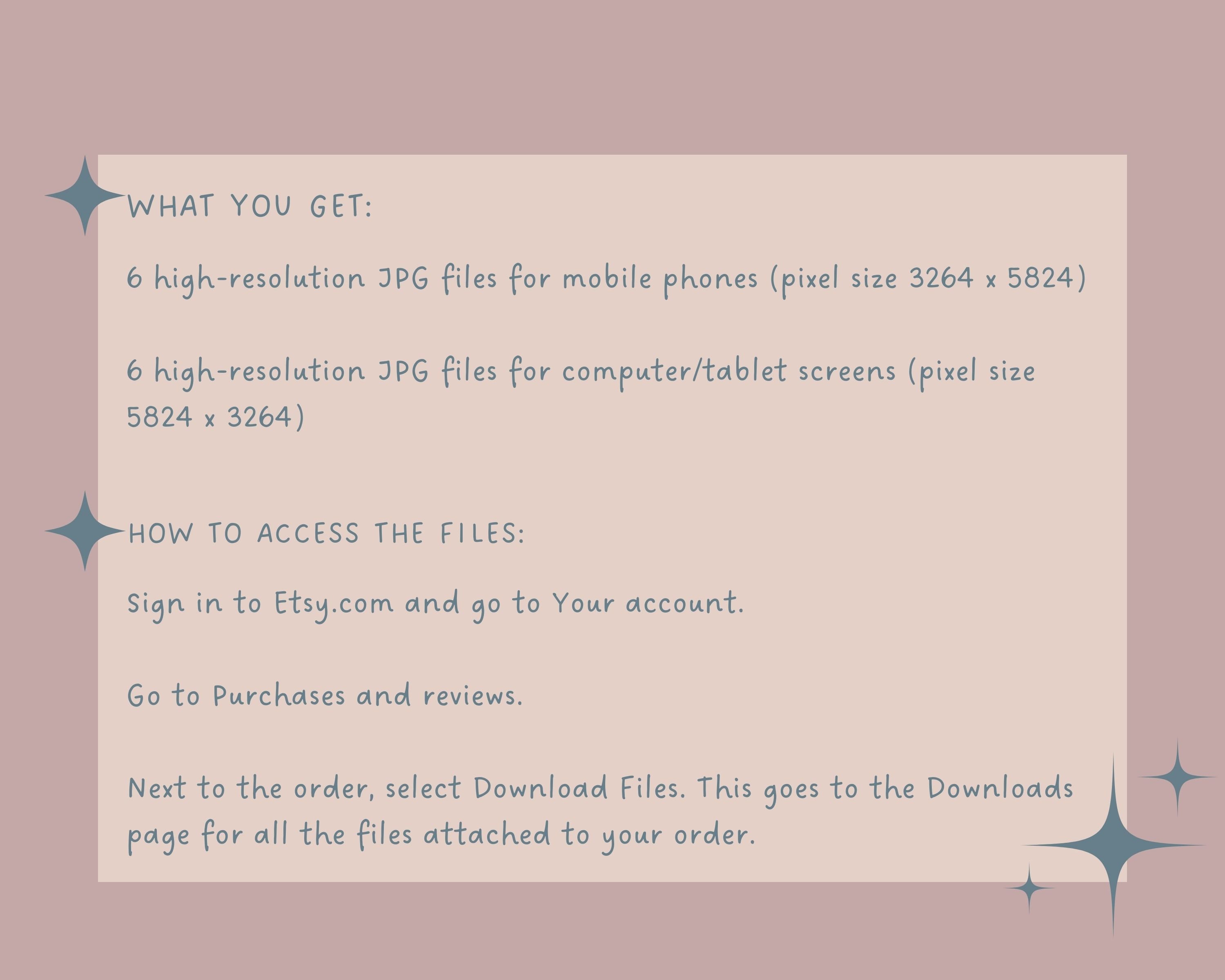 After purchase, you'll receive a PDF file with a link to download your wallpapers.