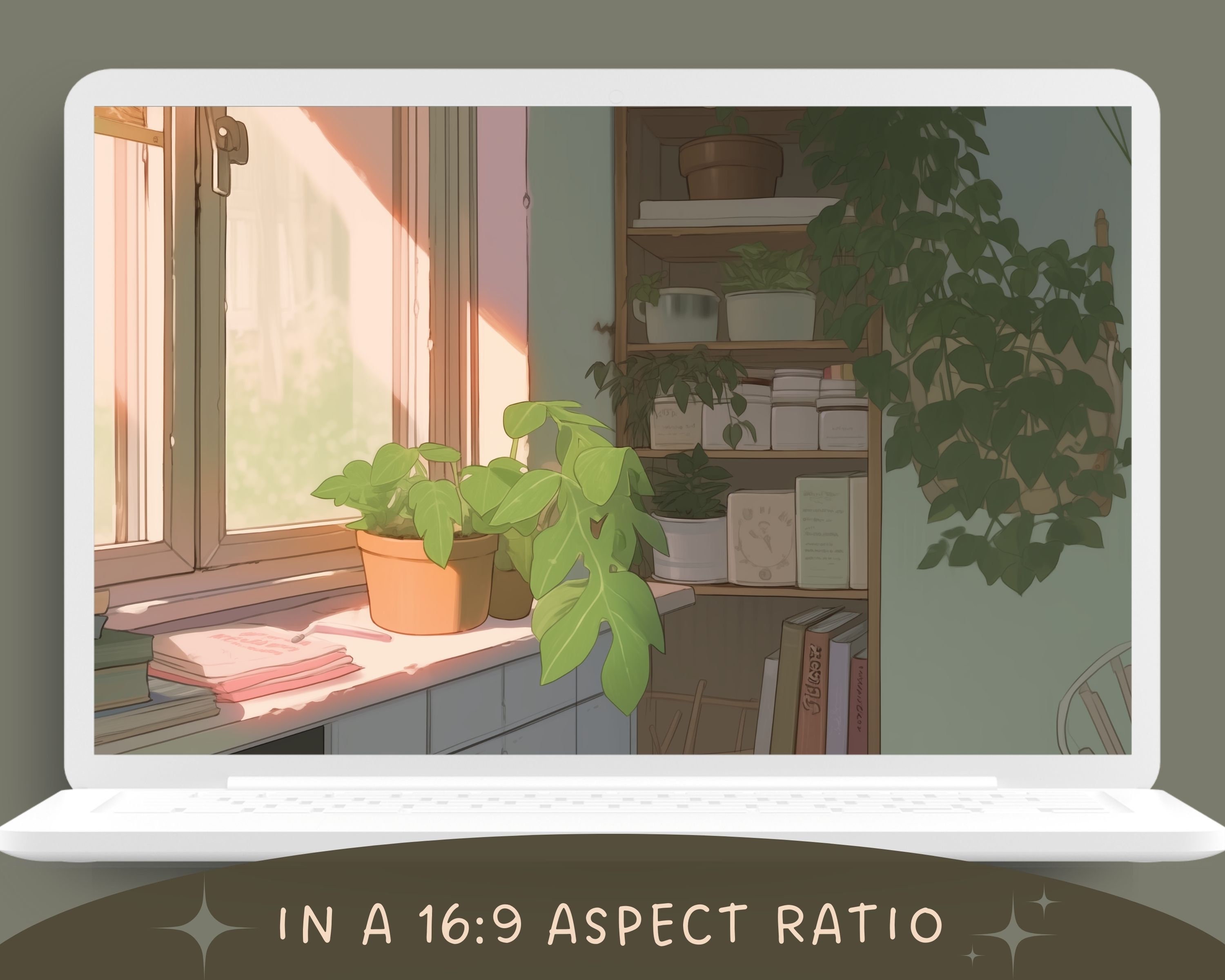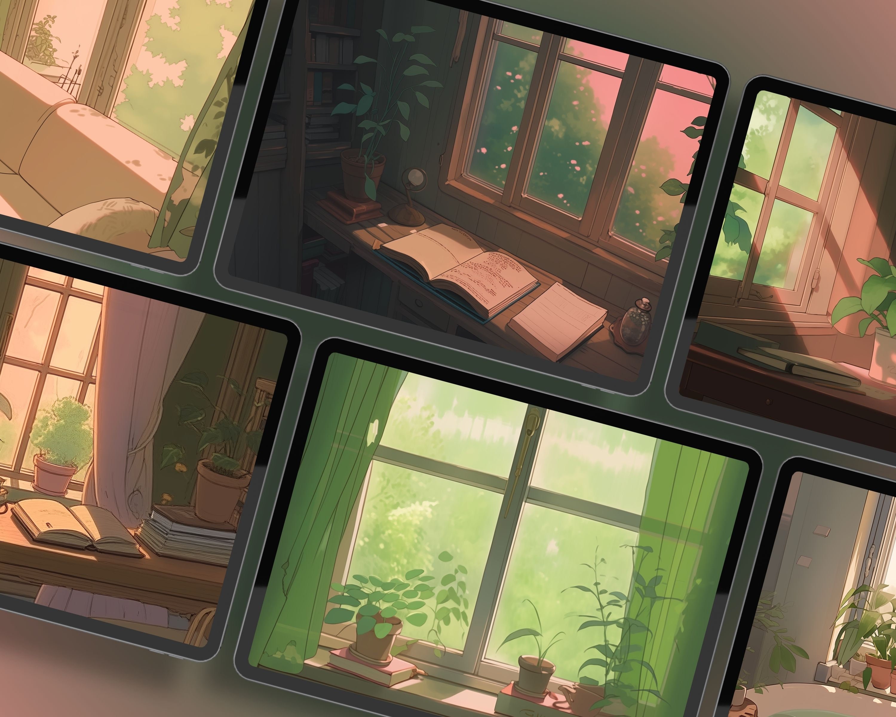 Bring a touch of magic to your devices with this set of 12 Studio Ghibli-inspired wallpapers! Featuring cosy interriors with plants and books, these high-res JPG files will fit perfectly on your phone or computer/tablet screens.