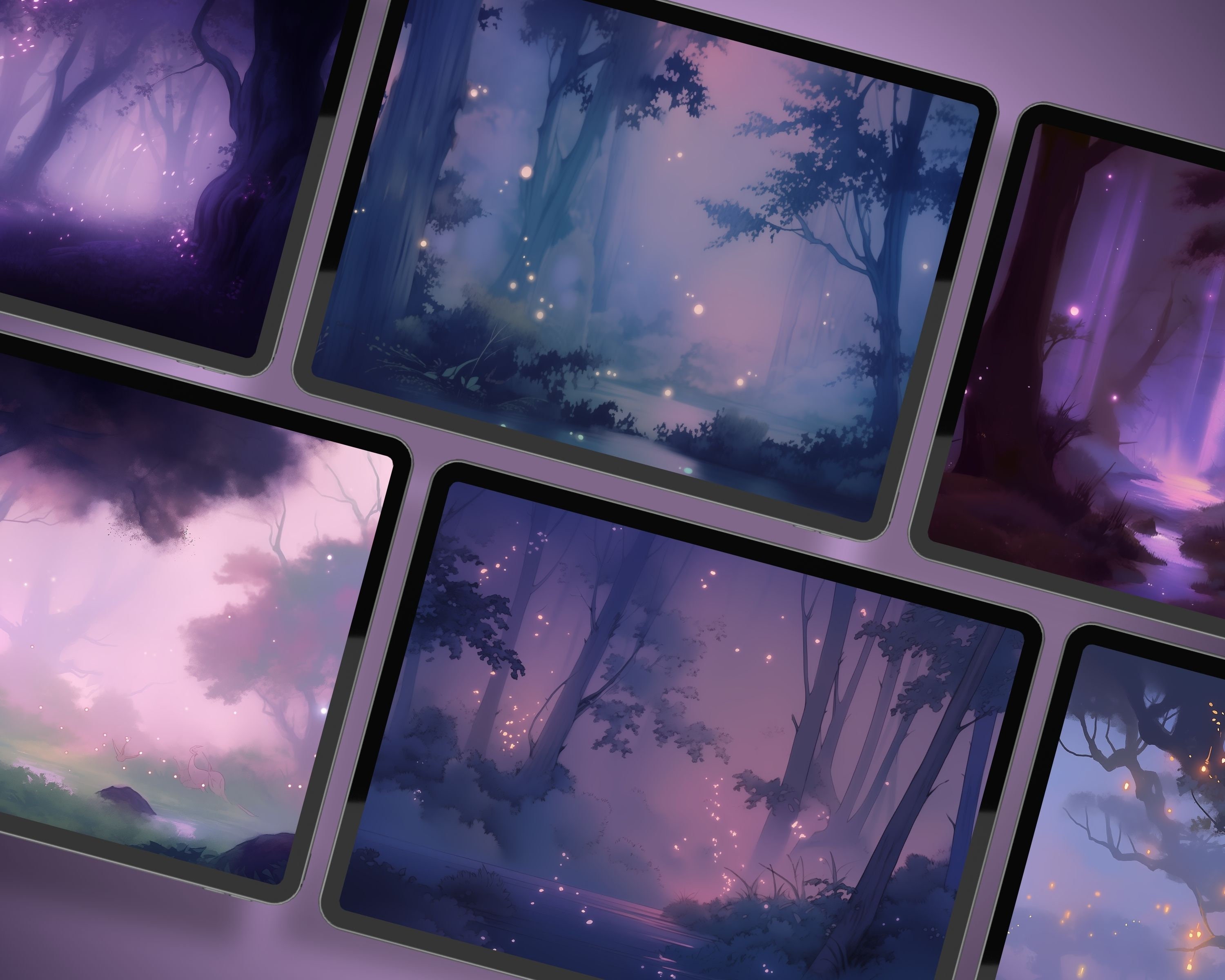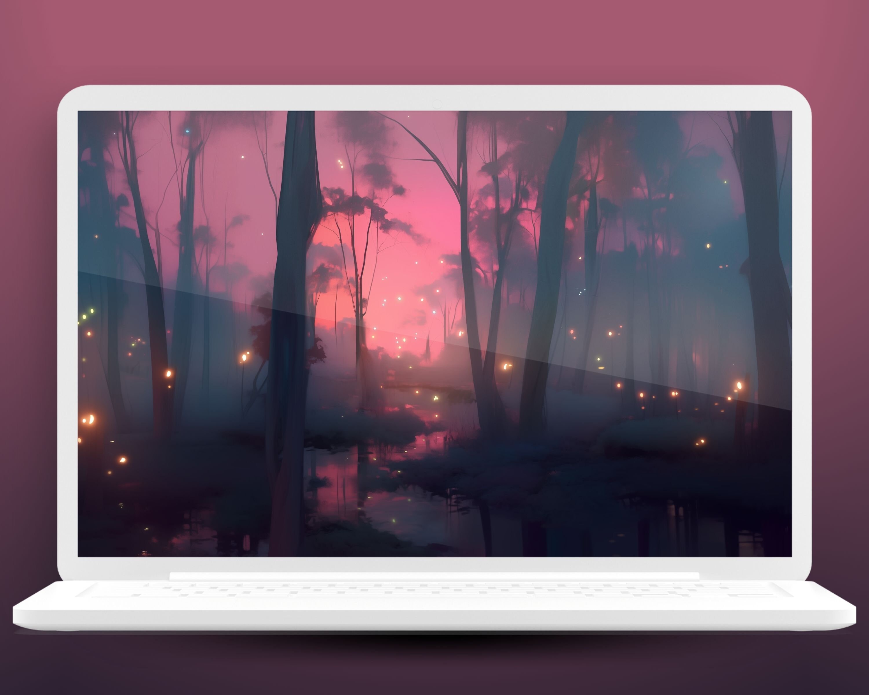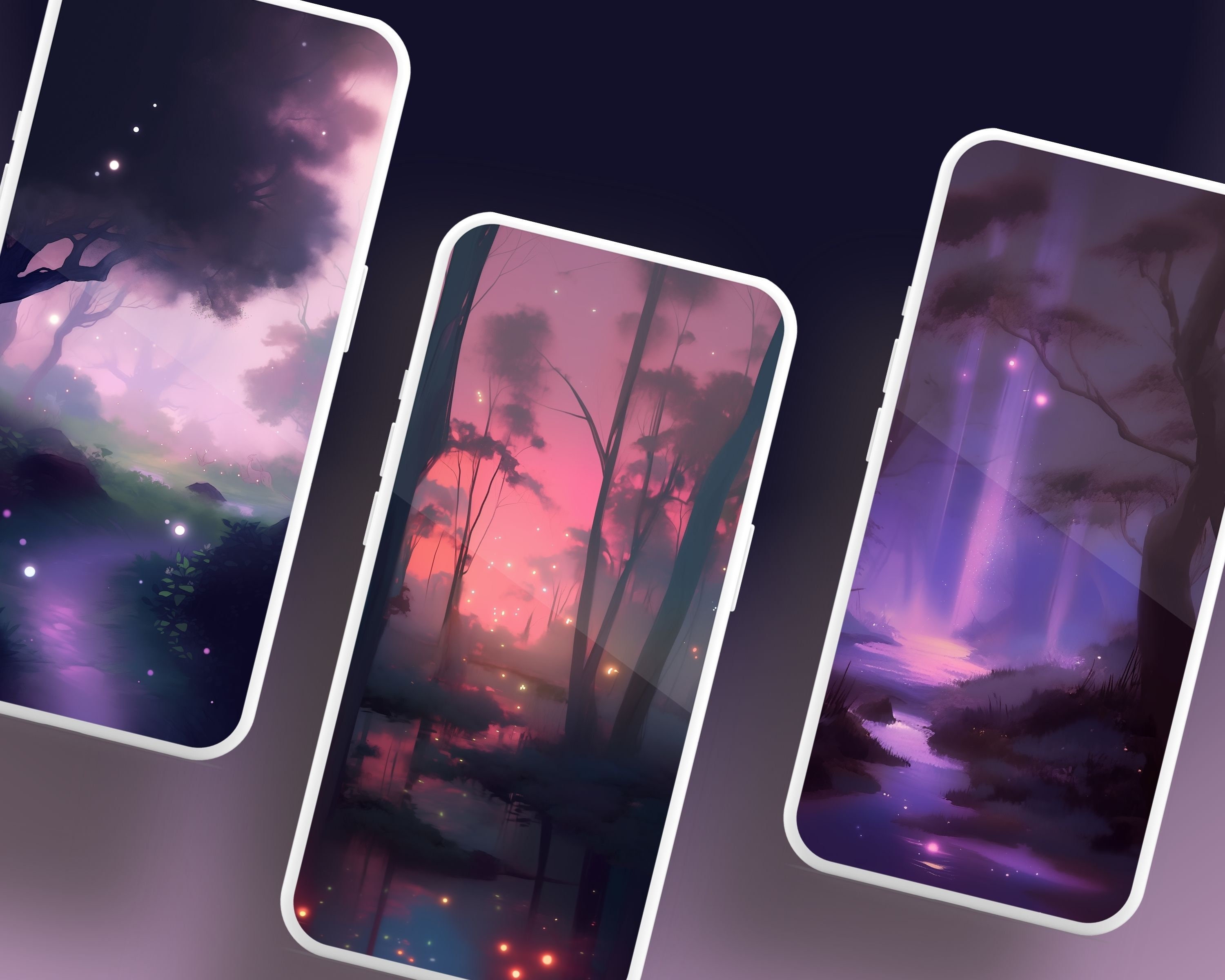Dreamy Pastel Forest Wallpaper Set: Phone & Desktop Backgrounds (Digital Download)