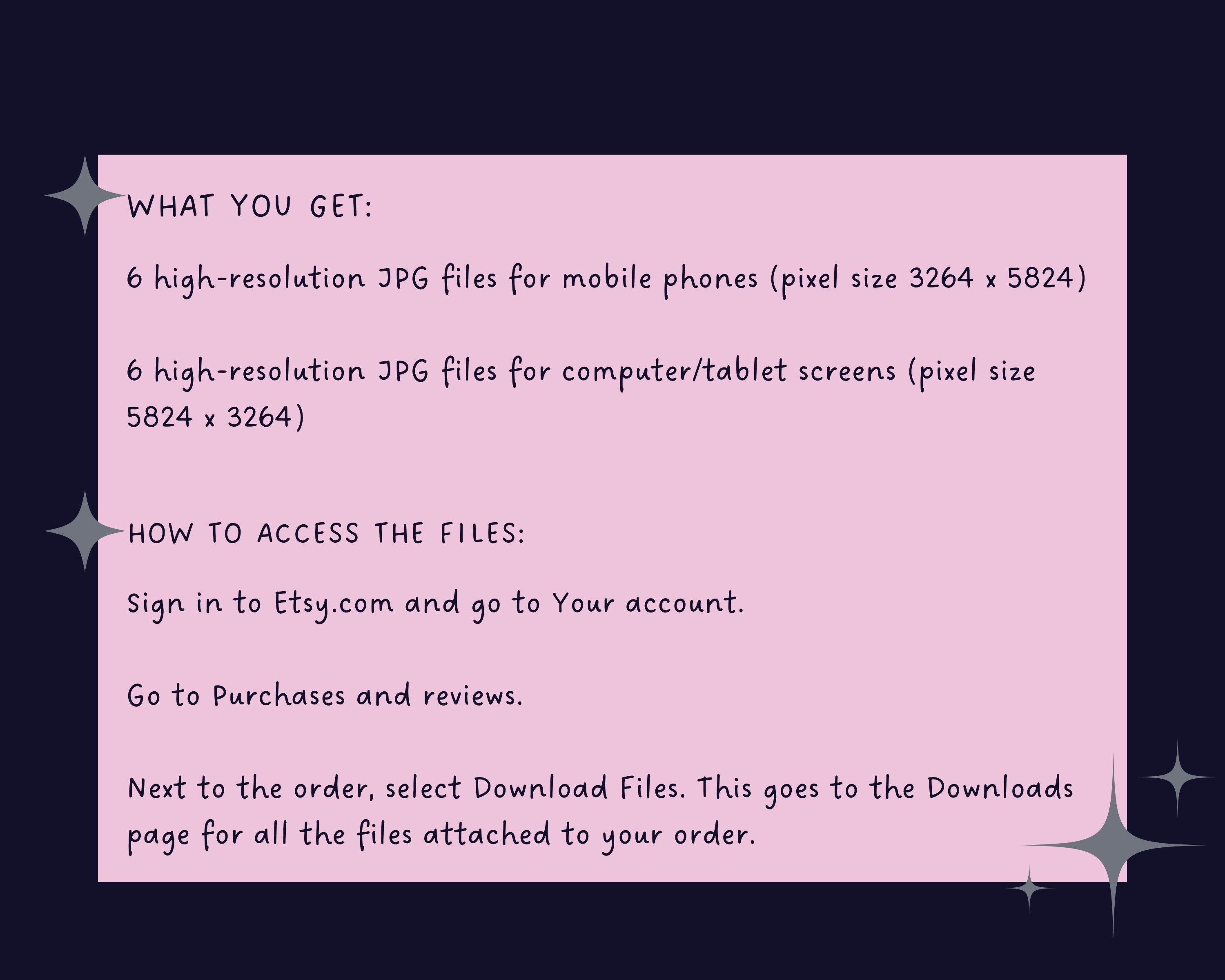 After purchase, you'll receive a PDF file with a link to download your wallpapers.