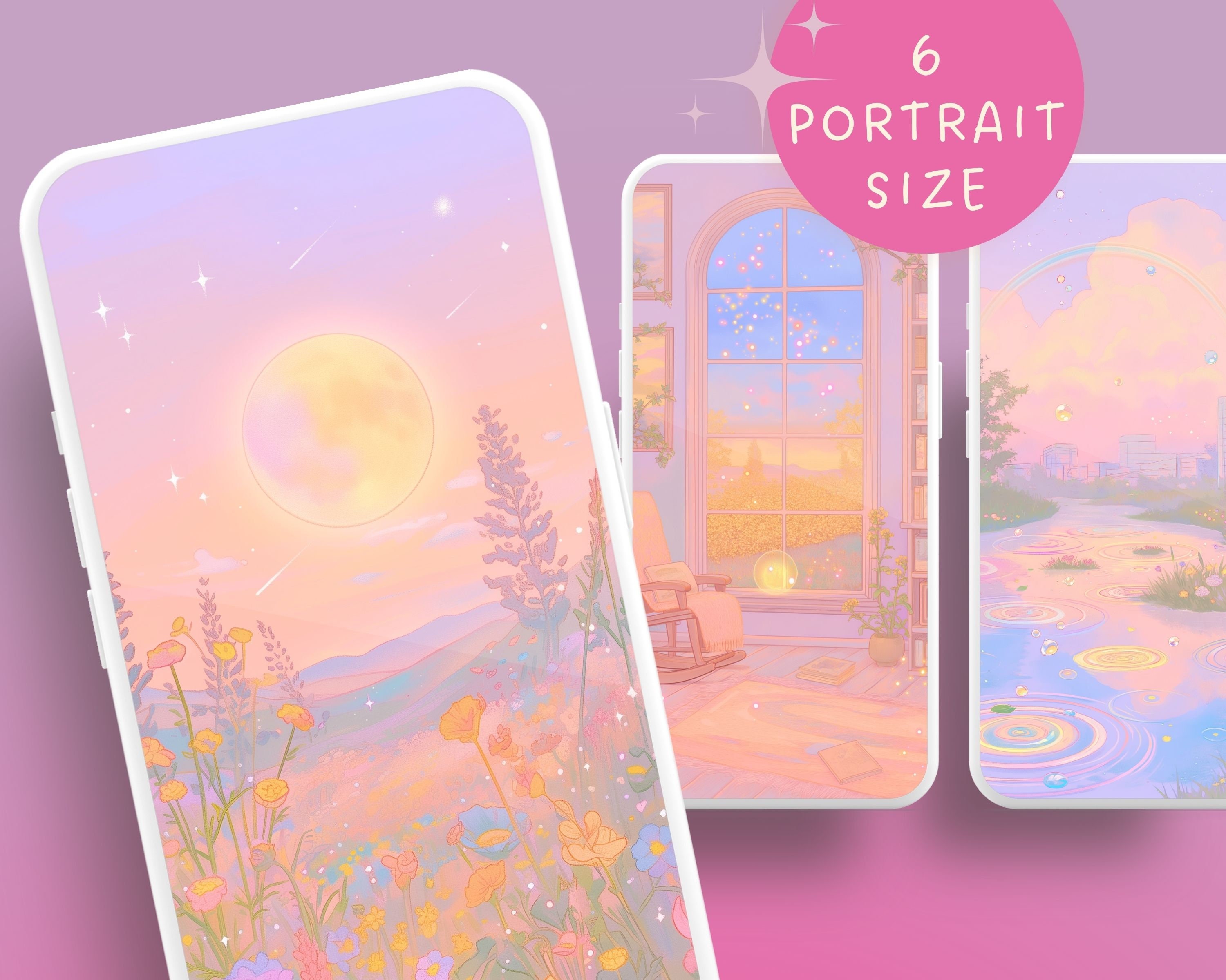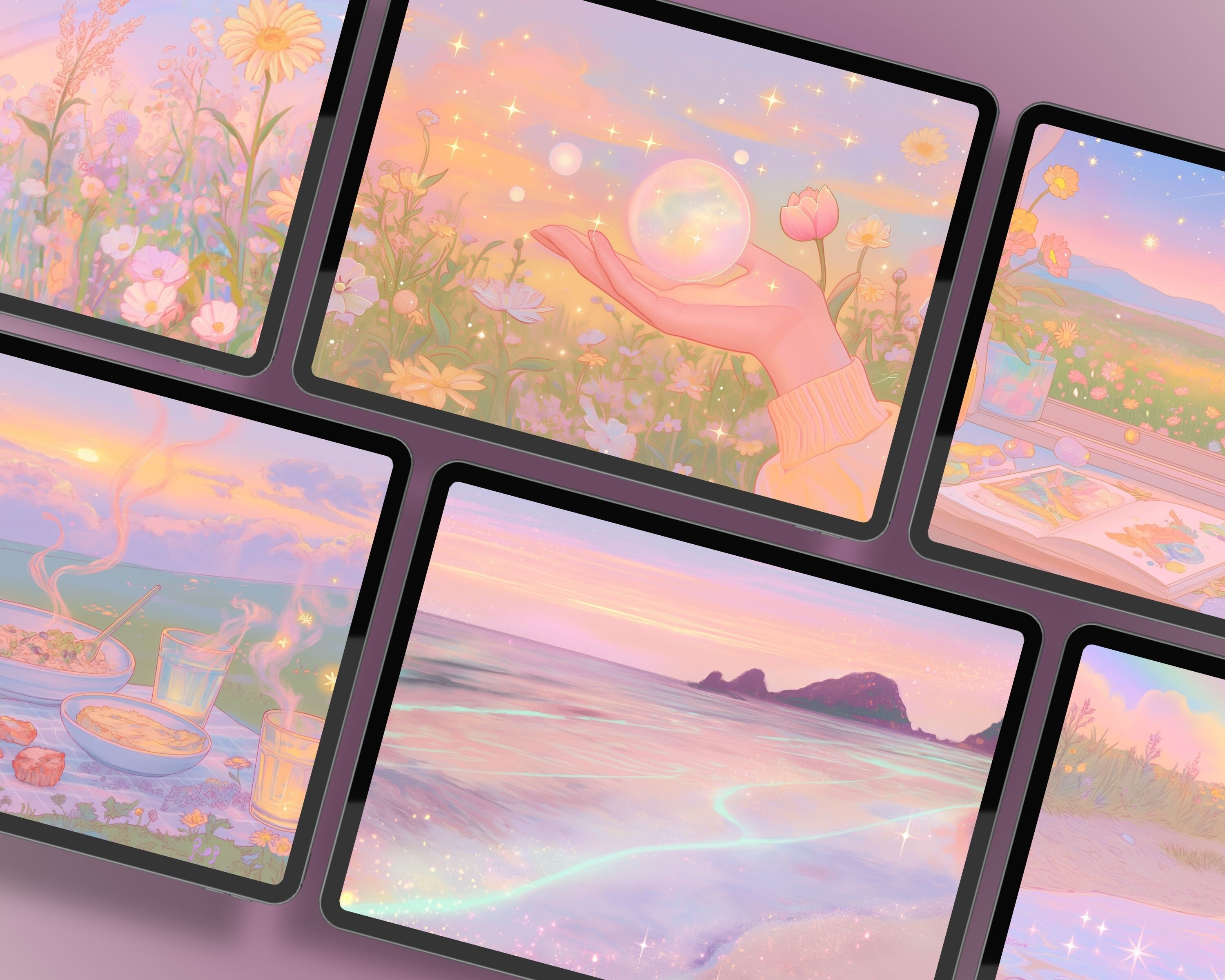 Pastel Anime Wallpaper Set, Dreamy Scenes (Digital Download