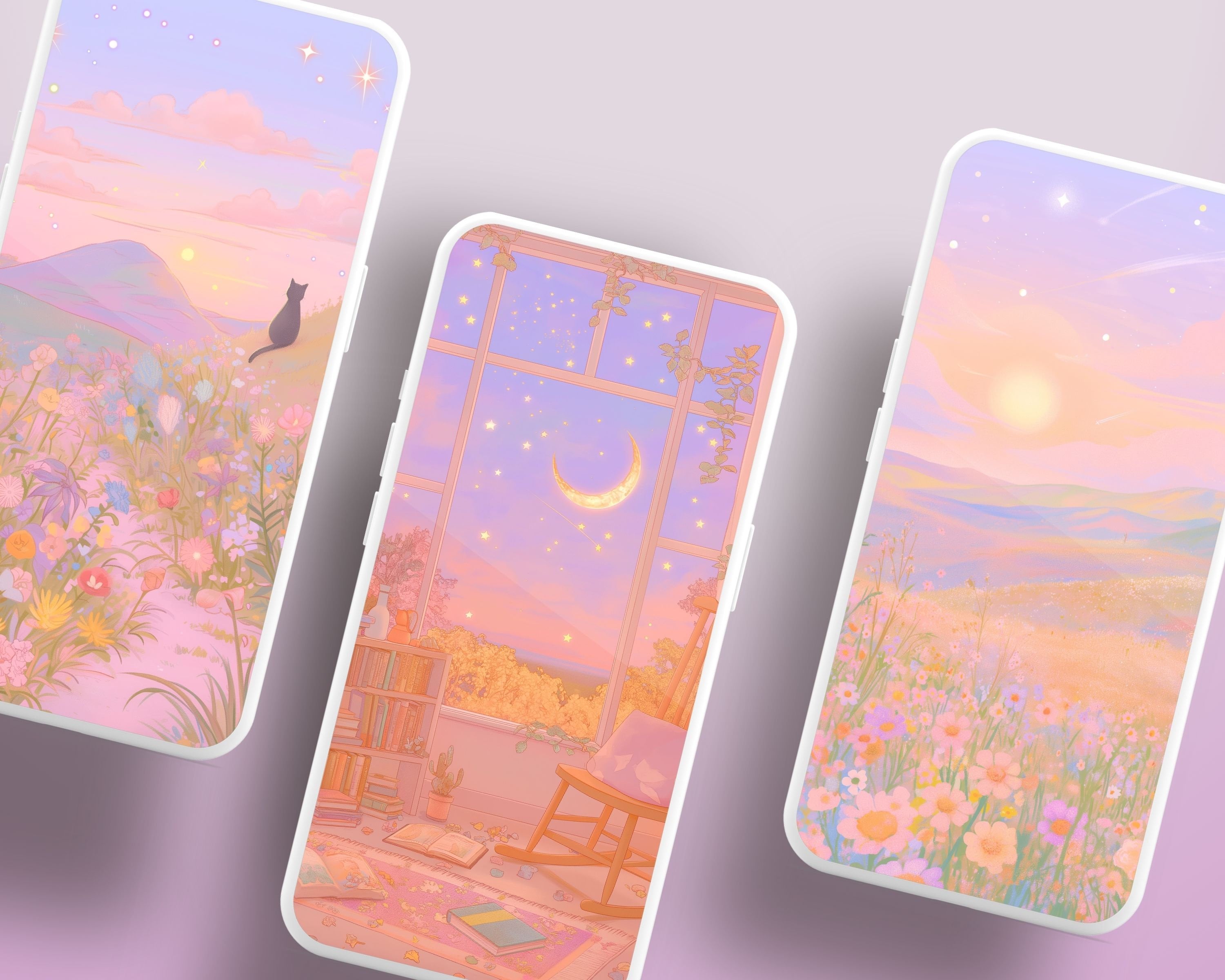 Bring a touch of coziness to your devices with this set of 12 dreamy pastel wallpapers! Featuring beautiful aesthetic scenes these high-res JPG files will fit perfectly on your phone or computer/tablet screens.