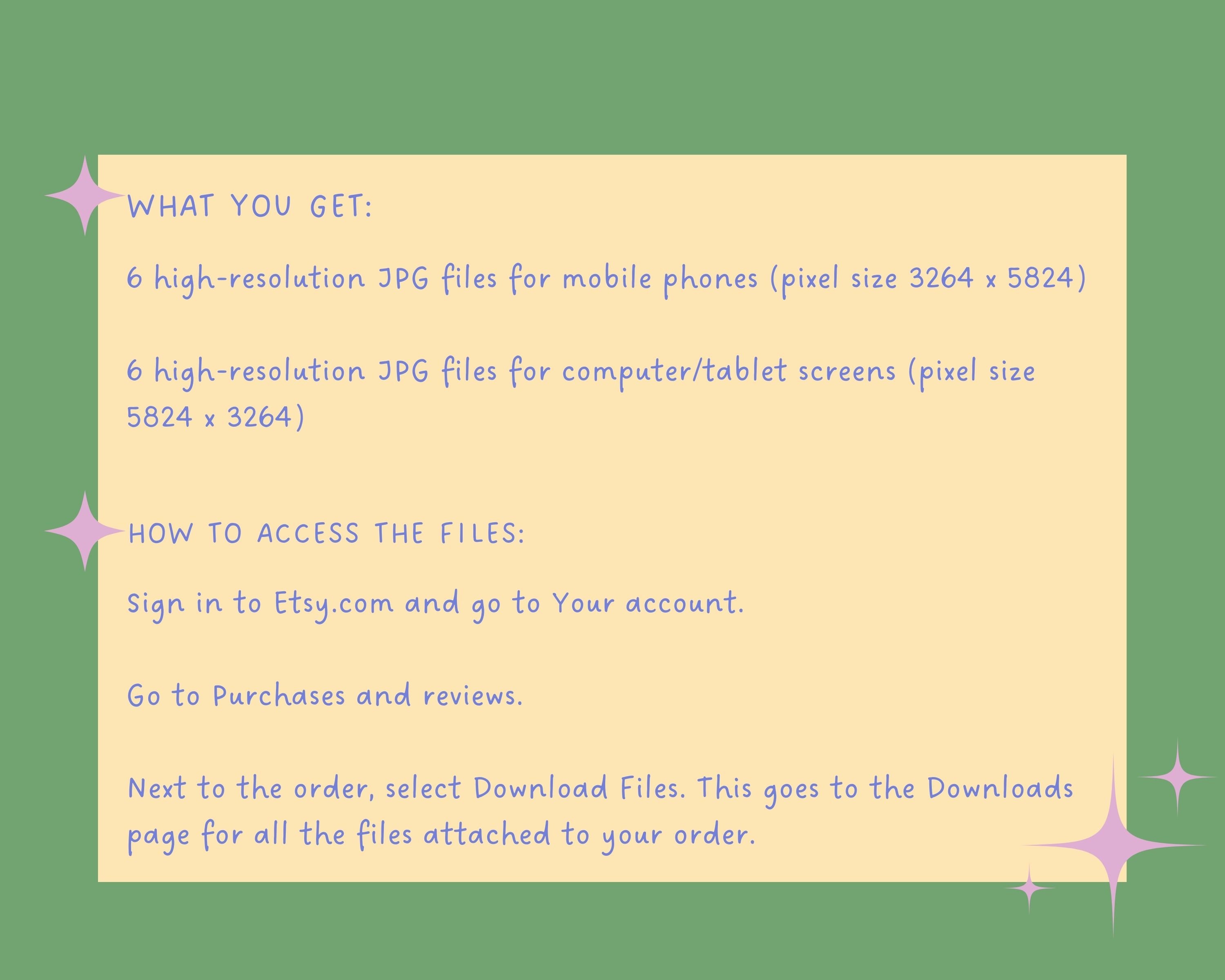 After purchase, you'll receive a PDF file with a link to download your wallpapers.