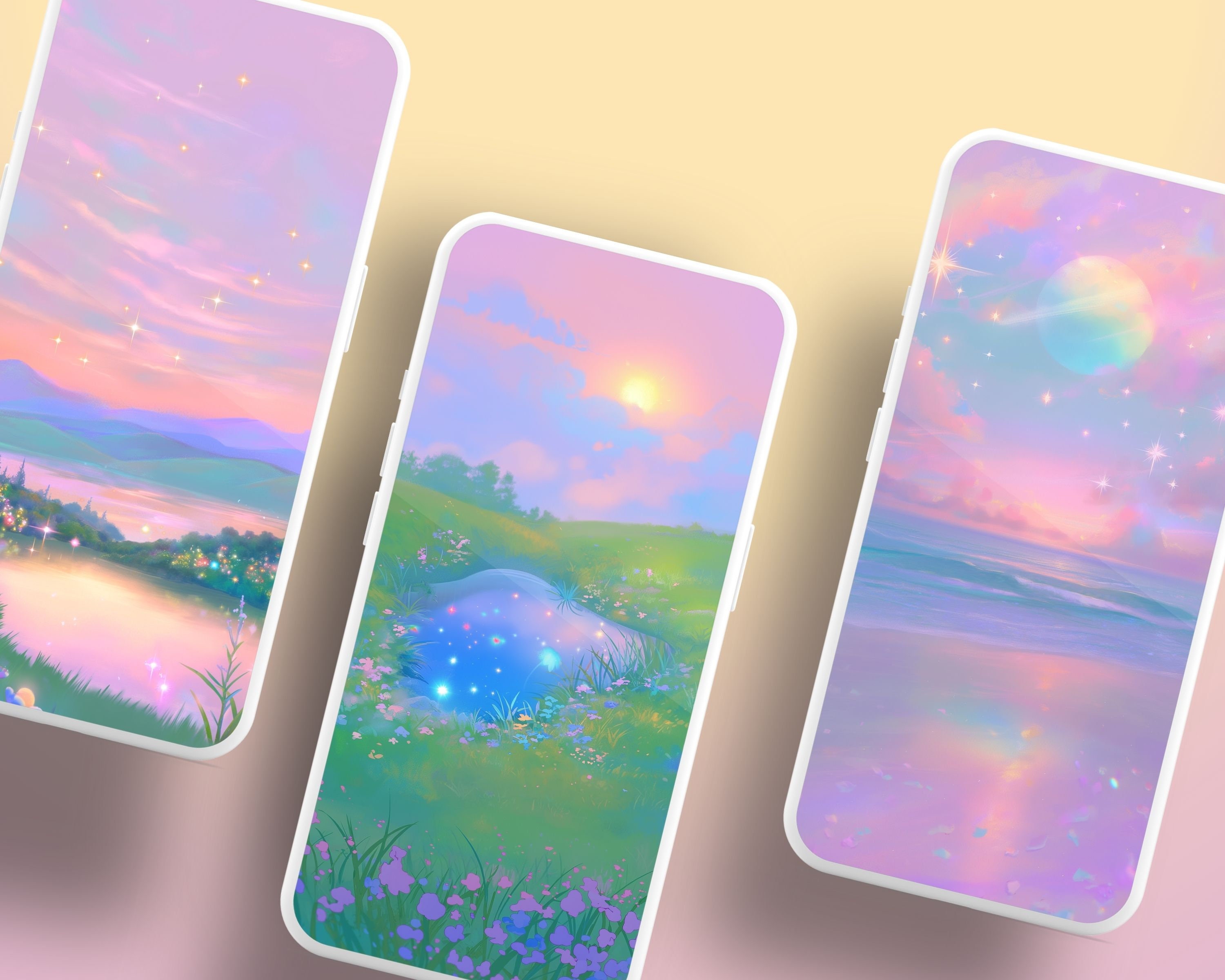 Bring a touch of coziness to your devices with this set of 12 dreamy pastel wallpapers! Featuring beautiful aesthetic scenes these high-res JPG files will fit perfectly on your phone or computer/tablet screens.