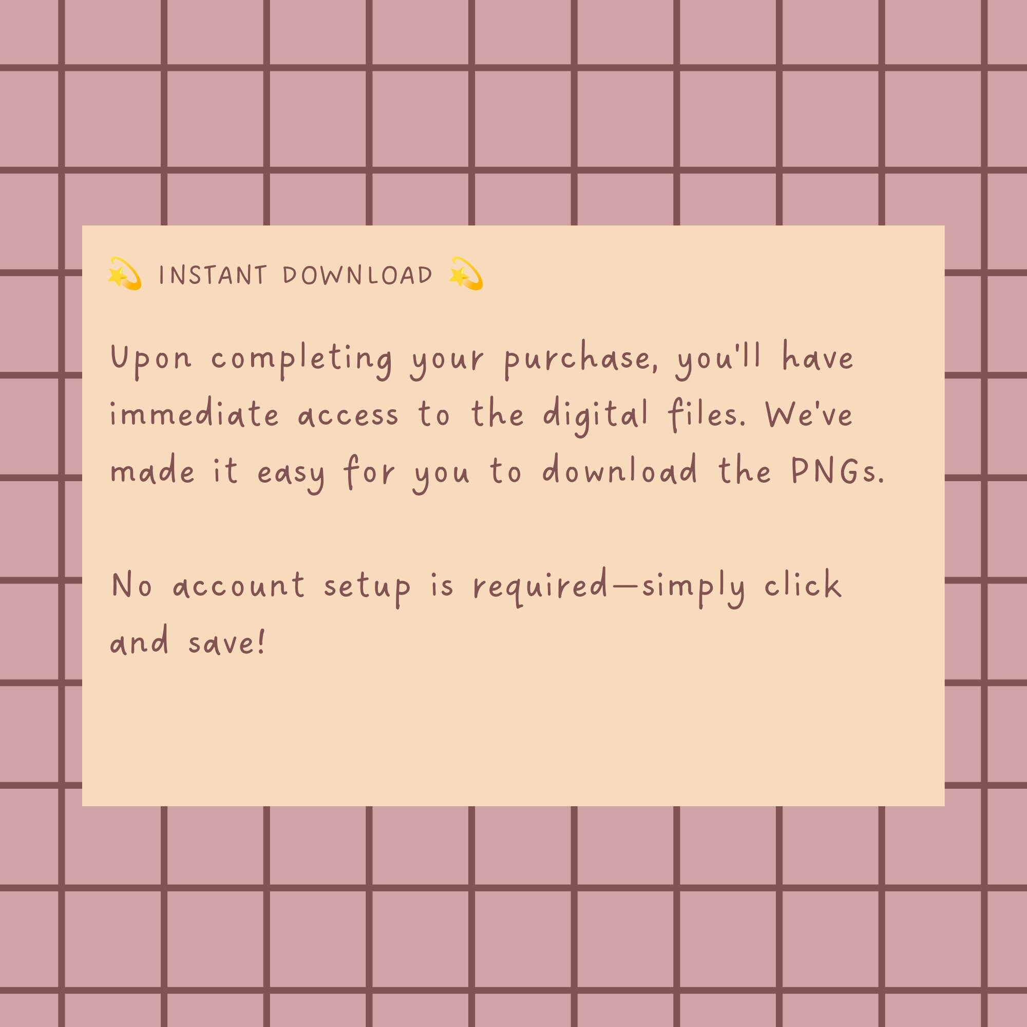 Access your digital files by going to your Etsy Account > Purchases > Click on the download button next to the purchased item.