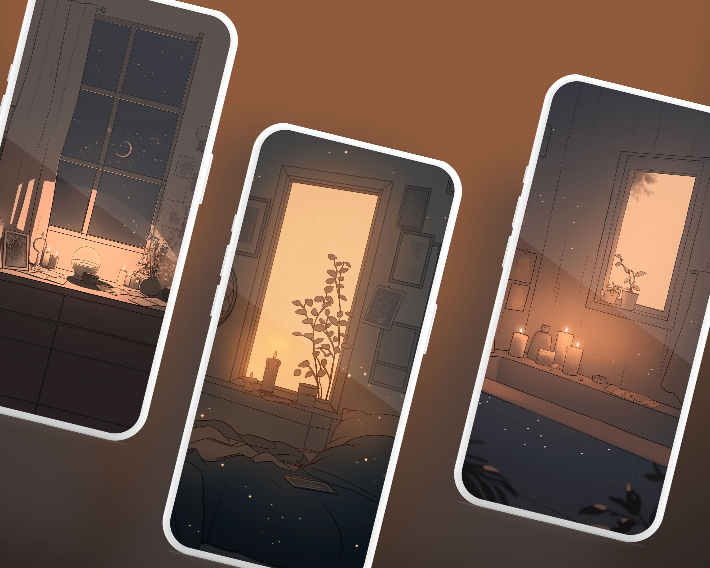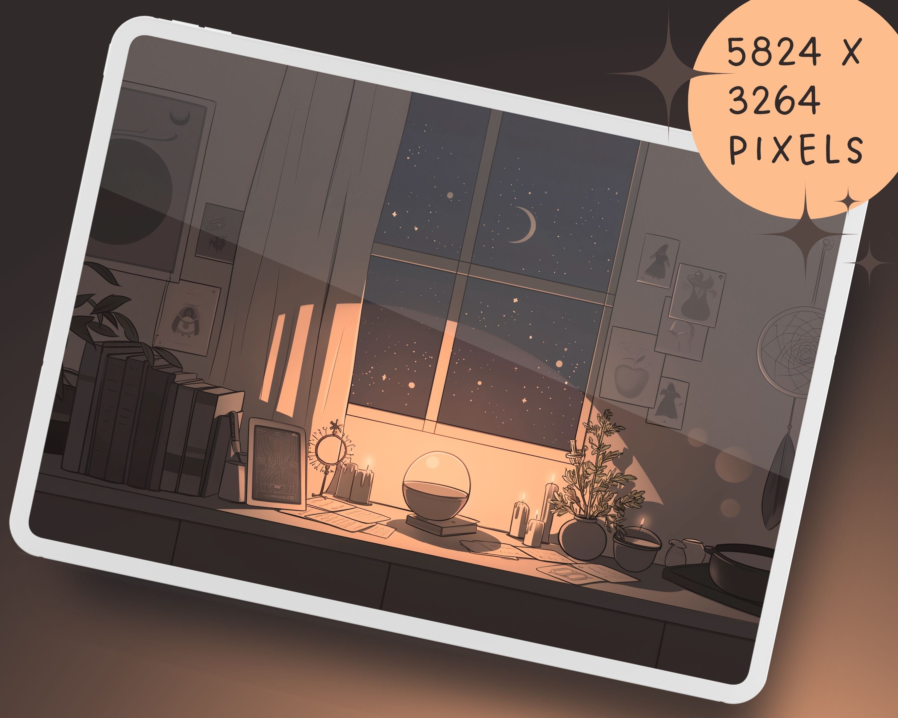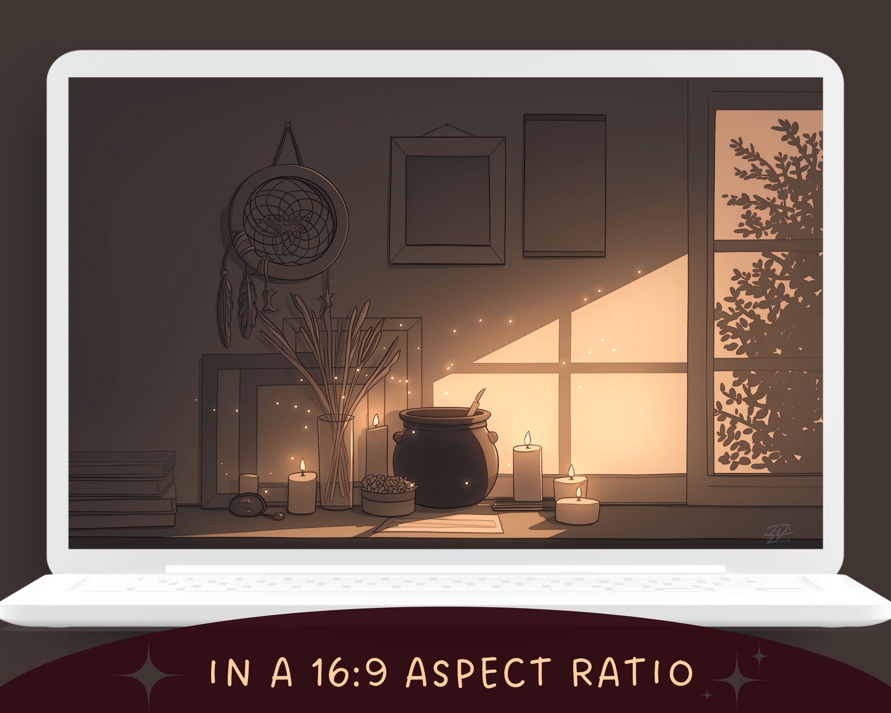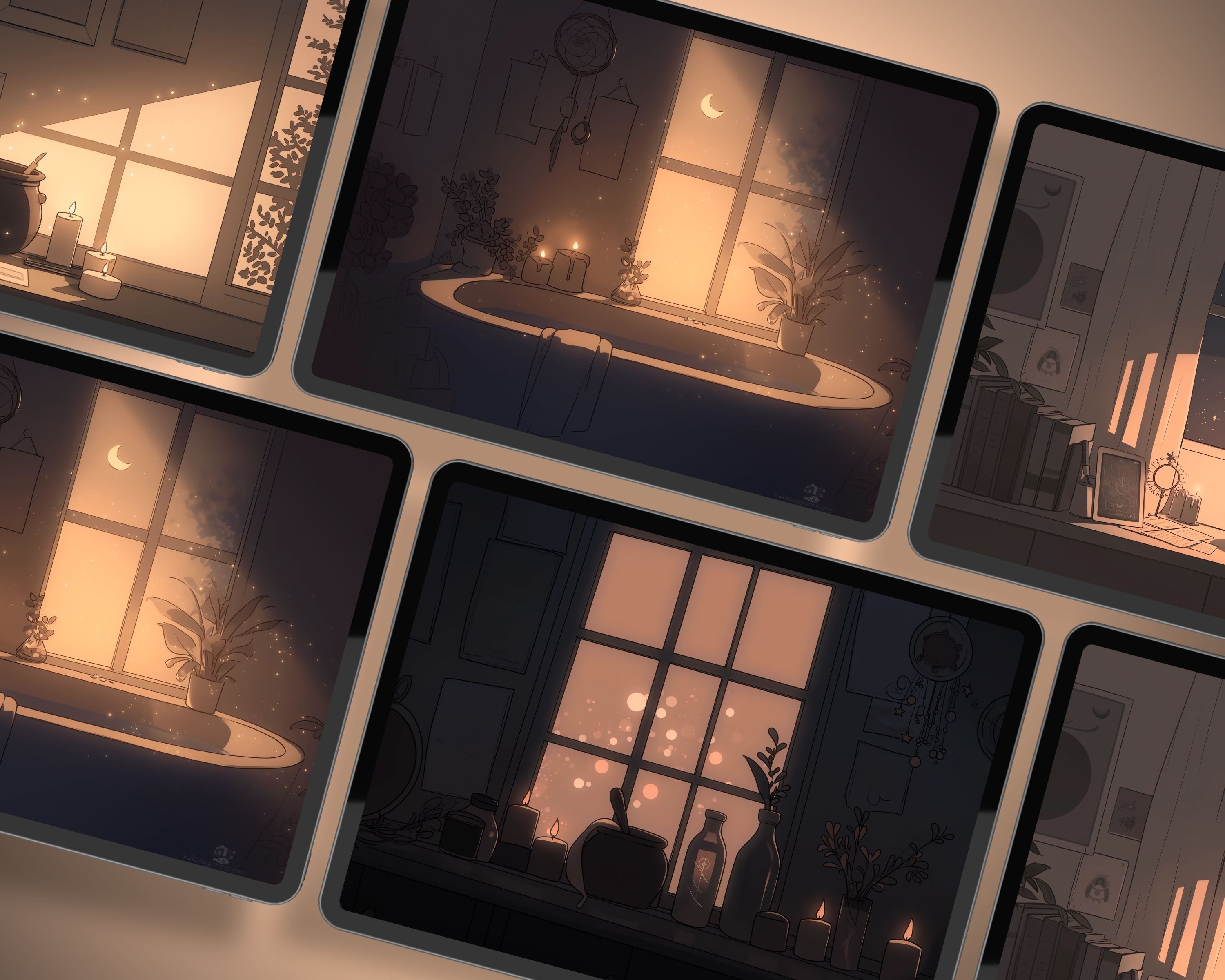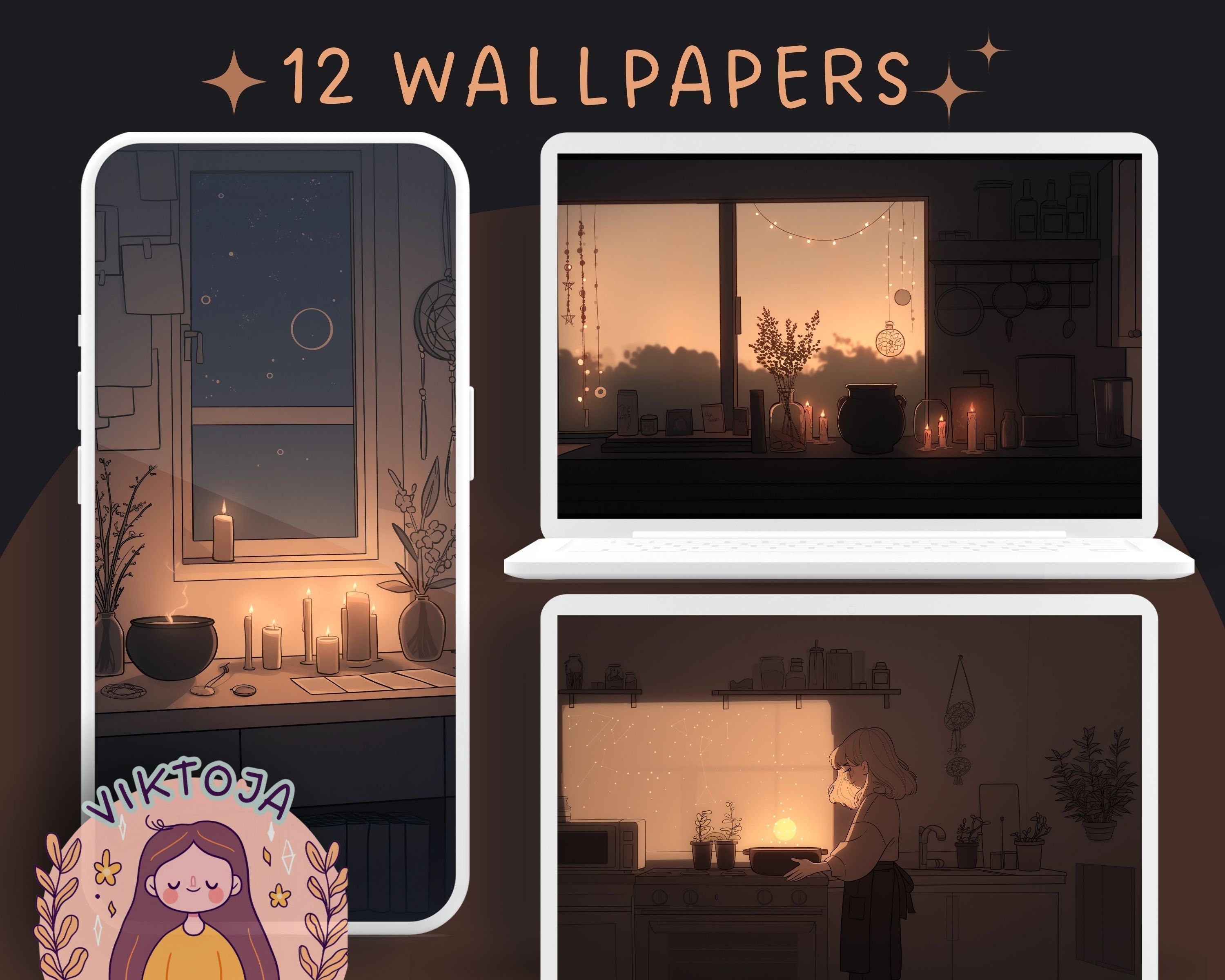 Bring a touch of coziness to your devices with this set of 12 witchy room wallpapers! Featuring beautiful aesthetic scenes these high-res JPG files will fit perfectly on your phone or computer/tablet screens.