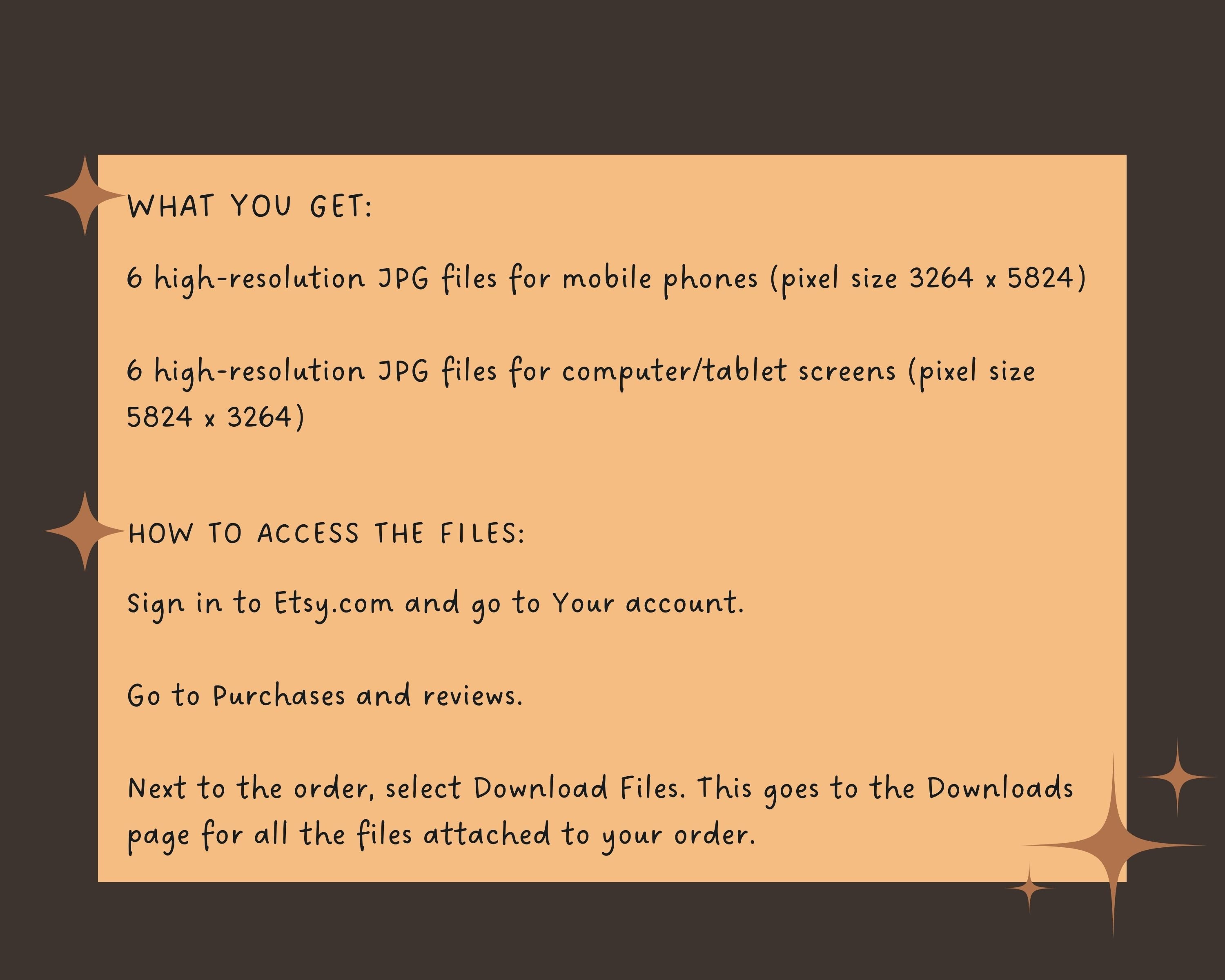 After purchase, you'll receive a PDF file with a link to download your wallpapers.