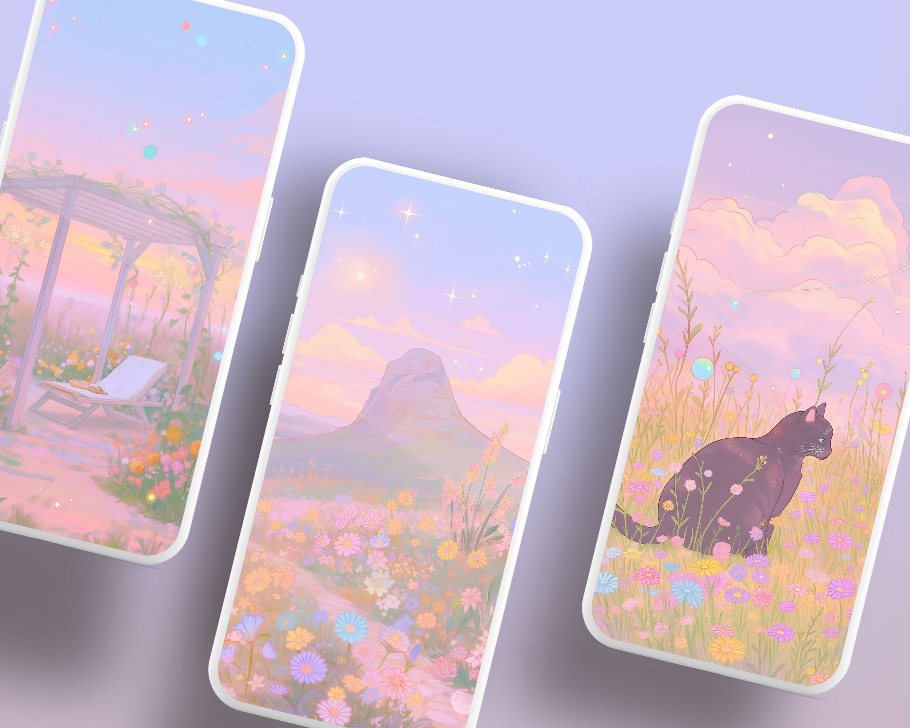 Bring a touch of coziness to your devices with this set of 12 dreamy pastel wallpapers! Featuring beautiful aesthetic scenes these high-res JPG files will fit perfectly on your phone or computer/tablet screens.